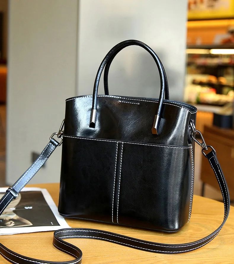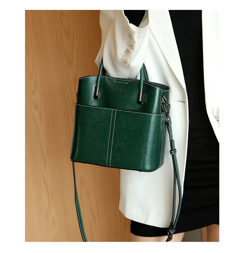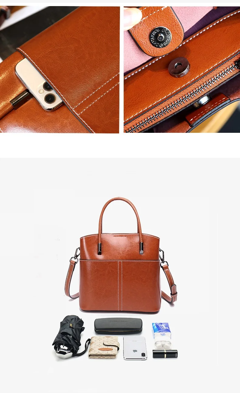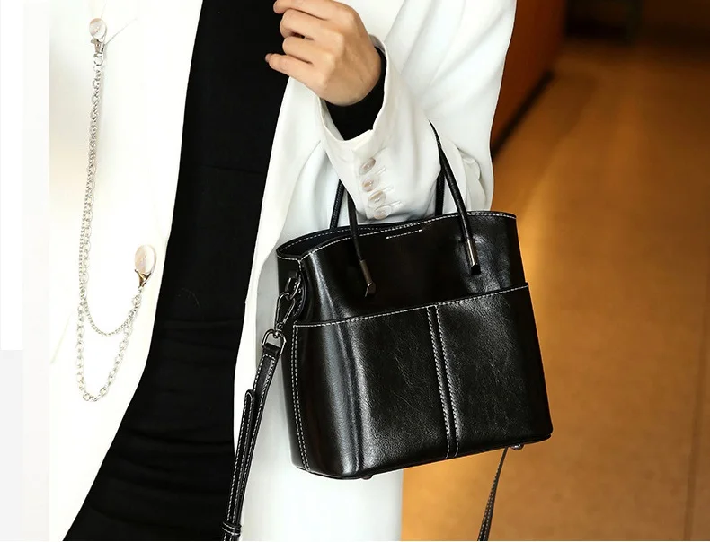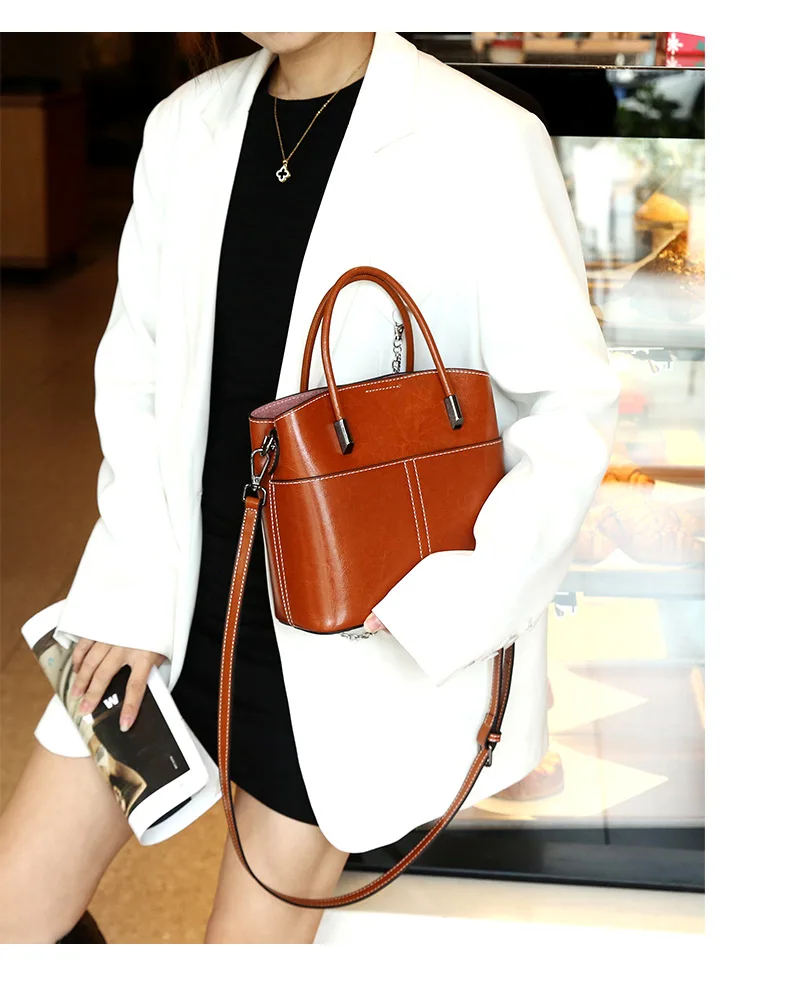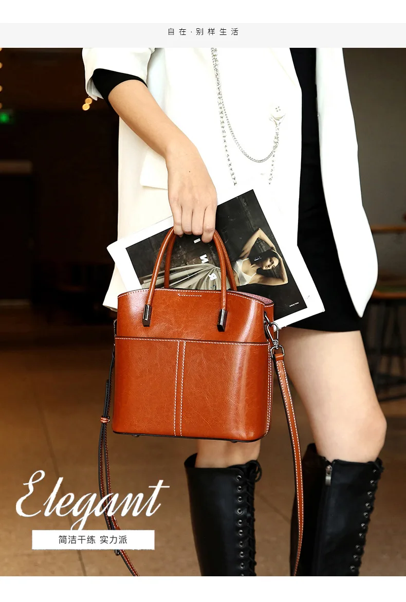 100% Genuine Leather Women Bucket Bag Casual ladies crossbody Hand Bag High Quality Cowhide Commuter Shoulder Bag for girls