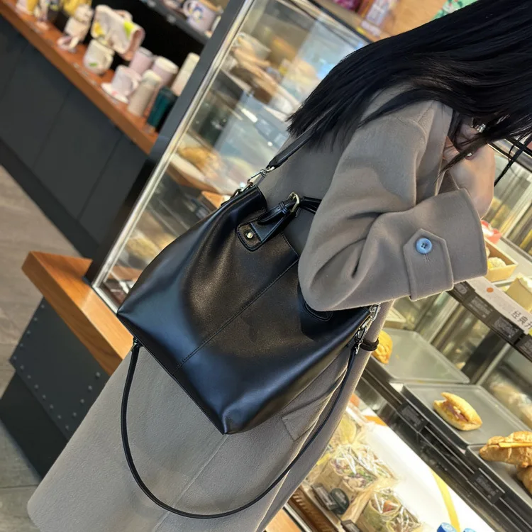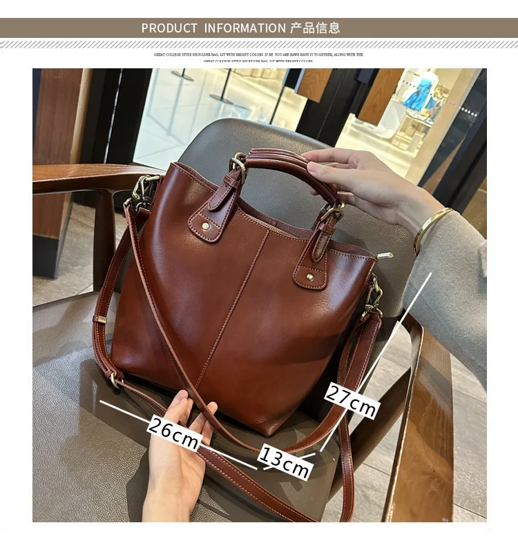 100% Genuine Leather Women Handbag 2025 Fashion Cowhide Crossbody Bag Commuter Handbag Bucket Bag shopping gift bag for women