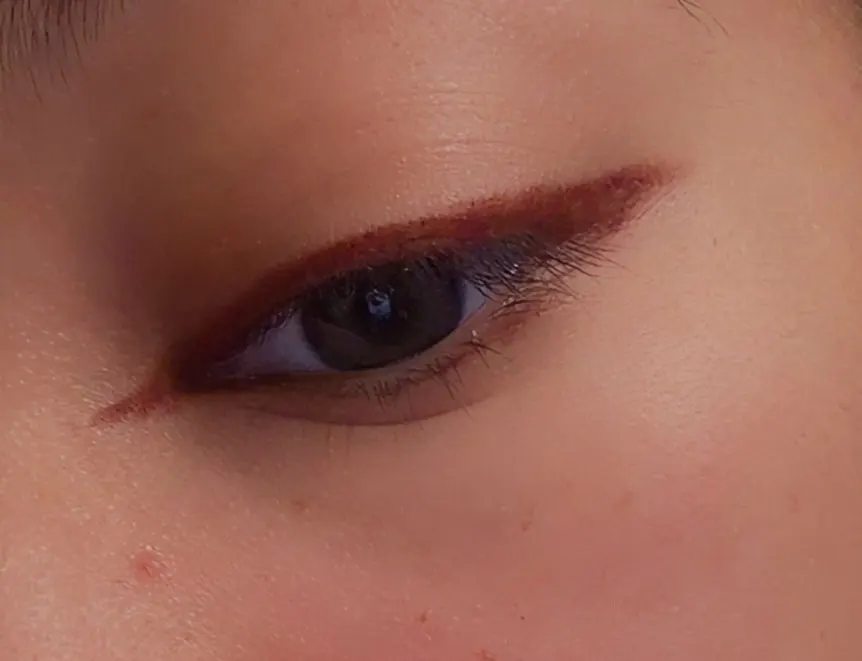 Draw the inner eyeliner: start from the head of the eye and carefully draw the black inner eyeliner along the root of the eyelash. When reaching the last 1/3 of the eye area, you can slightly thicken it to highlight the eye makeup effect.