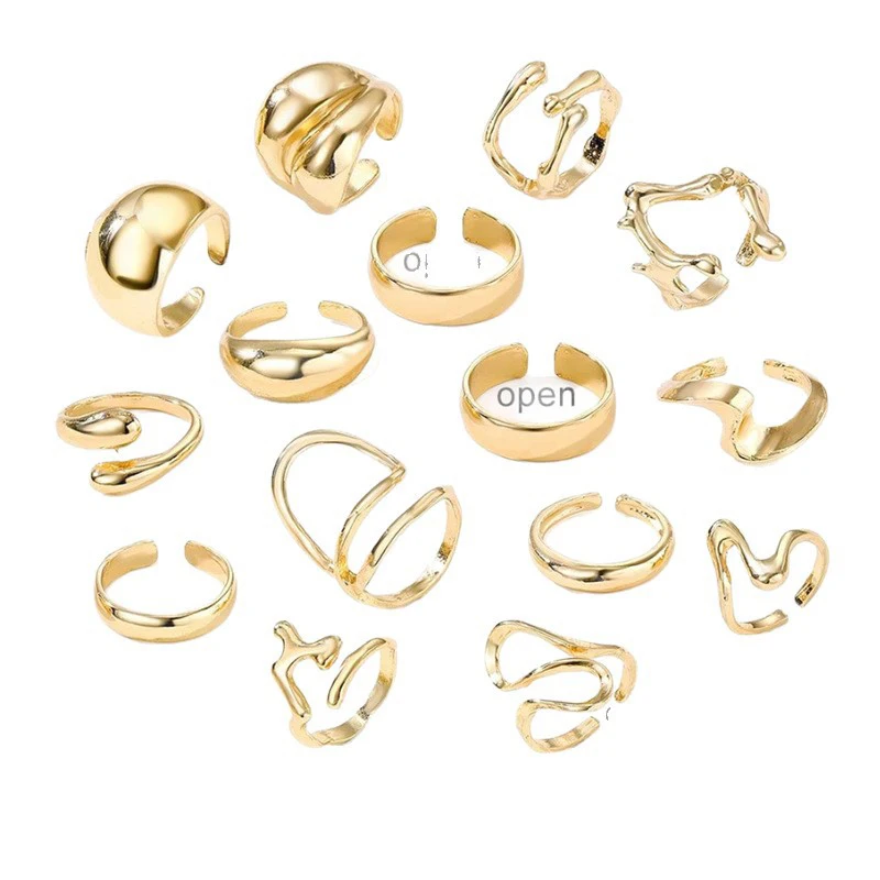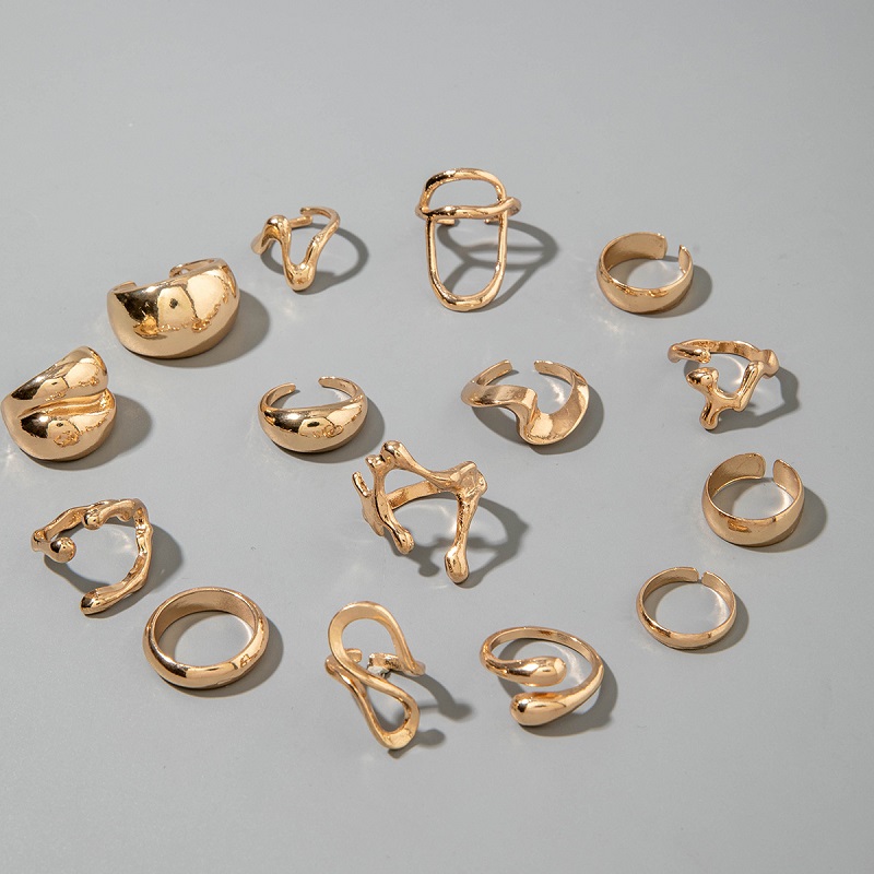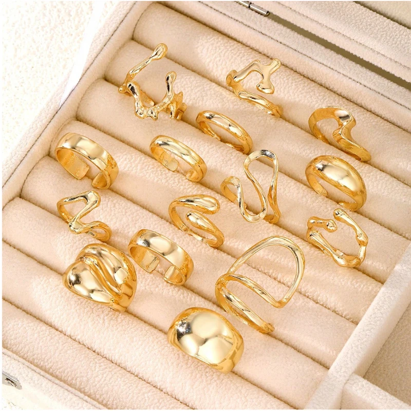 15Pcs/Set Exaggerated Metal Lava Irregular Rings Set for Women Personality Water Drop Smooth Layered Ring Gothic Party Jewelry