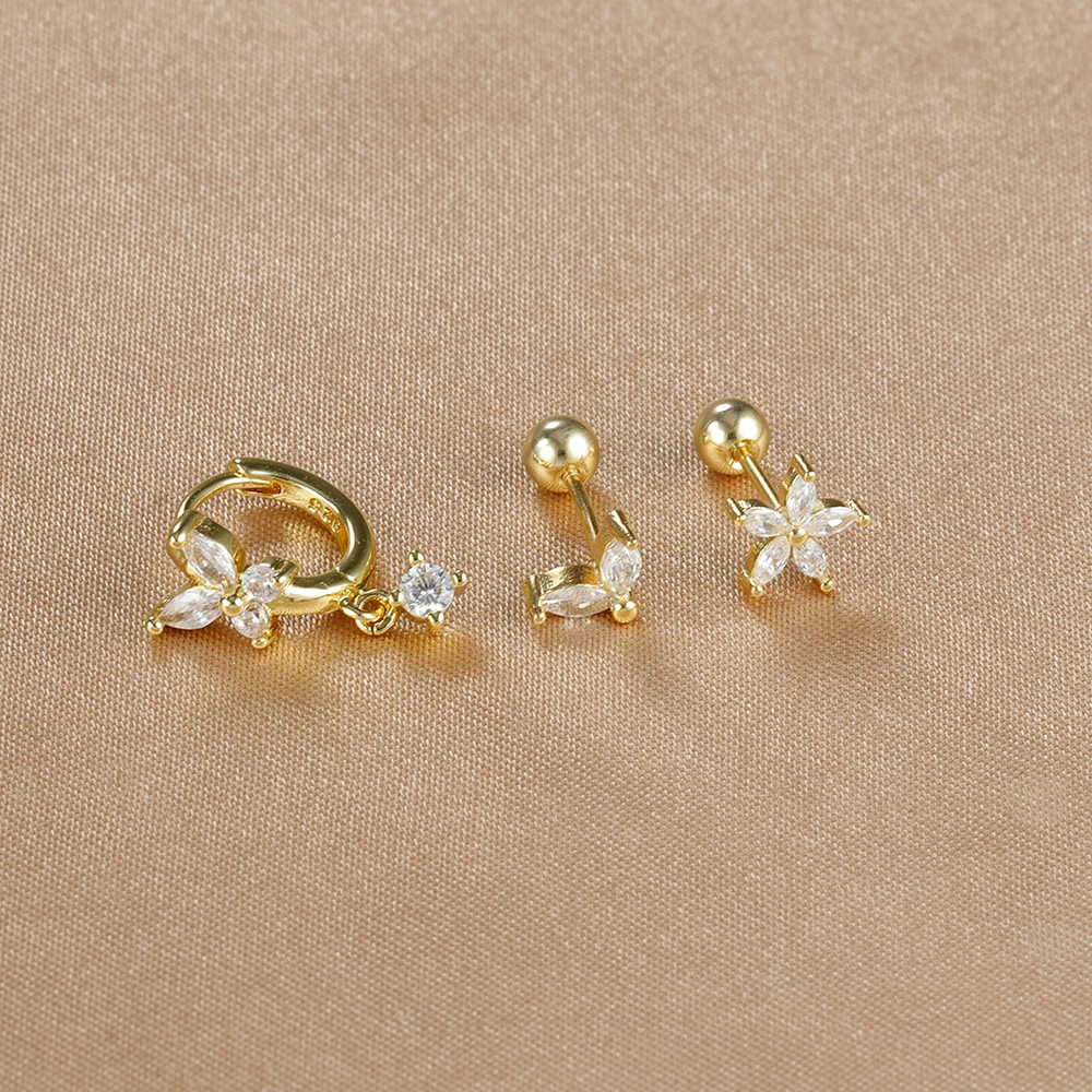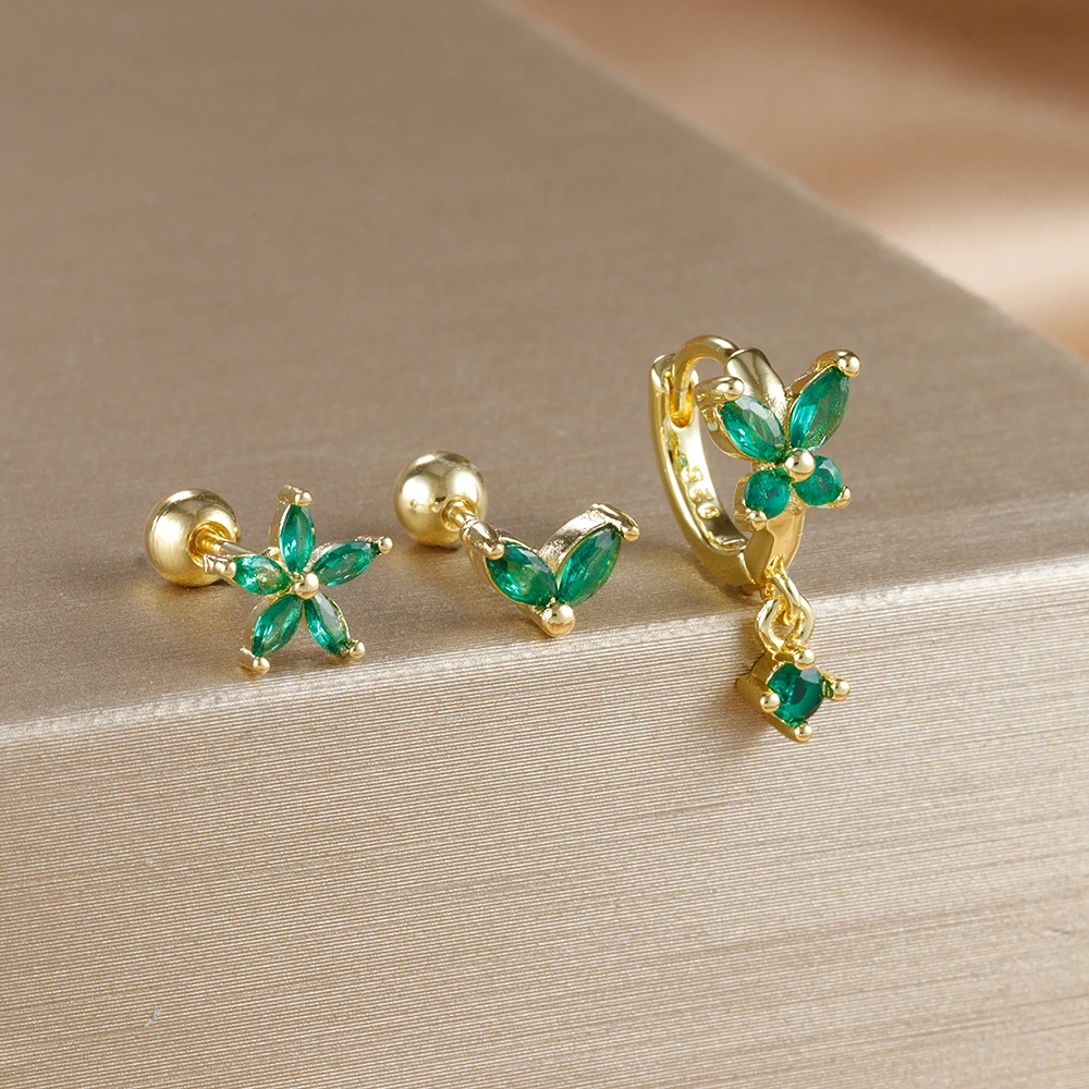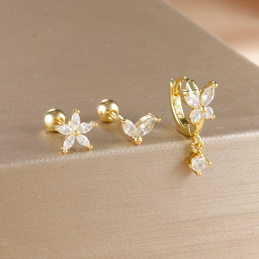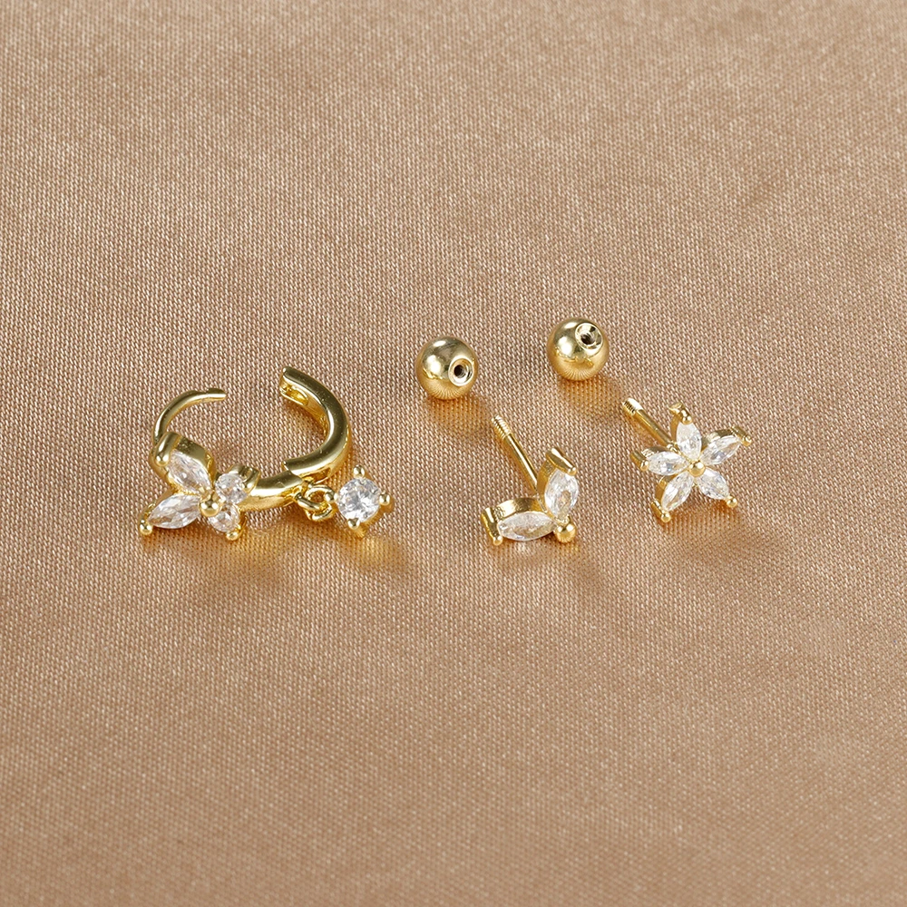 18K Gold Plated Stainless Steel Butterfly Hoop Earrings Cubic Zirconia Helix Tragus Piercing Earring Set Valentines Jewelry 3PCS