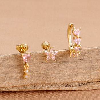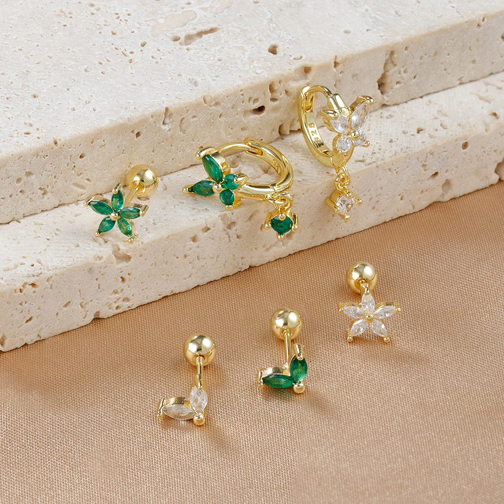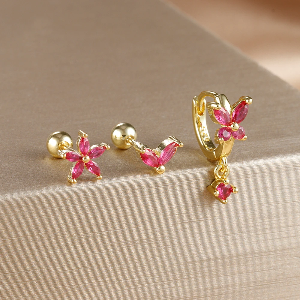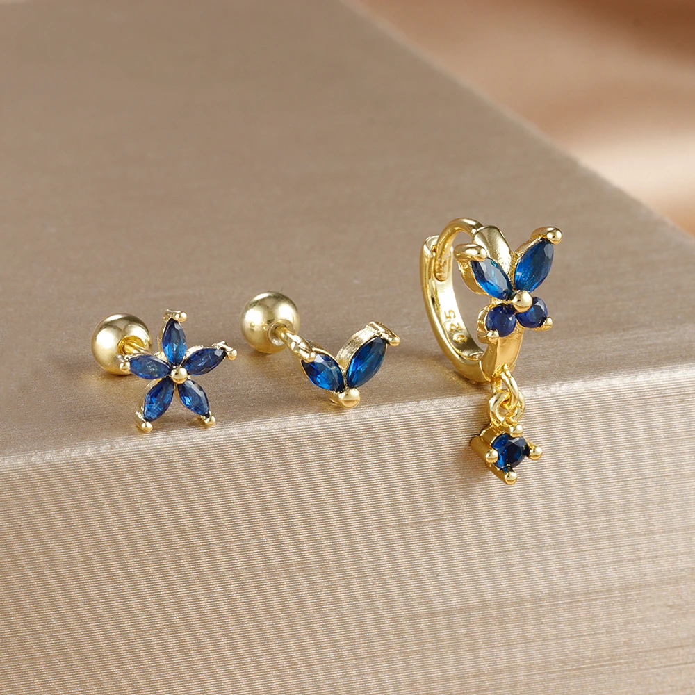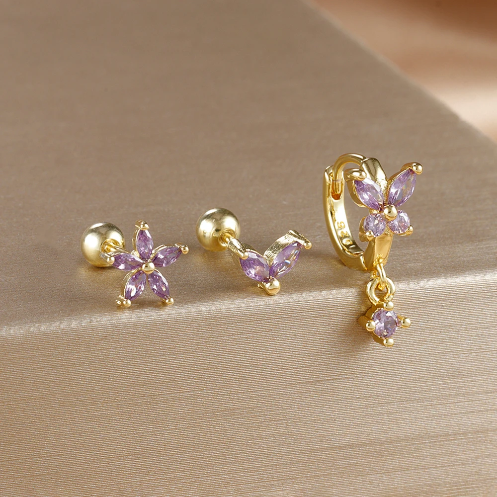 18K Gold Plated Stainless Steel Butterfly Hoop Earrings Cubic Zirconia Helix Tragus Piercing Earring Set Valentines Jewelry 3PCS