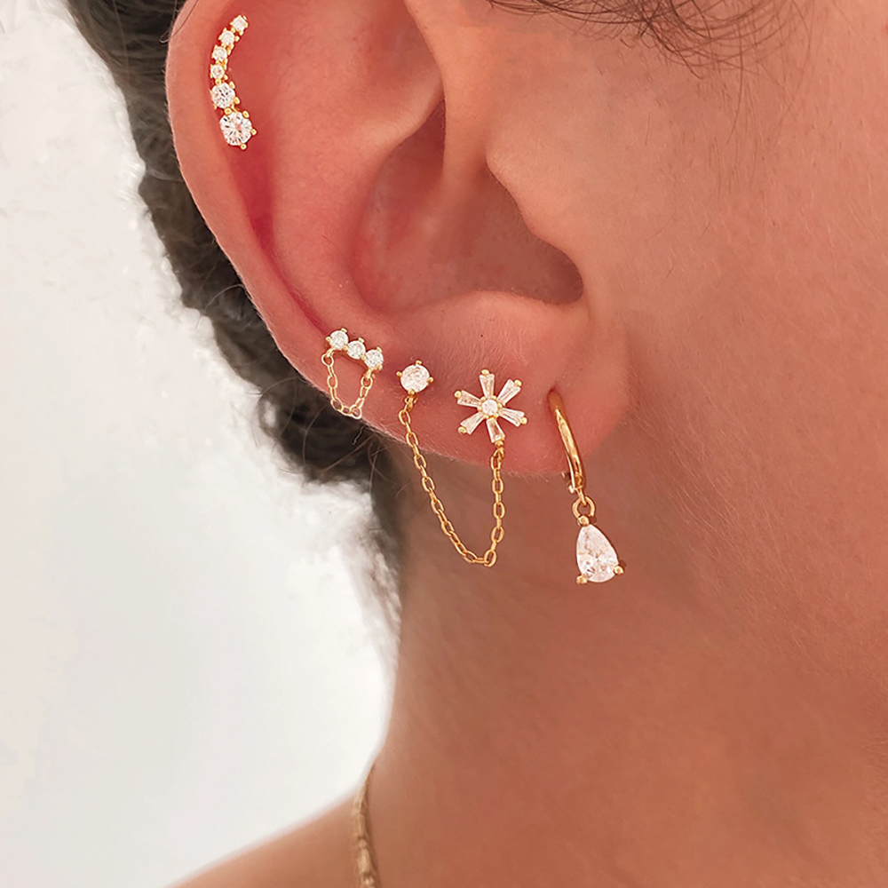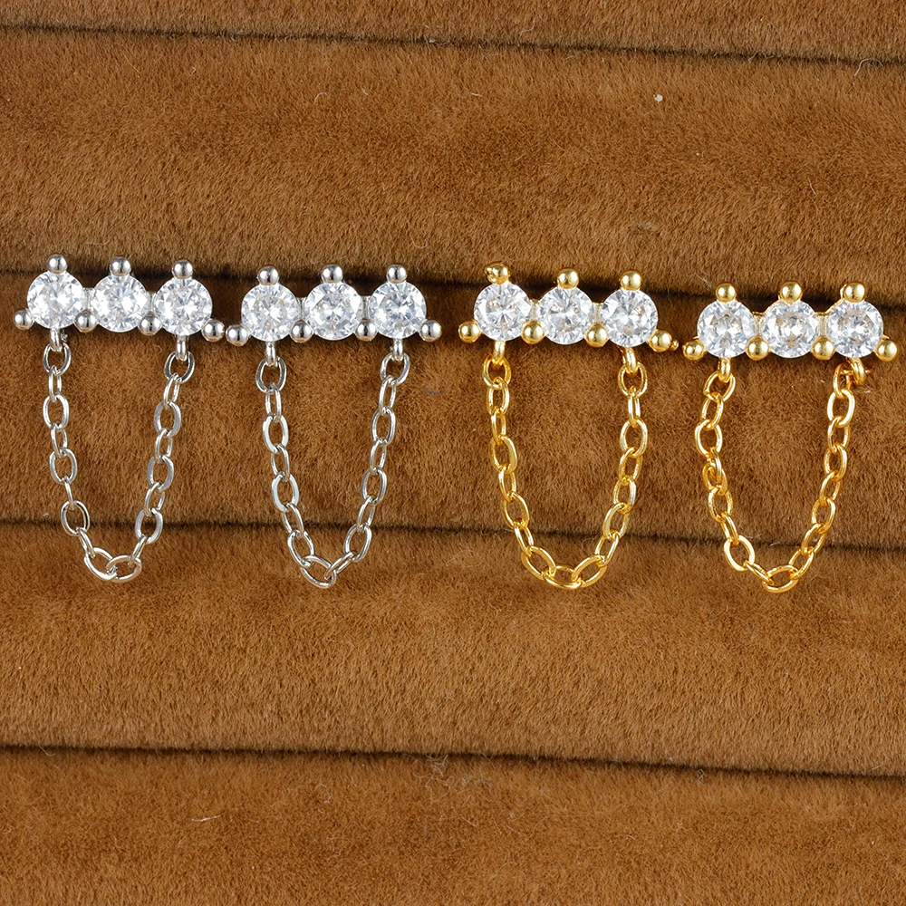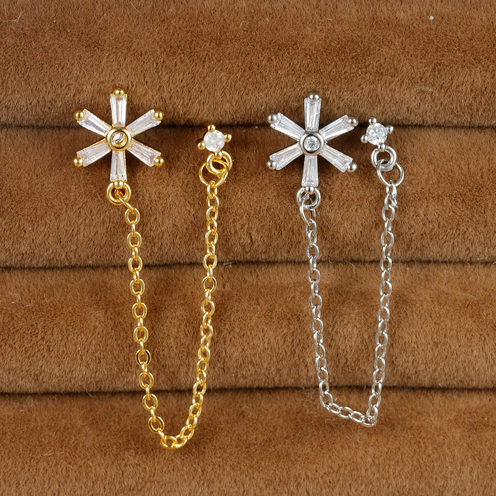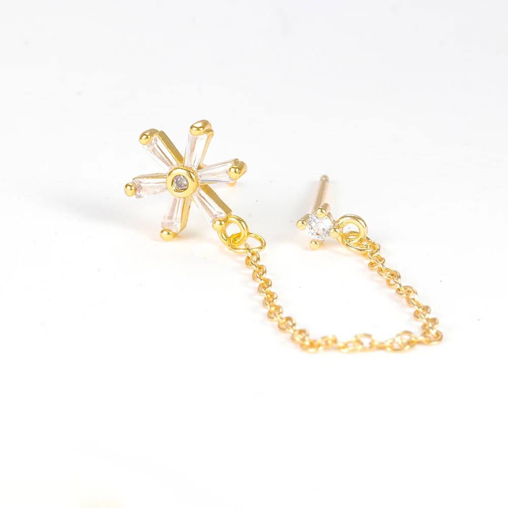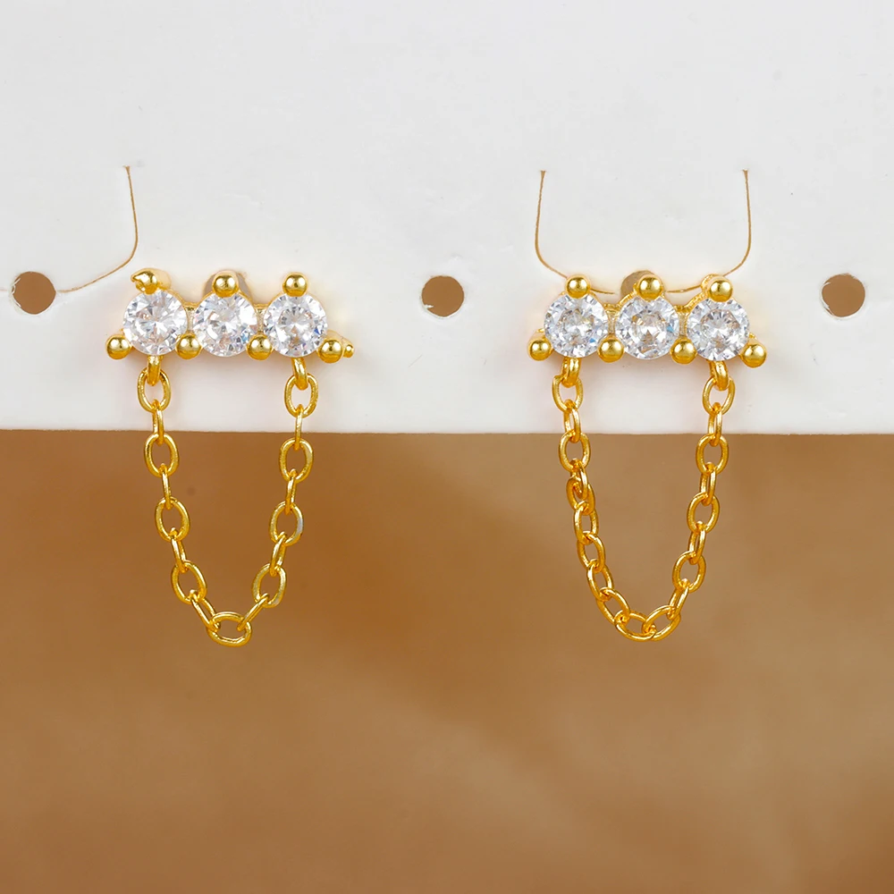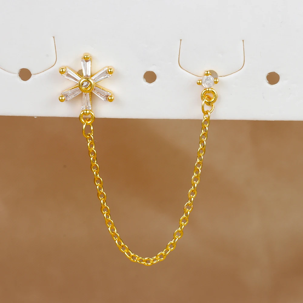 1Pair New Design Gold Color Flower Chain Stud Earrings for Women Stainless Steel Elegant Tassel Pendant Earring Fashion Jewelry