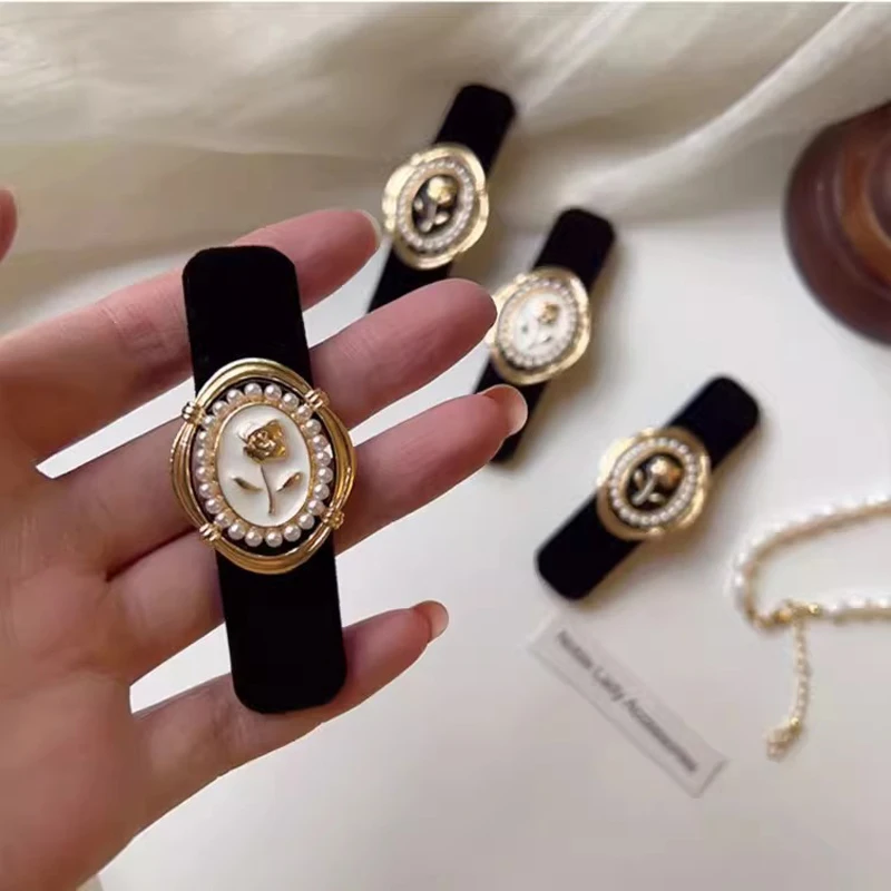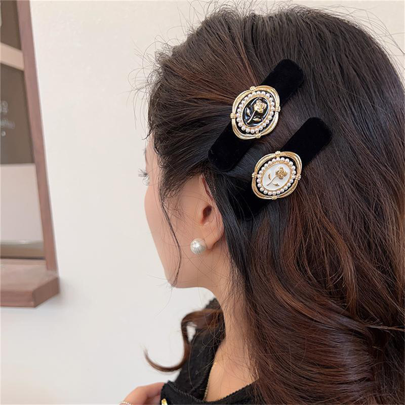 1Pc French Retro Rose Flower Hair Clip Women Elegant Velvet Shattered Bangs Hair Clip Hairpins High-End Side Clip Hair Accessor