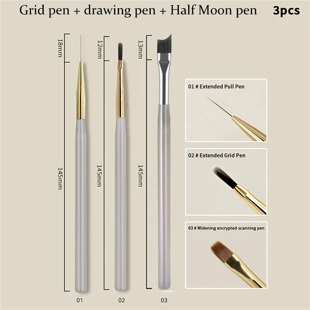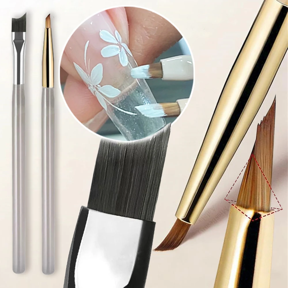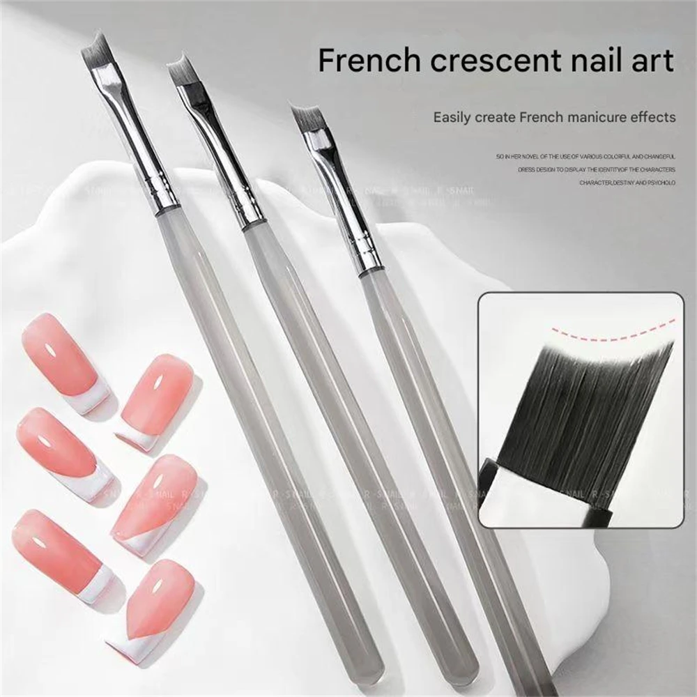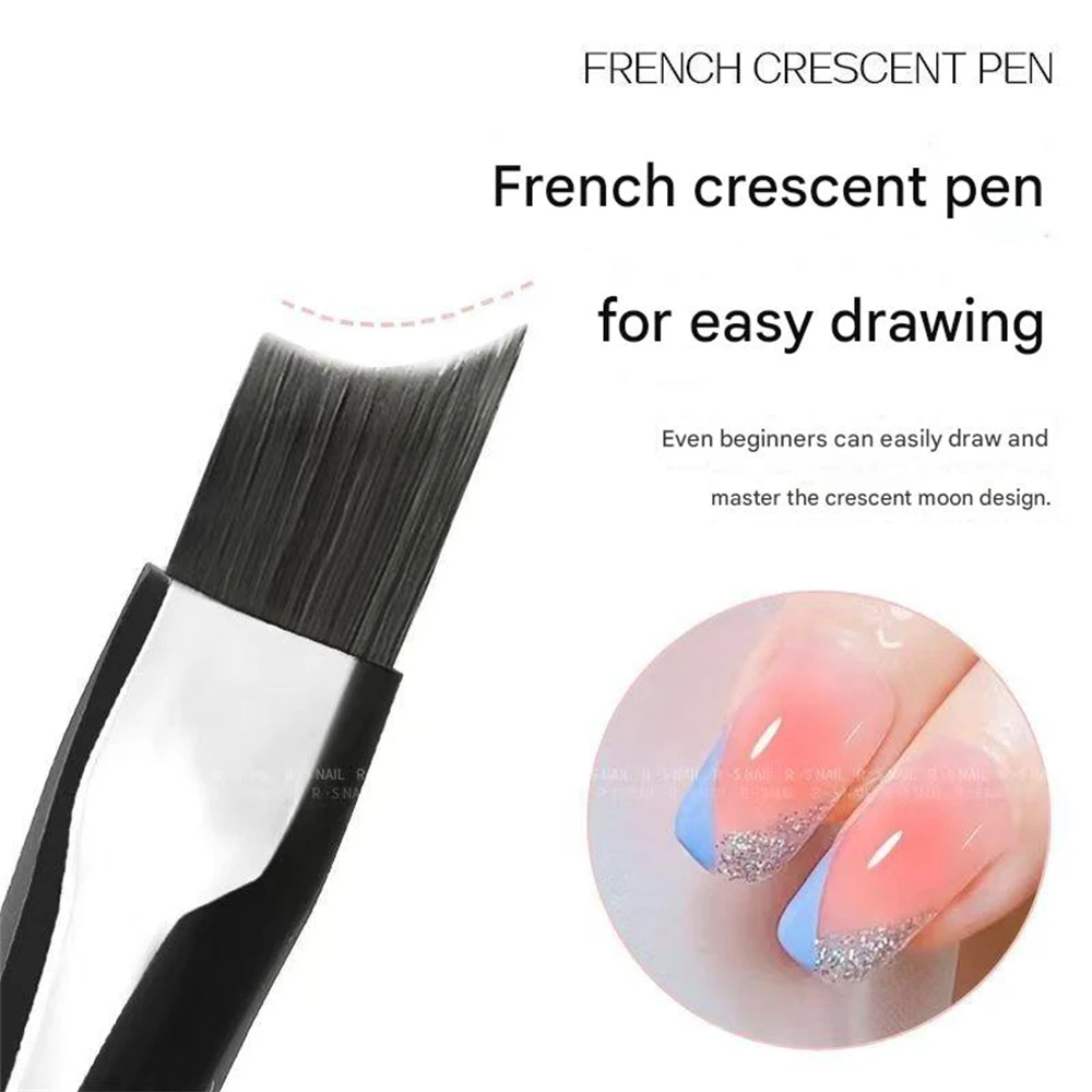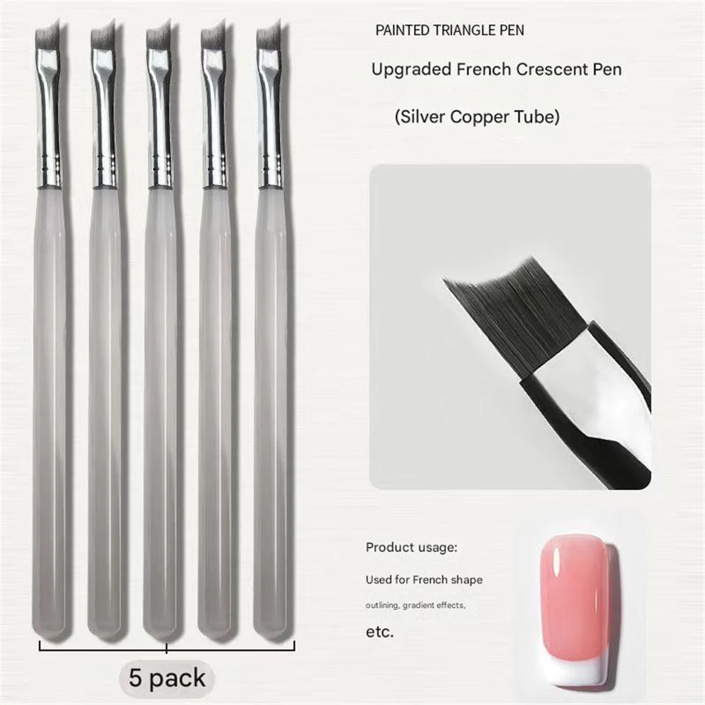 1Pc French Tips Oblique Nail Brush Half Moon Shape UV Gel Nail Triangular Painting Drawing Pen Grid Flower Nail Manicure Tool