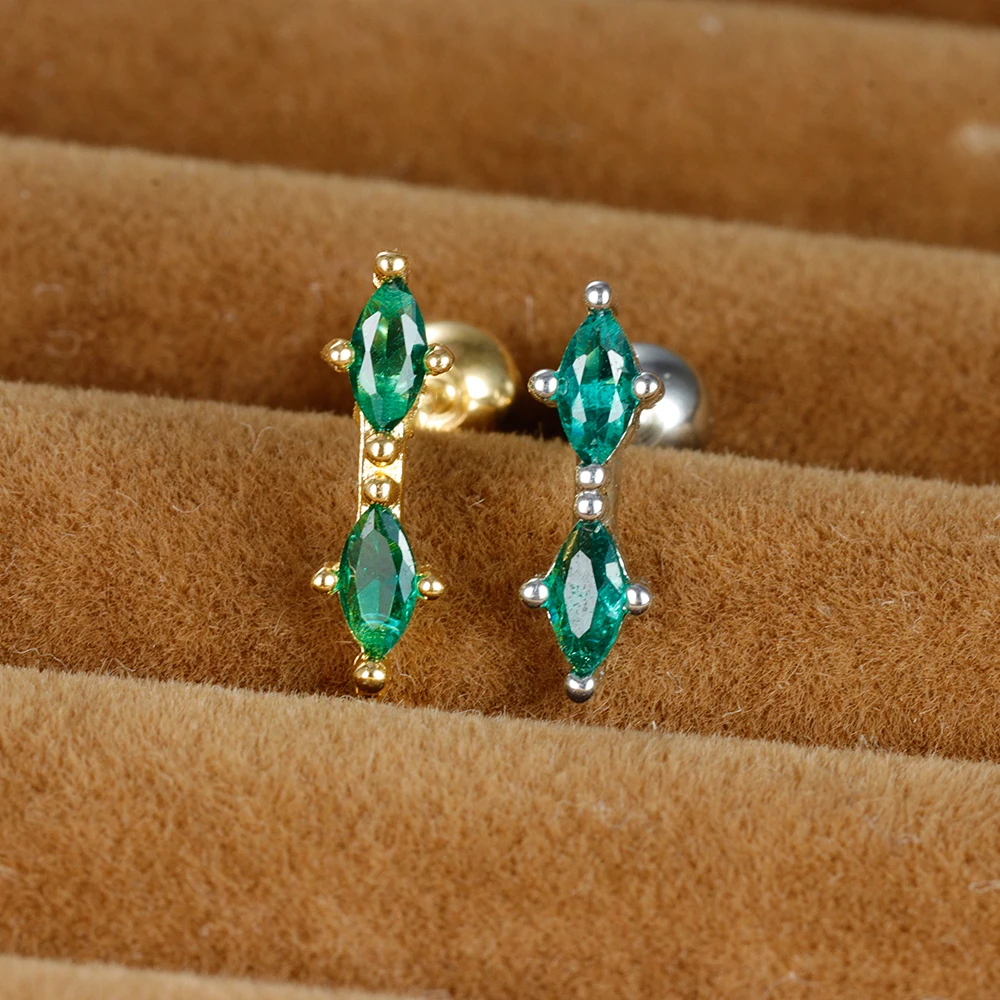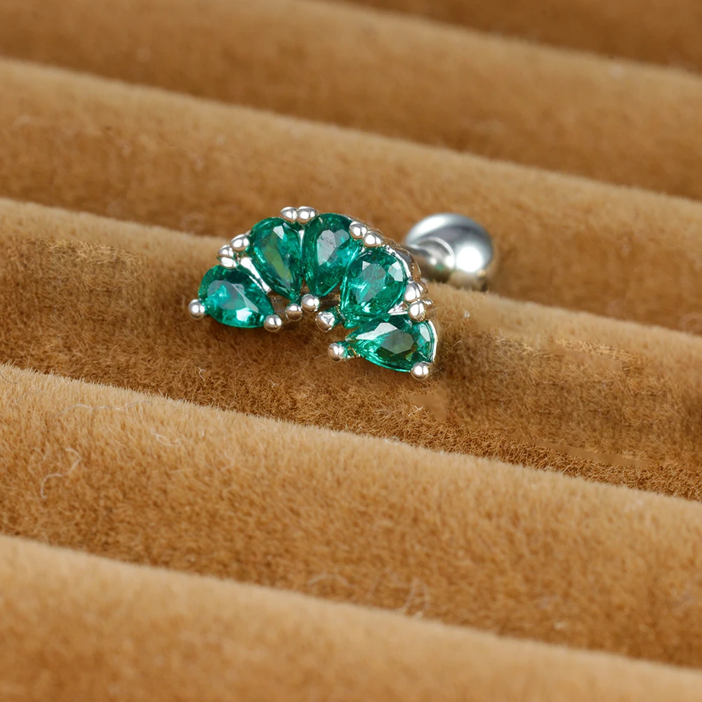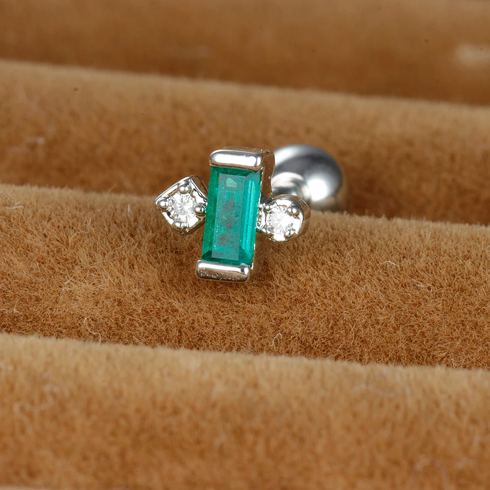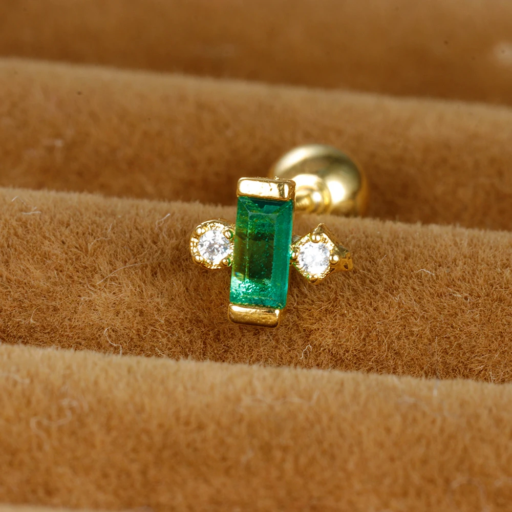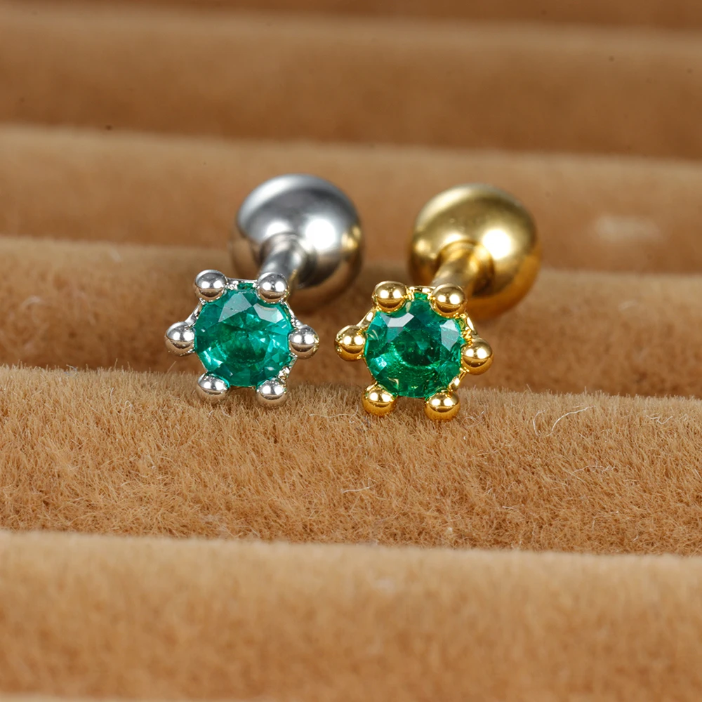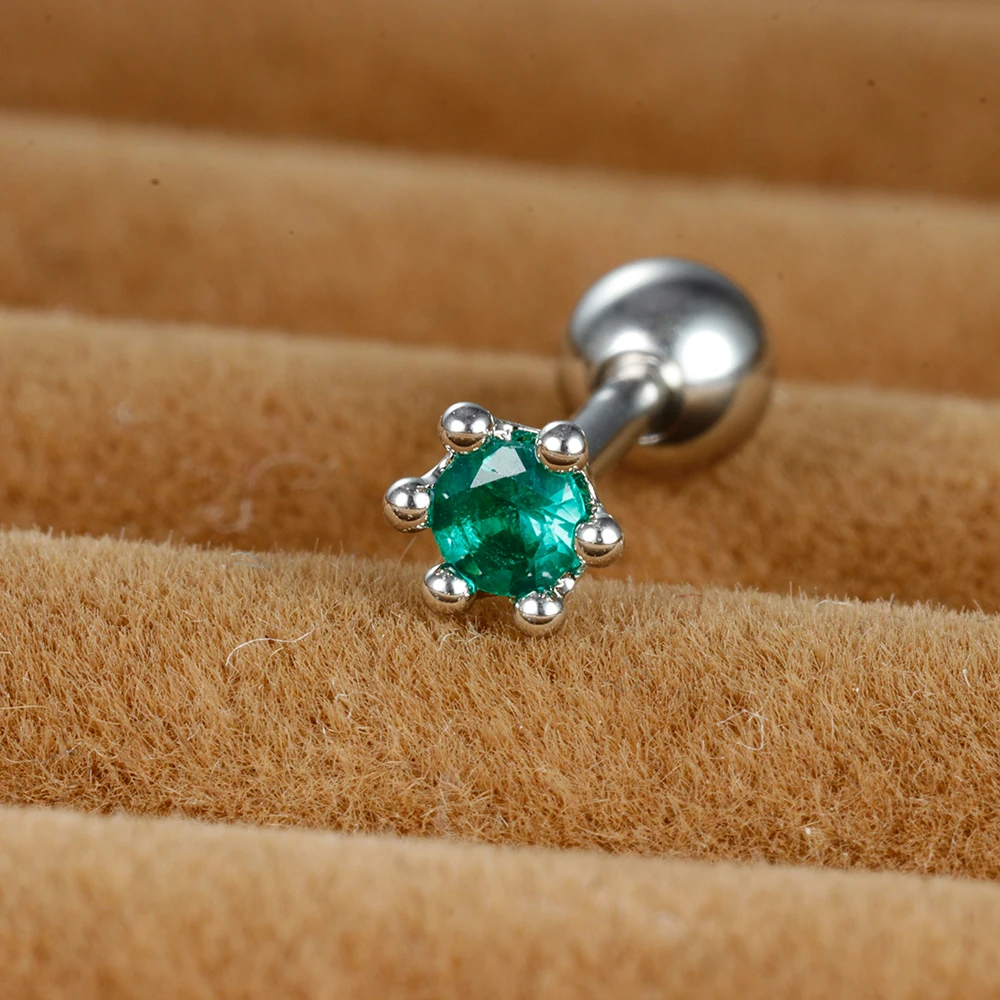1PC Green Stainless Steel Screw Tragus Piercing Stud Earring Tiny Crystal Flat Helix Lobe Rook Cartilage Earing Trend Jewelry