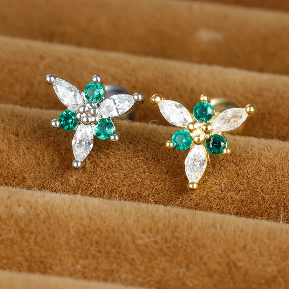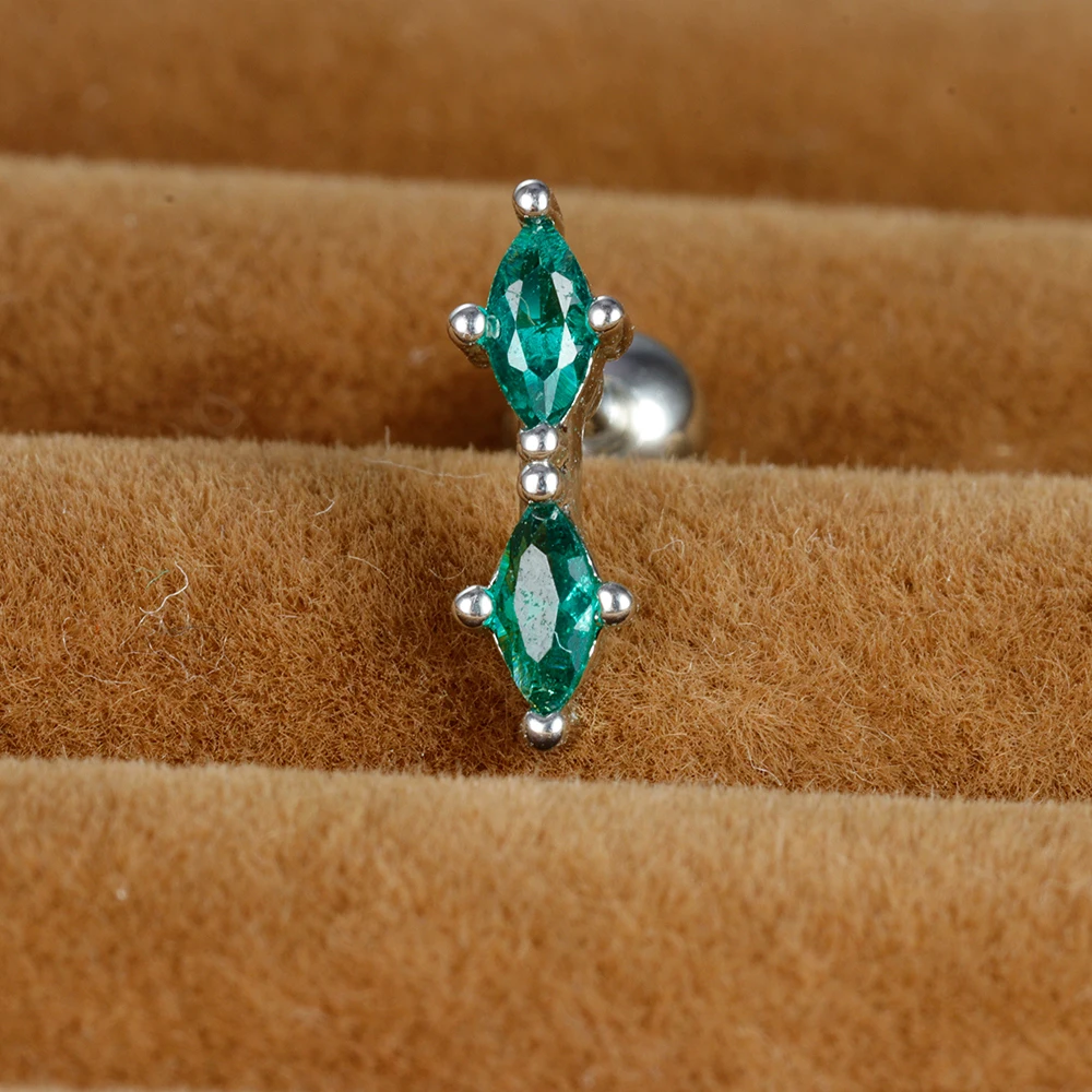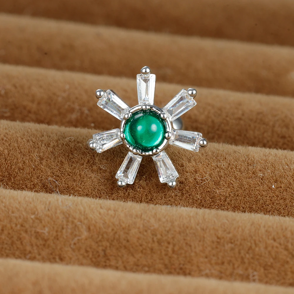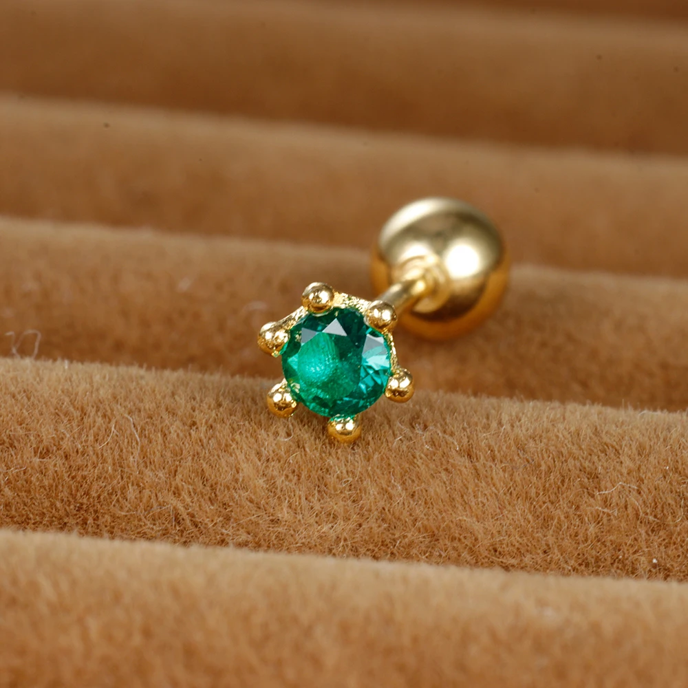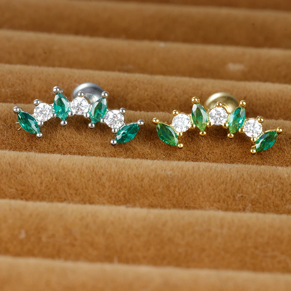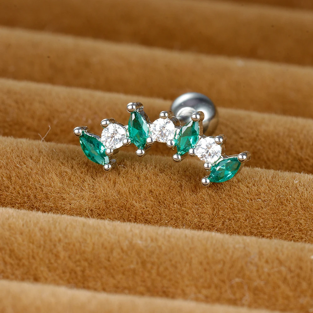 1PC Green Stainless Steel Screw Tragus Piercing Stud Earring Tiny Crystal Flat Helix Lobe Rook Cartilage Earing Trend Jewelry