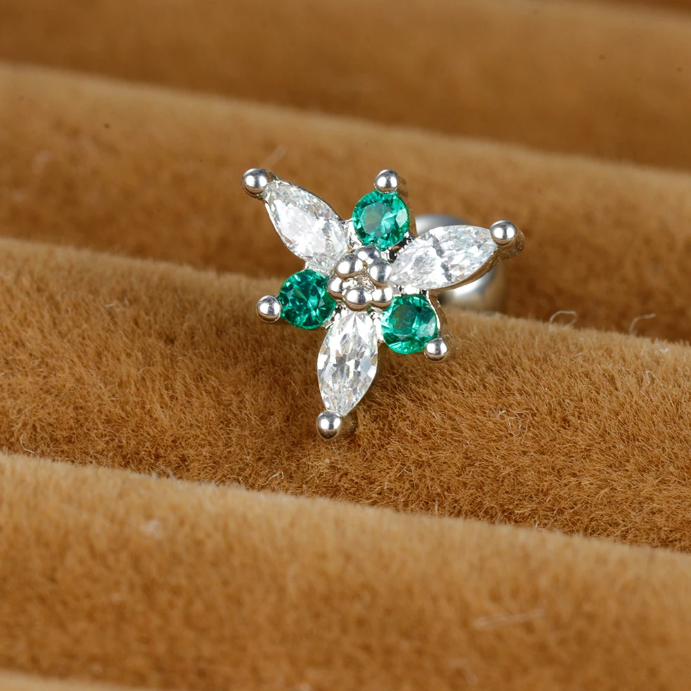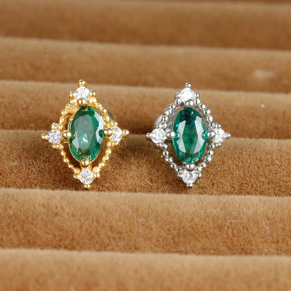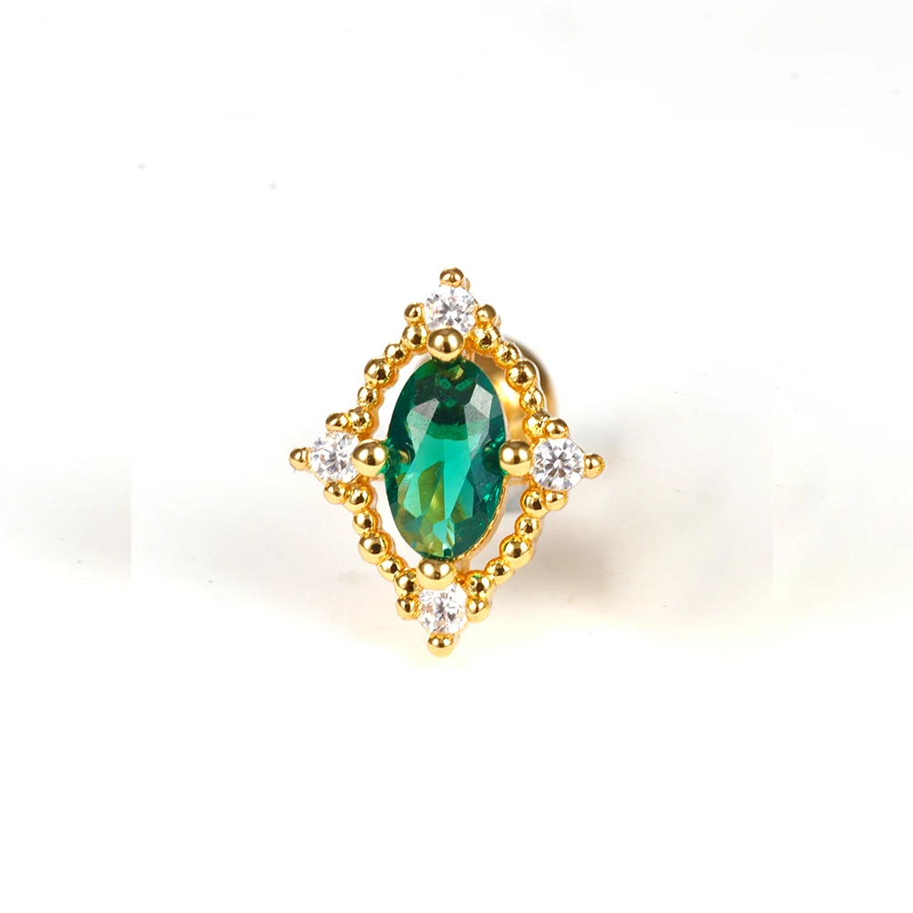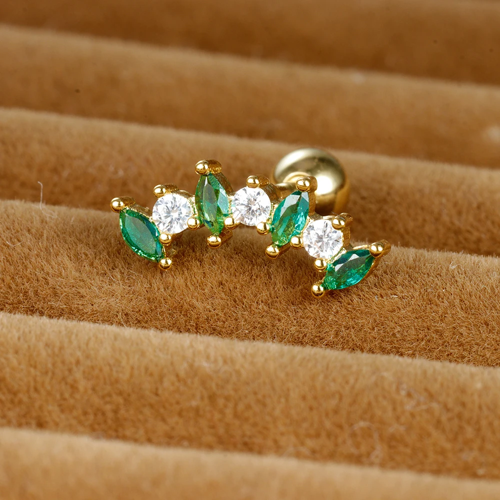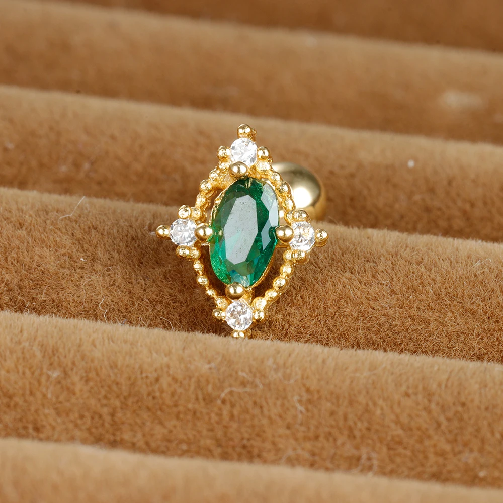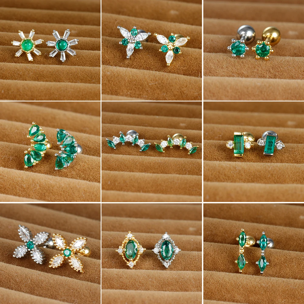 1PC Green Stainless Steel Screw Tragus Piercing Stud Earring Tiny Crystal Flat Helix Lobe Rook Cartilage Earing Trend Jewelry