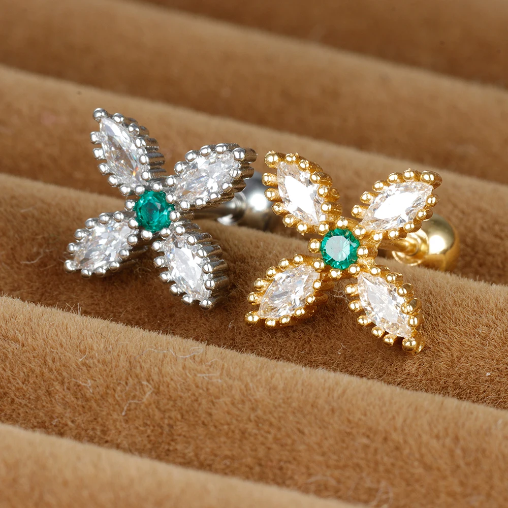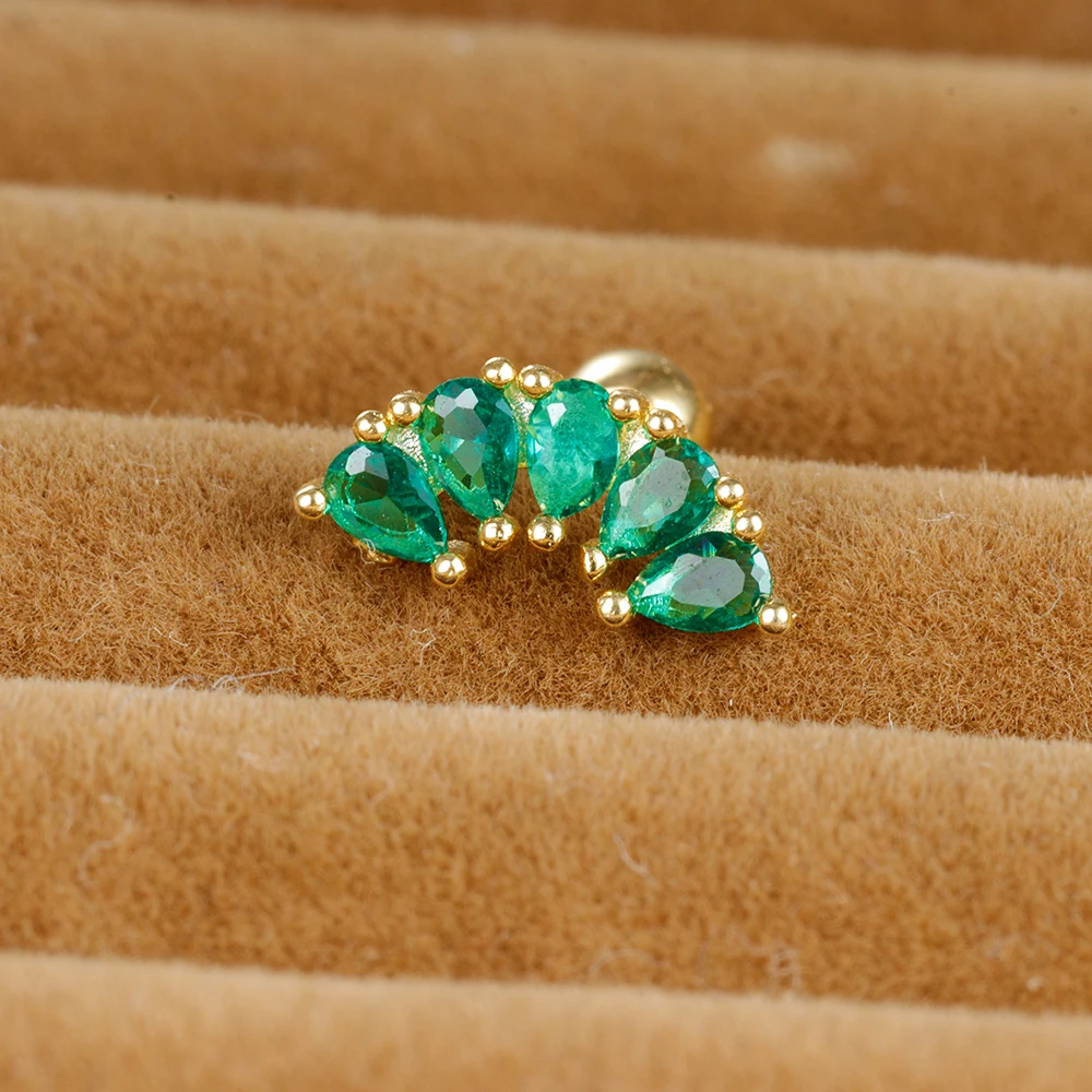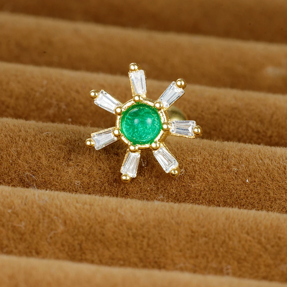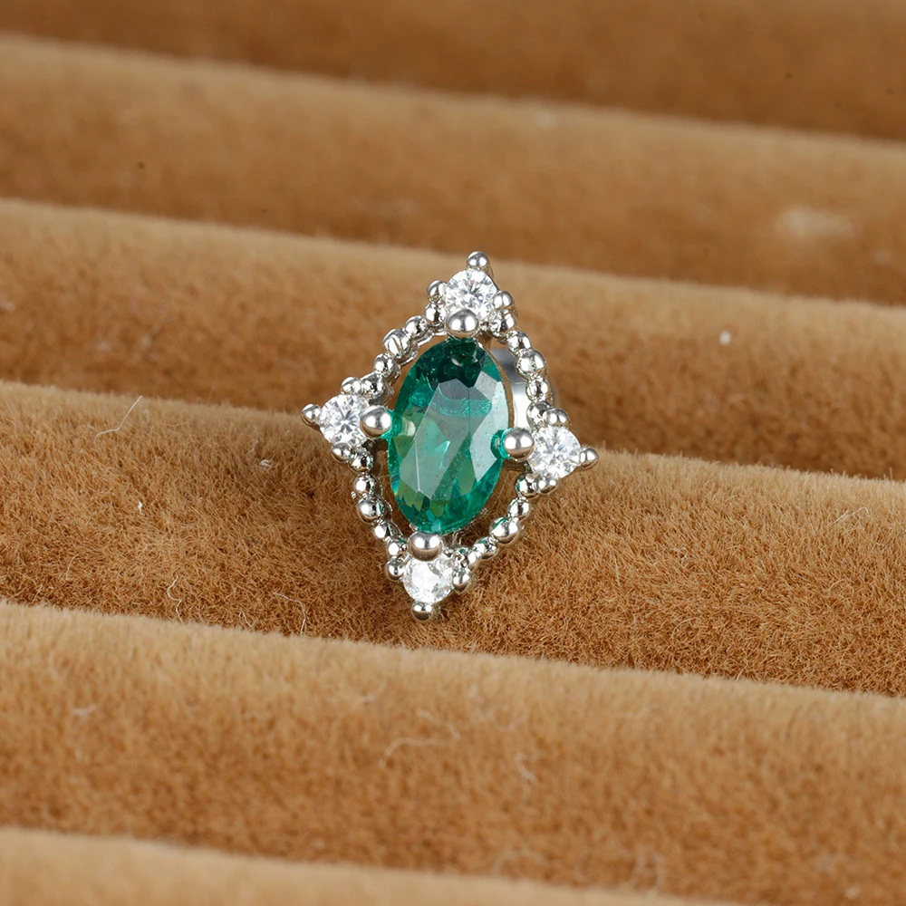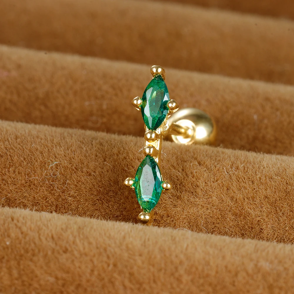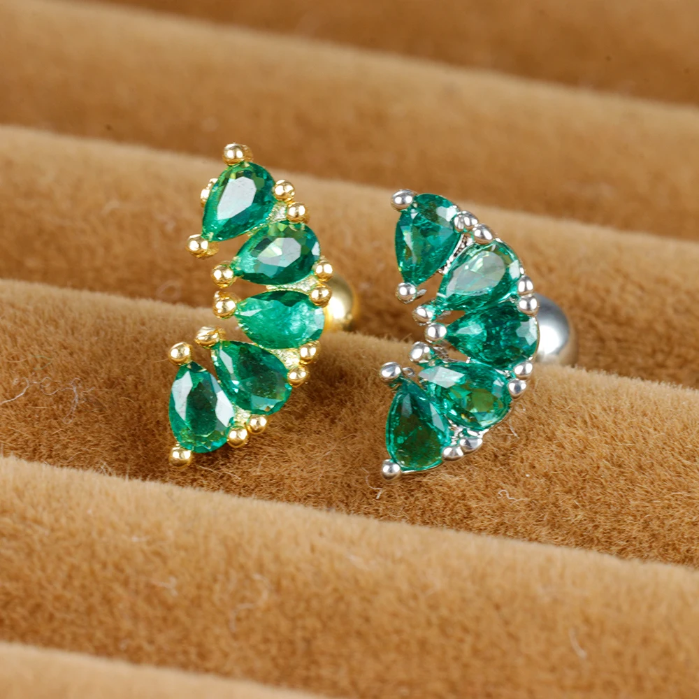 1PC Green Stainless Steel Screw Tragus Piercing Stud Earring Tiny Crystal Flat Helix Lobe Rook Cartilage Earing Trend Jewelry