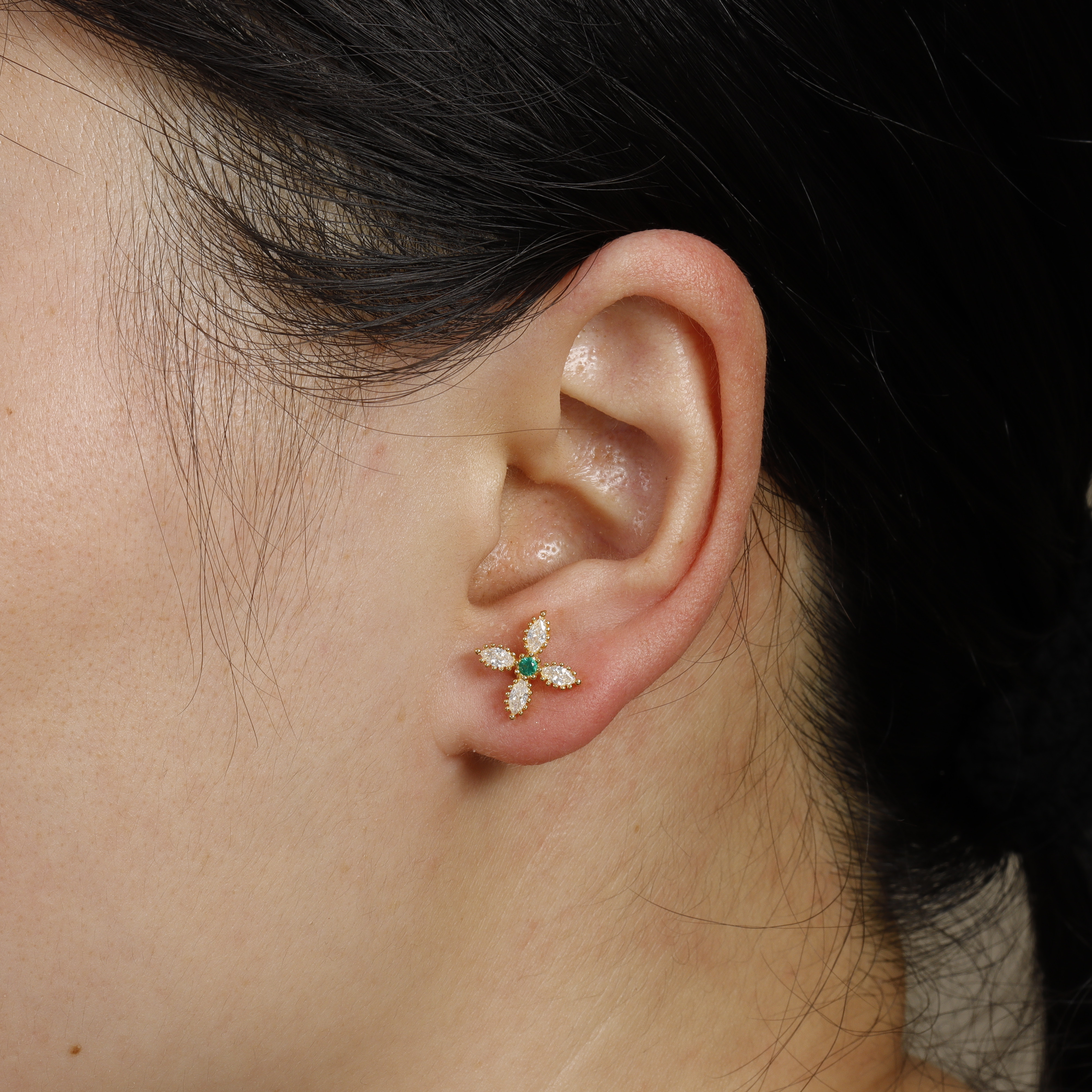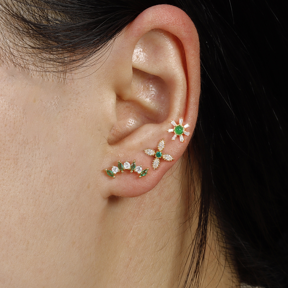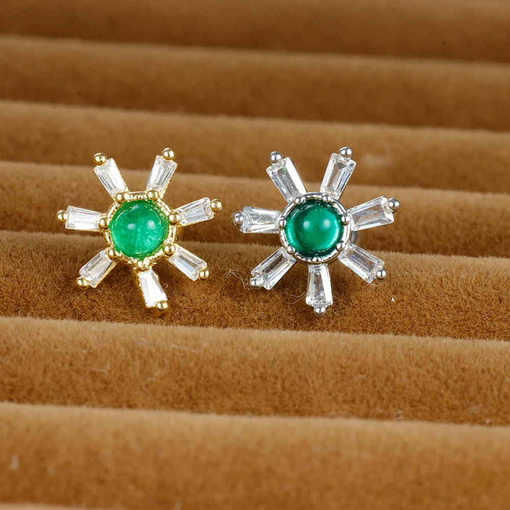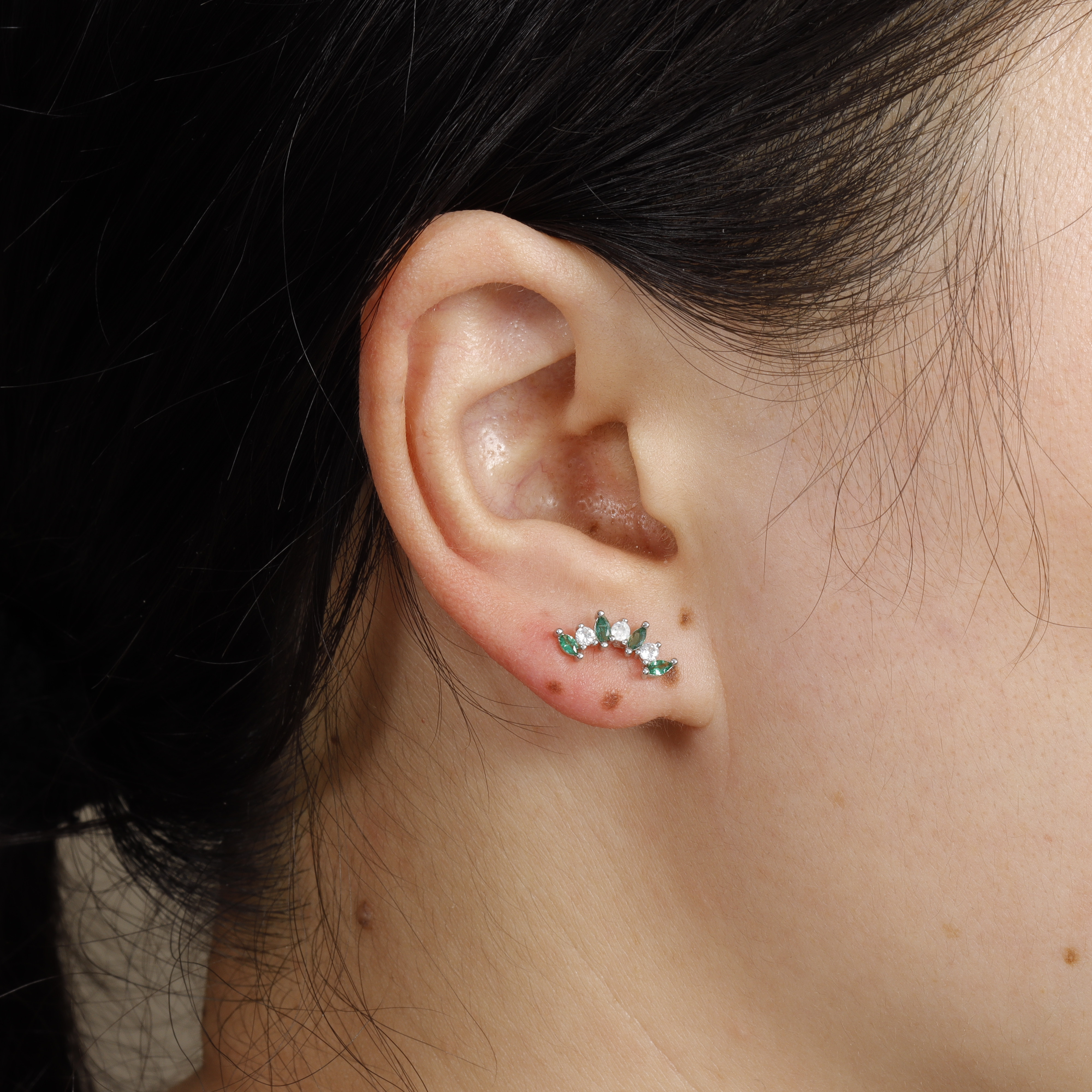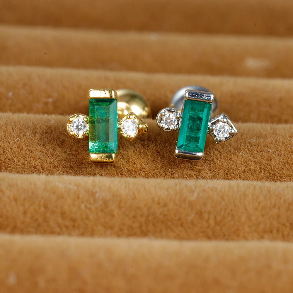 1PC Green Stainless Steel Screw Tragus Piercing Stud Earring Tiny Crystal Flat Helix Lobe Rook Cartilage Earing Trend Jewelry
