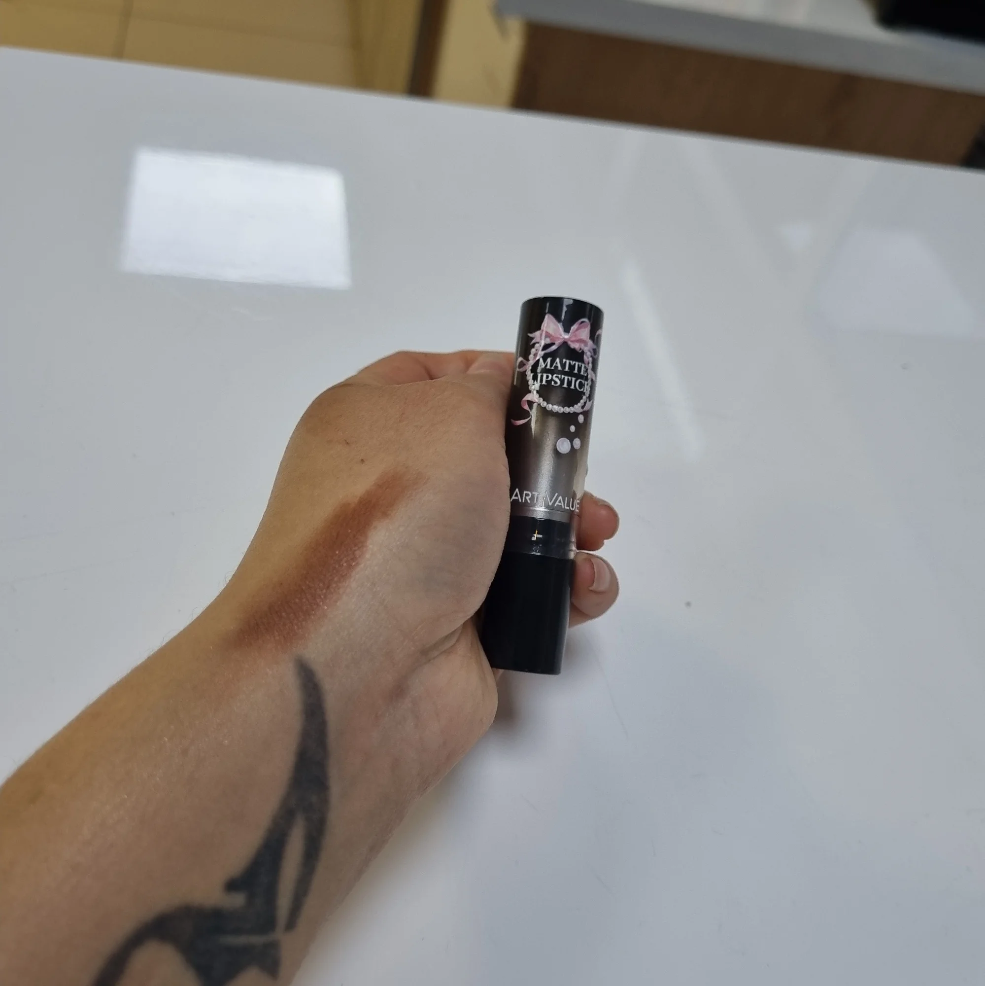 The lipstick isn't great; it rolls into little clumps on the lips, basically rubbish.