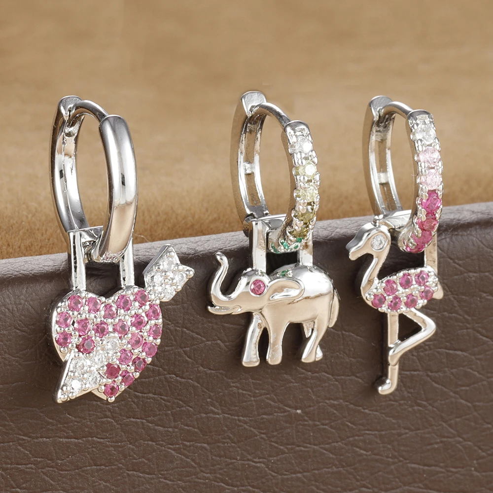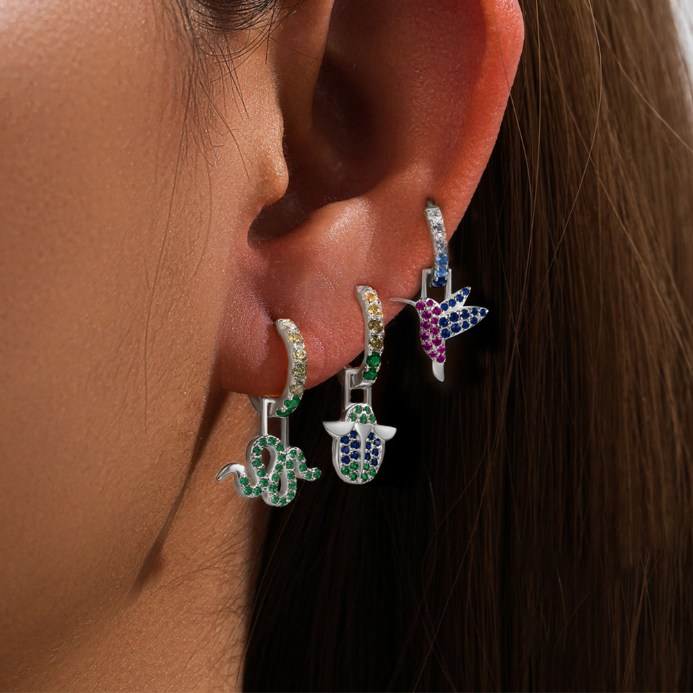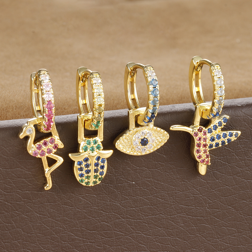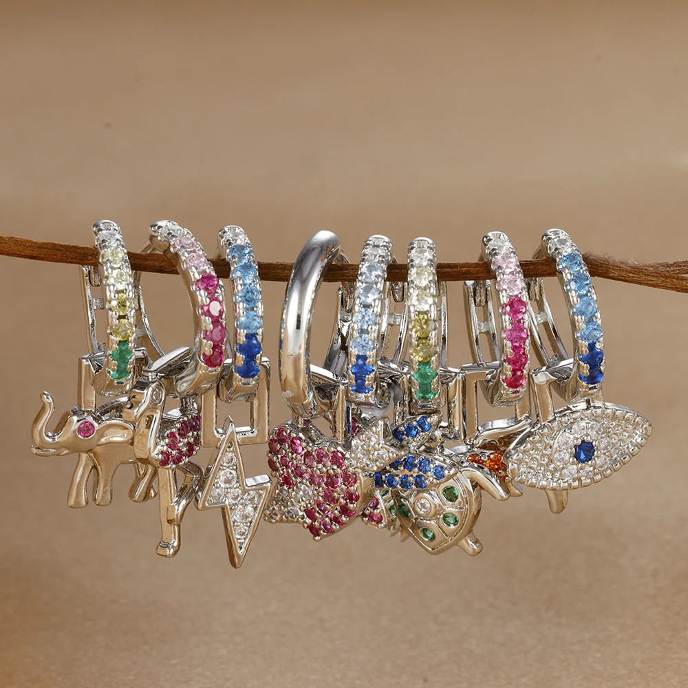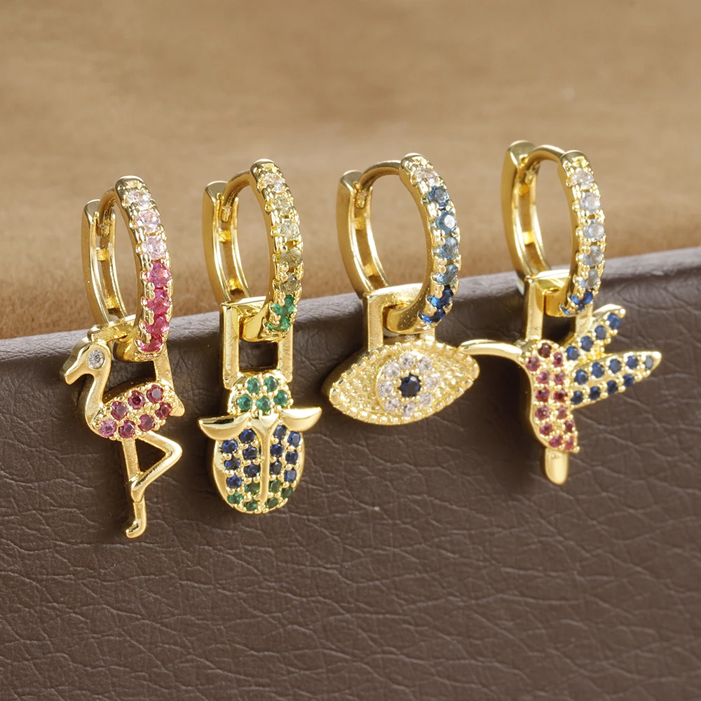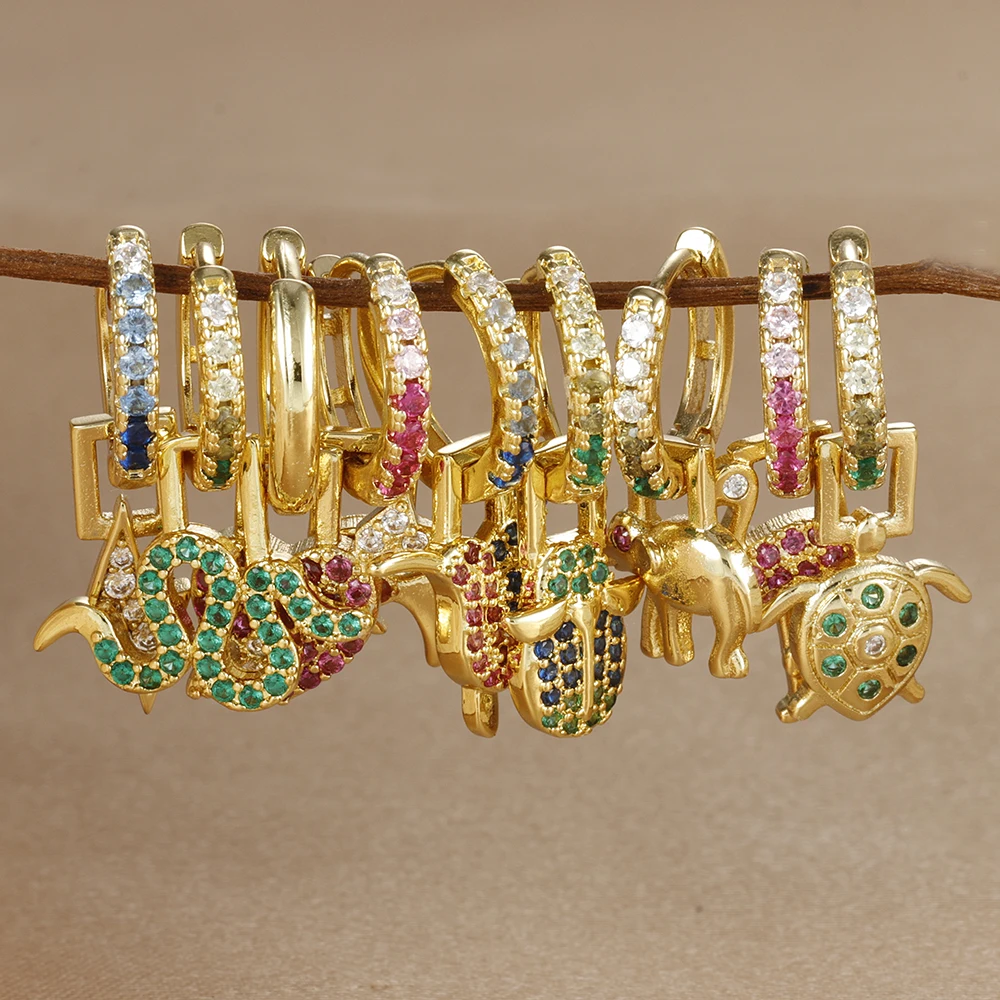 1PC Stainless Steel Animal Drop Earrings for Women Colorful Zircon 18k Gold Plated Huggies Earring Hypoallergen Piercing Jewelry
