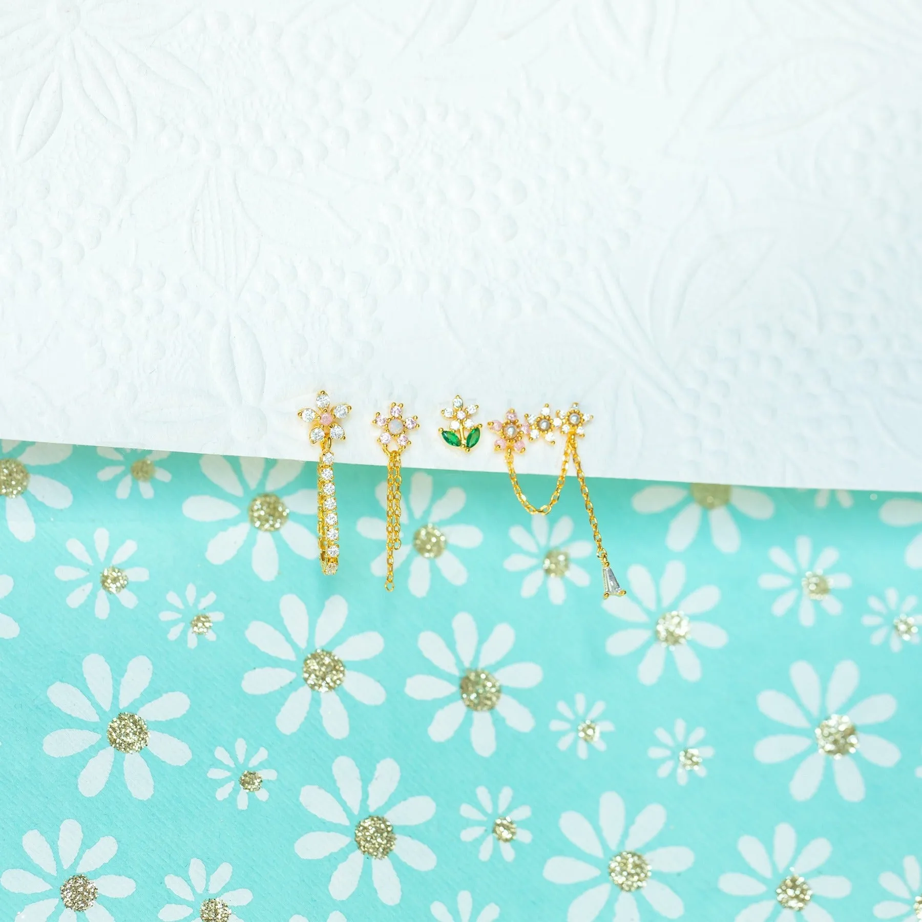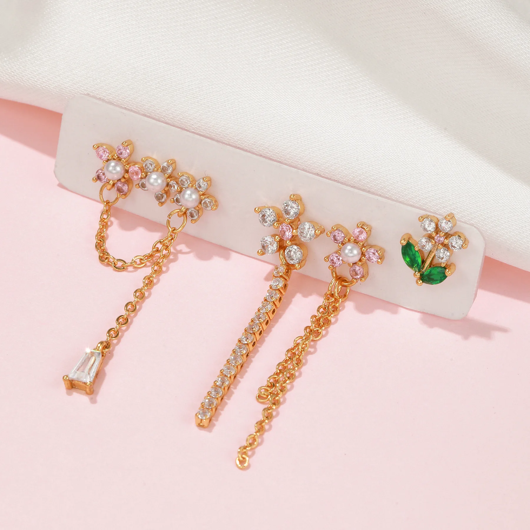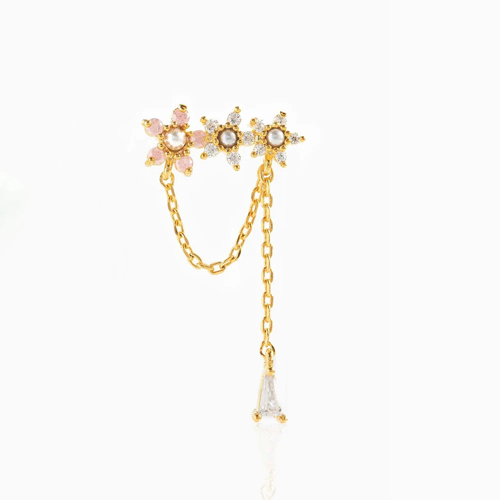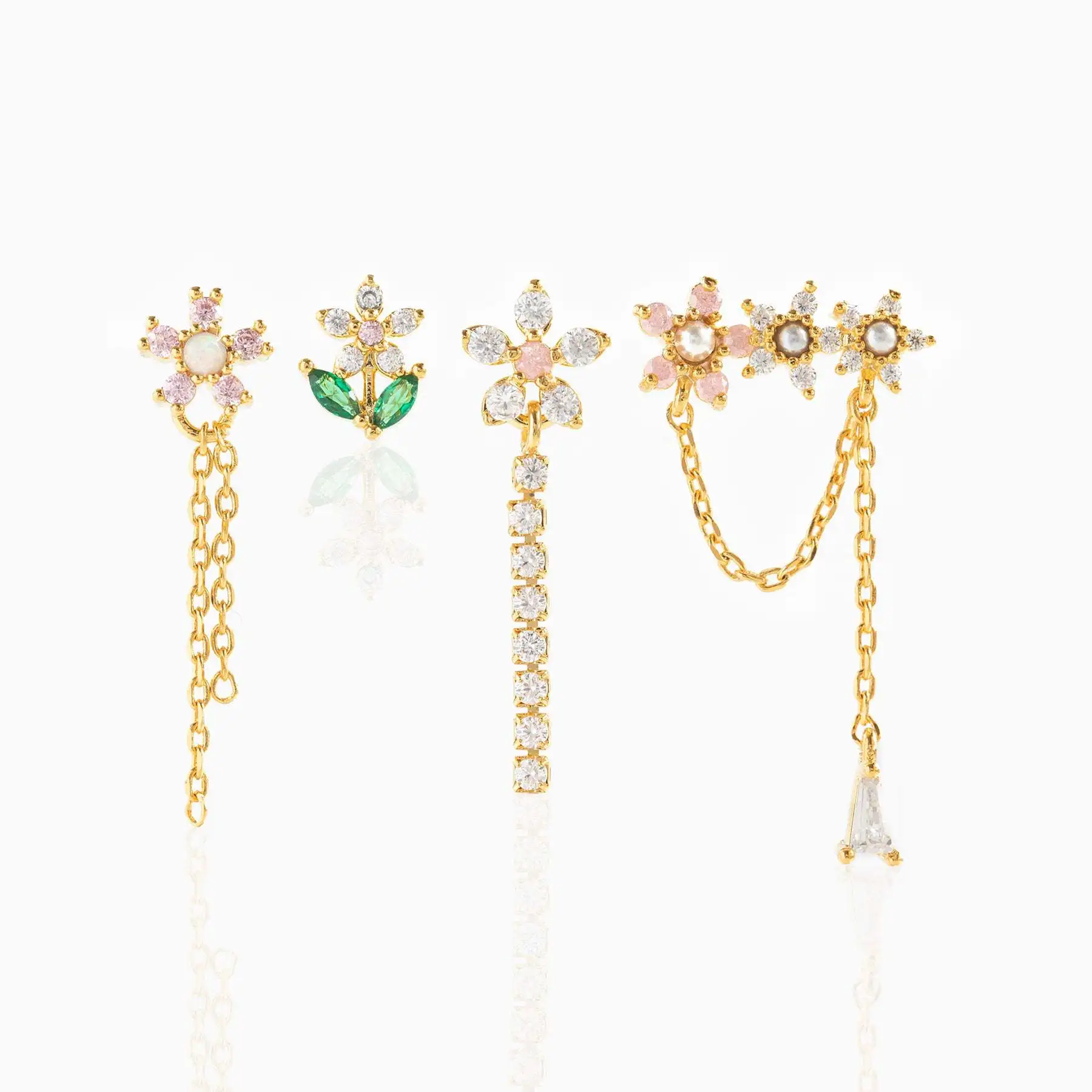 1PC Stainless Steel Zircon Flower Chain Pendant Earrings Korean Long Tassel Piercing Earrings For Women Wedding Jewelry Gift