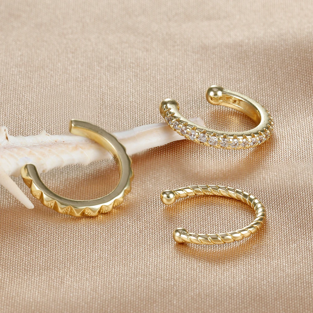 1PC Vintage Simple Metal Crystal Ear Cuff for Women Gold Color Non Piercing Fake Cartilage Clip Earring Punk Unisex Rock Jewelry