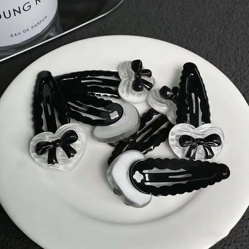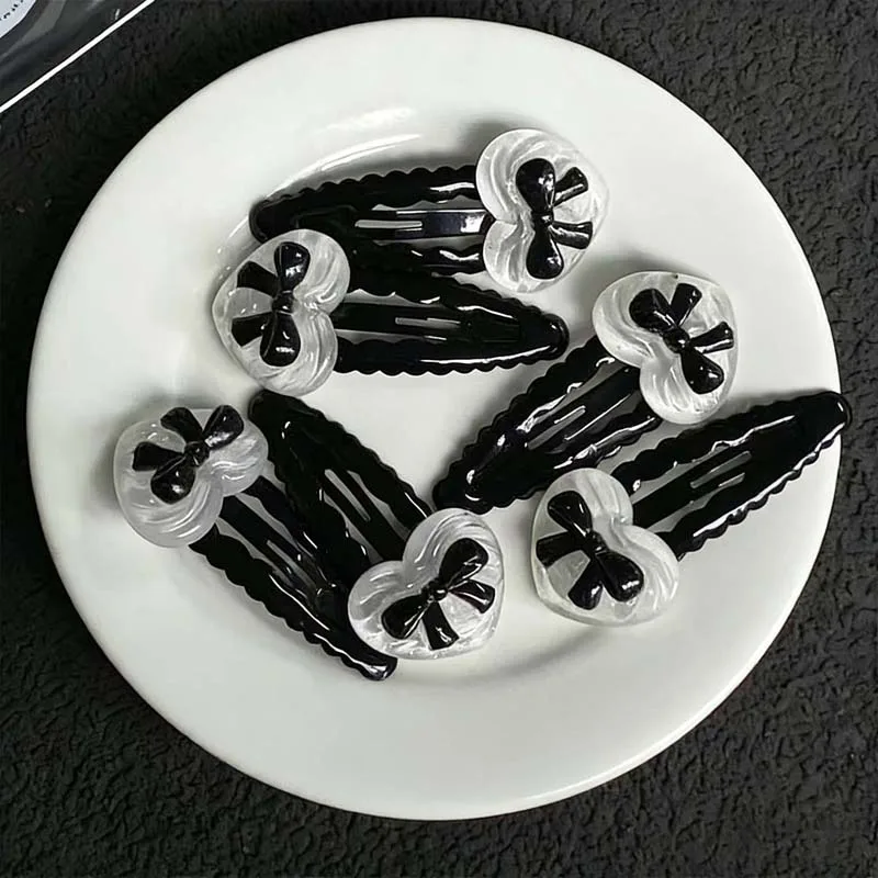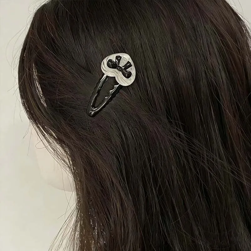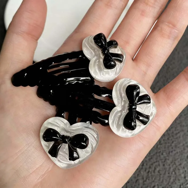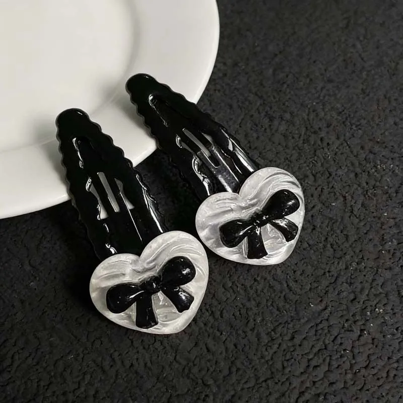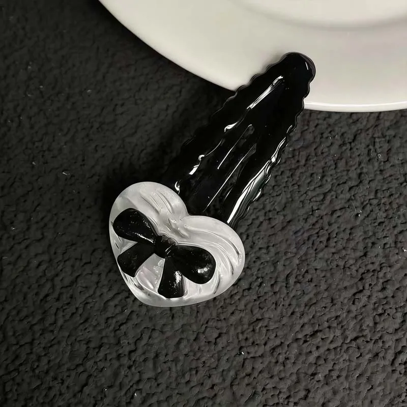 1Pcs Fashion Black Resin Heart Bowknot Hair Clip For Women Girls Sweet Cute Wavy BB Clip Side Clip Hair Accessories