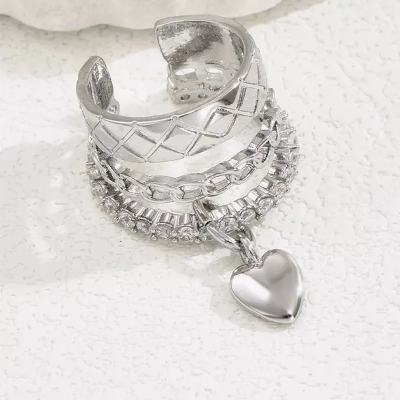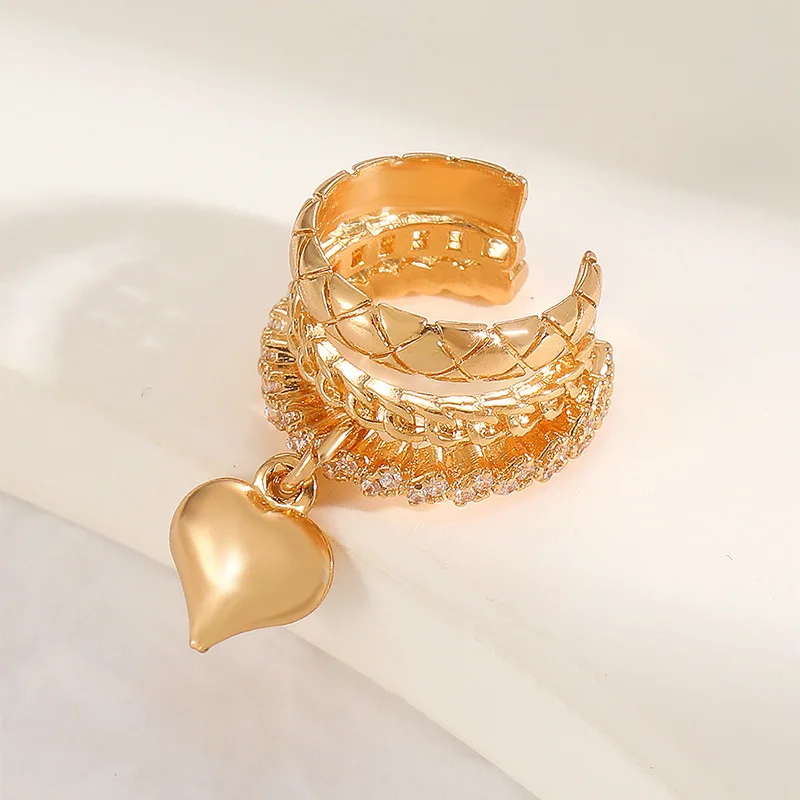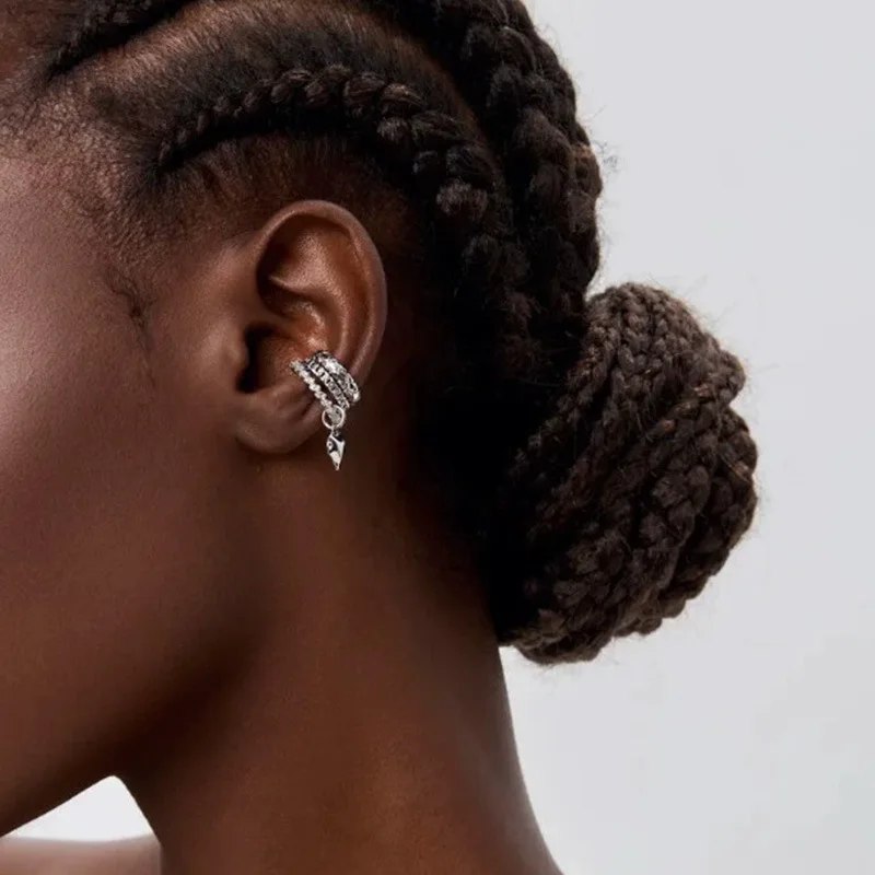 1pcs Vintage Romantic Heart Pendant Clip Earrings for Women No Piercing Multi-Layer Chain Ear Cuff Water Drop Teardrop Jewelry