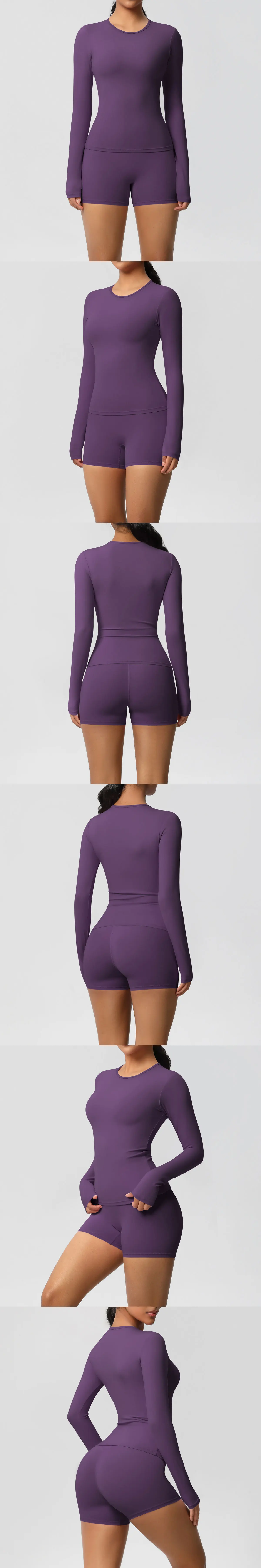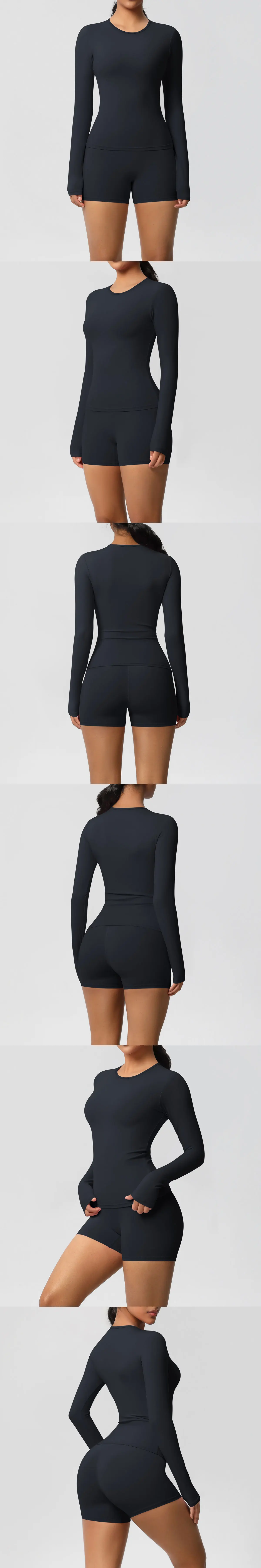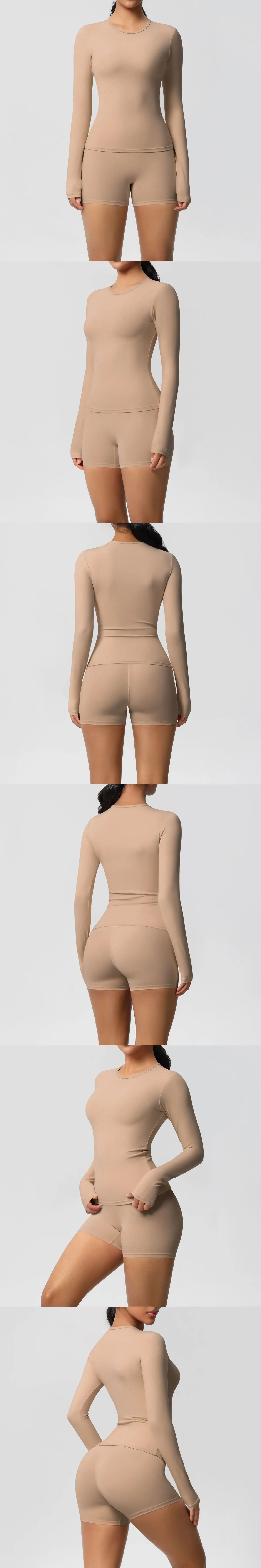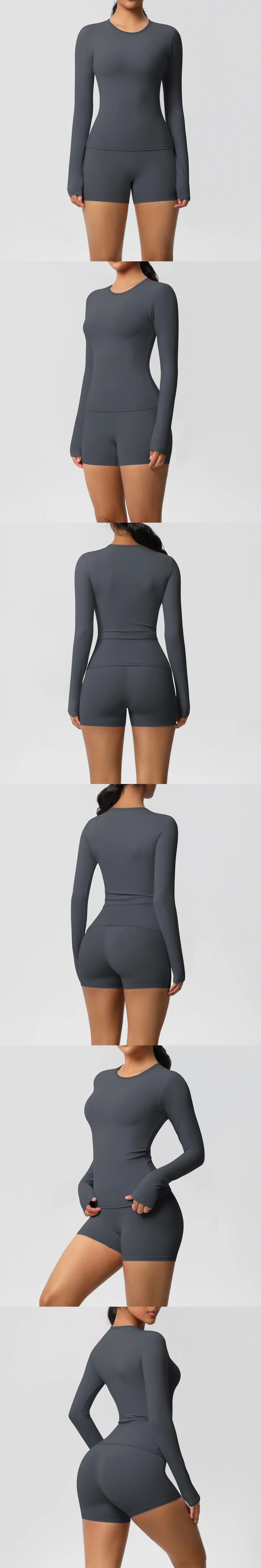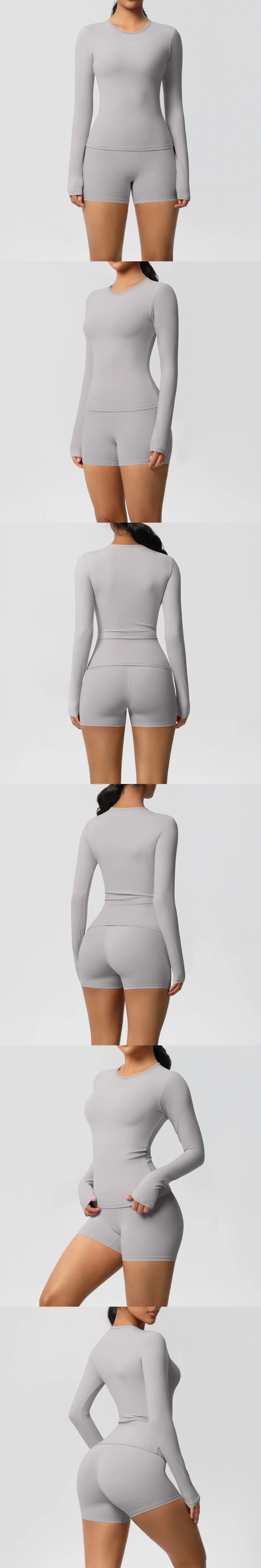 2 Pieces Yoga Clothes Gym Set Sports Shorts Set Women Yoga Suit Long Sleeved High Waist Shorts Fitness Suit Workout Tracksuit