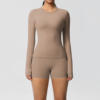 2 Pieces Yoga Clothes Gym Set Sports Shorts Set Women Yoga Suit Long Sleeved High Waist Shorts Fitness Suit Workout Tracksuit