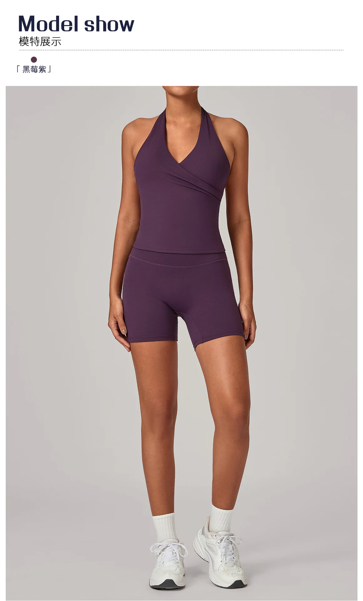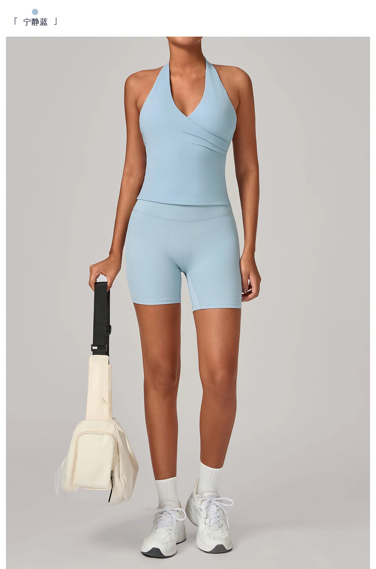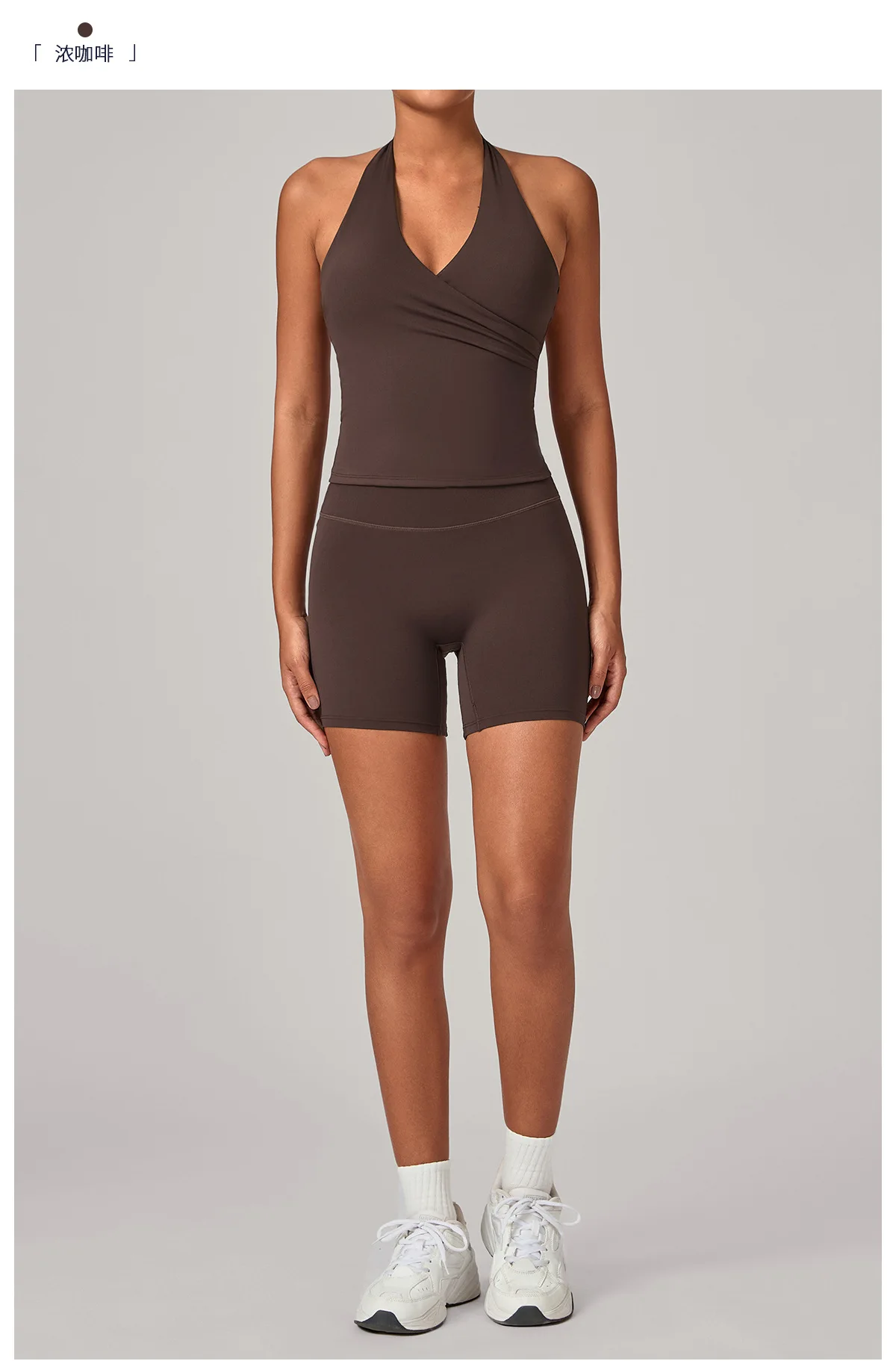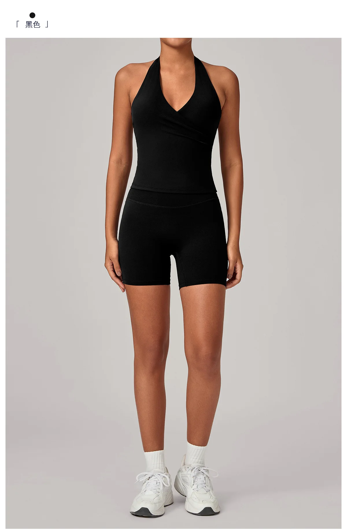 2 Pieces Yoga Suit Women Fitness Gym Clothes Outfit Halter Sports Fitness Suit Vest Matching Impact Shorts Workout Sets Gym Sets