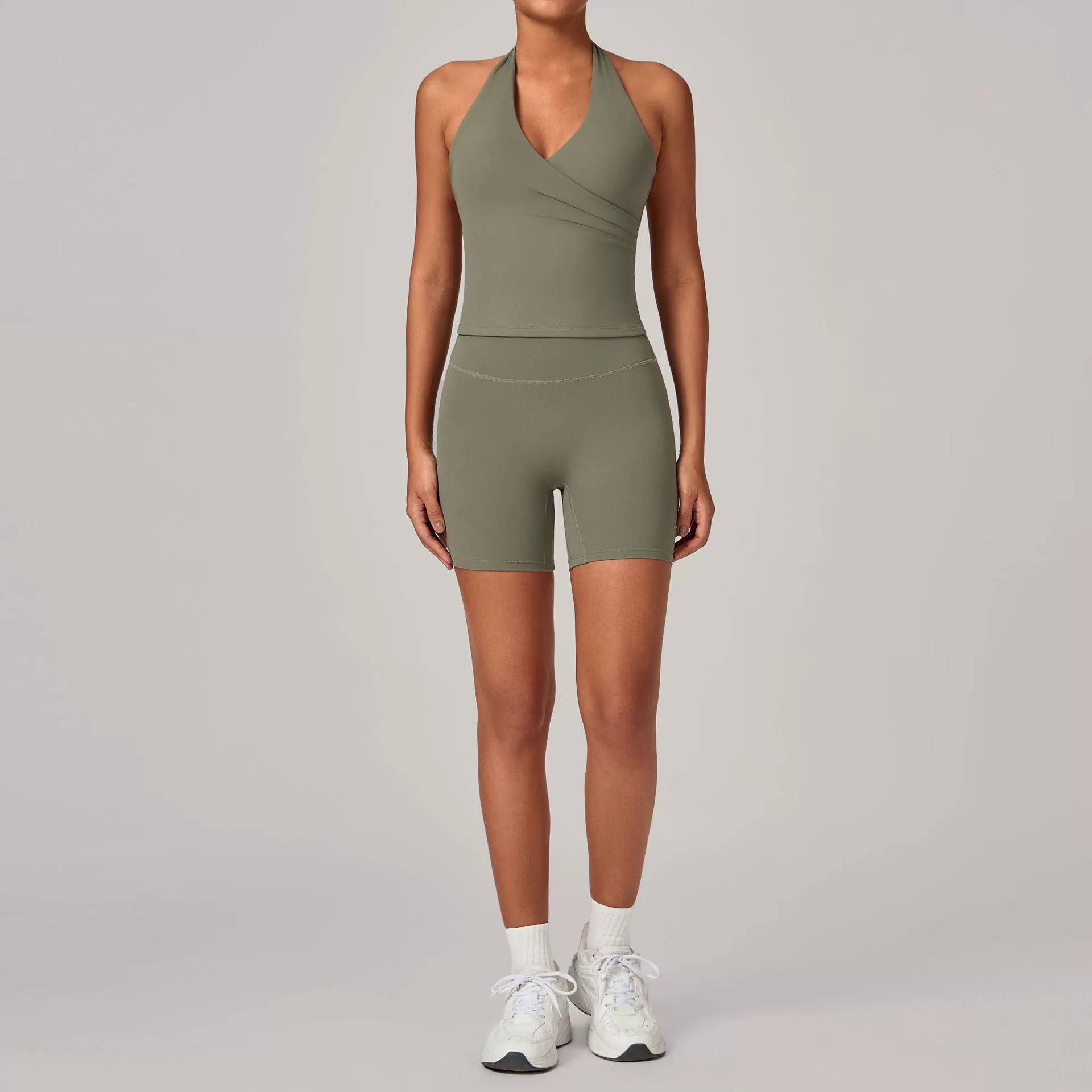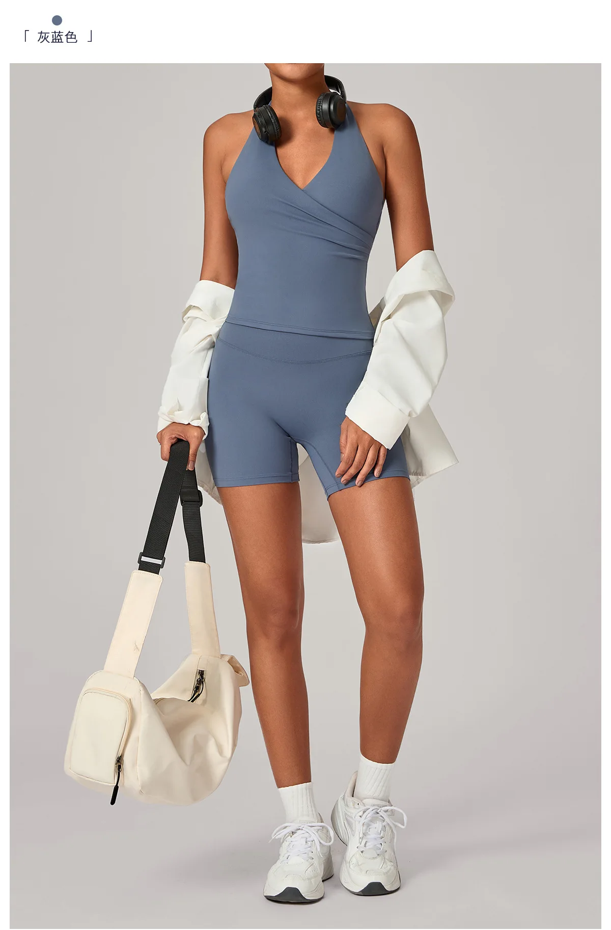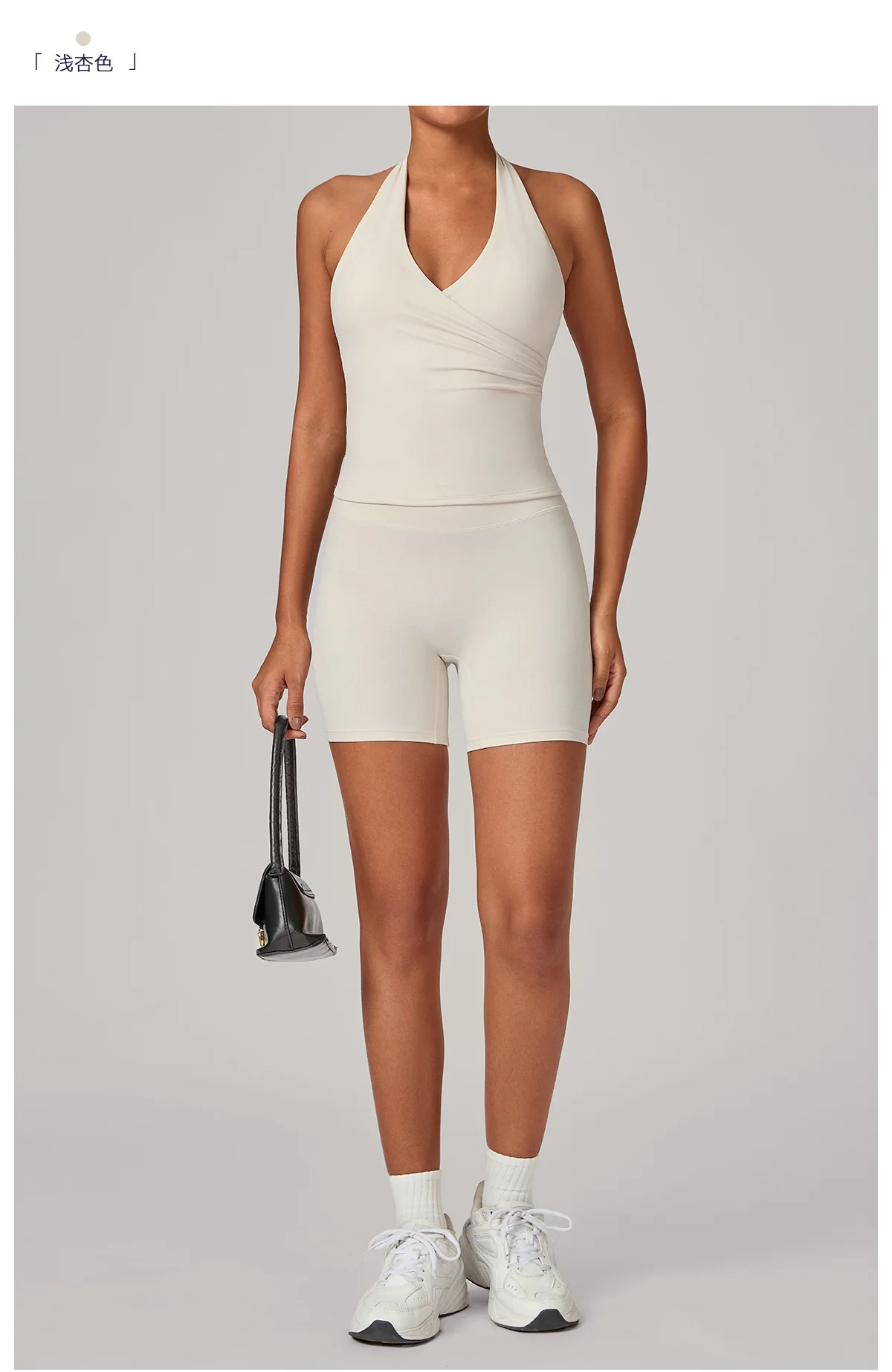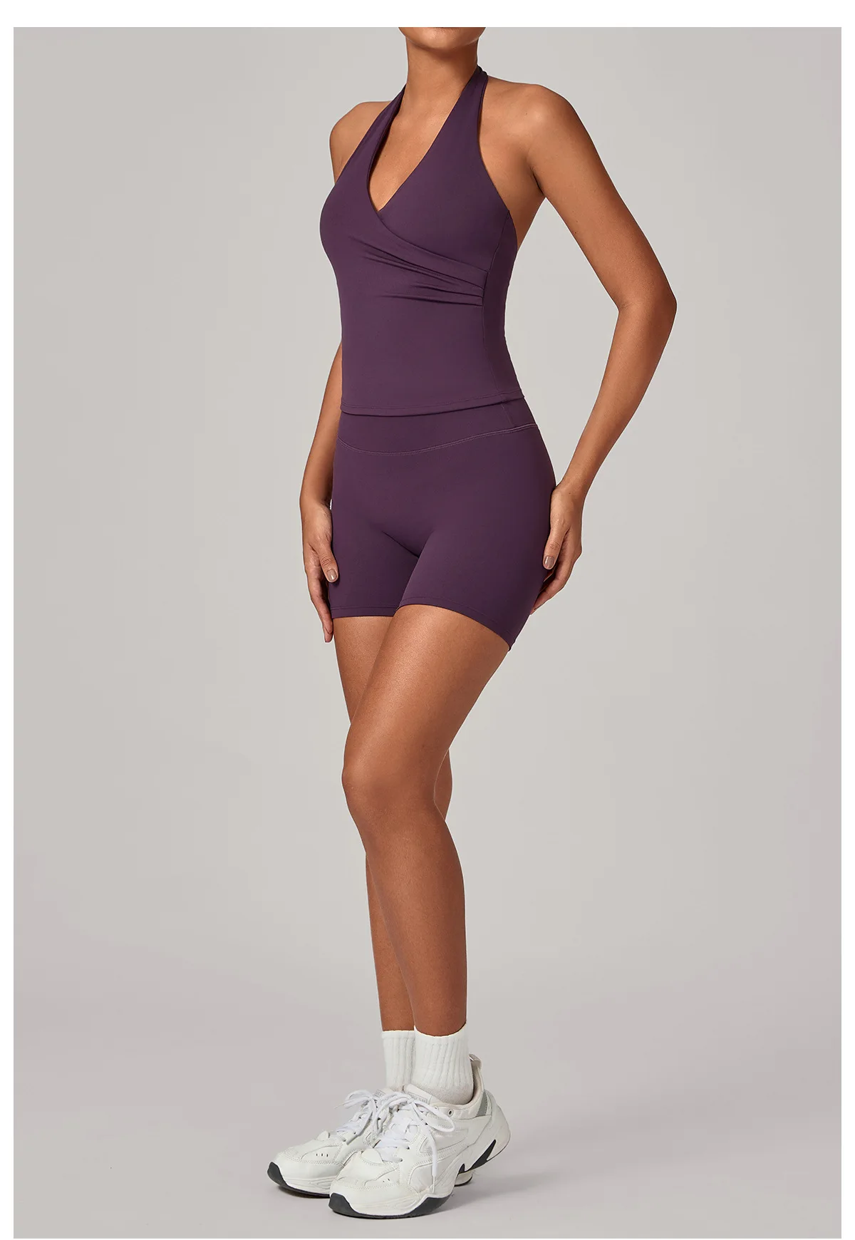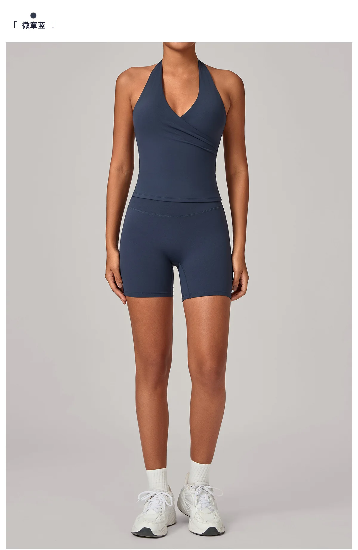 2 Pieces Yoga Suit Women Fitness Gym Clothes Outfit Halter Sports Fitness Suit Vest Matching Impact Shorts Workout Sets Gym Sets