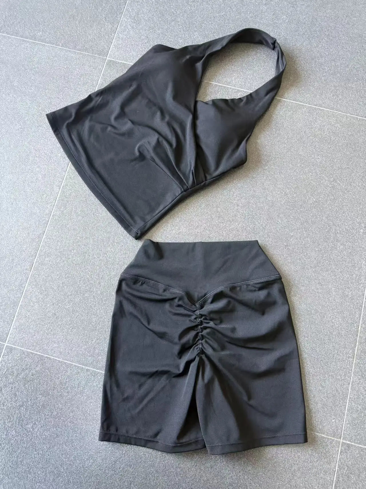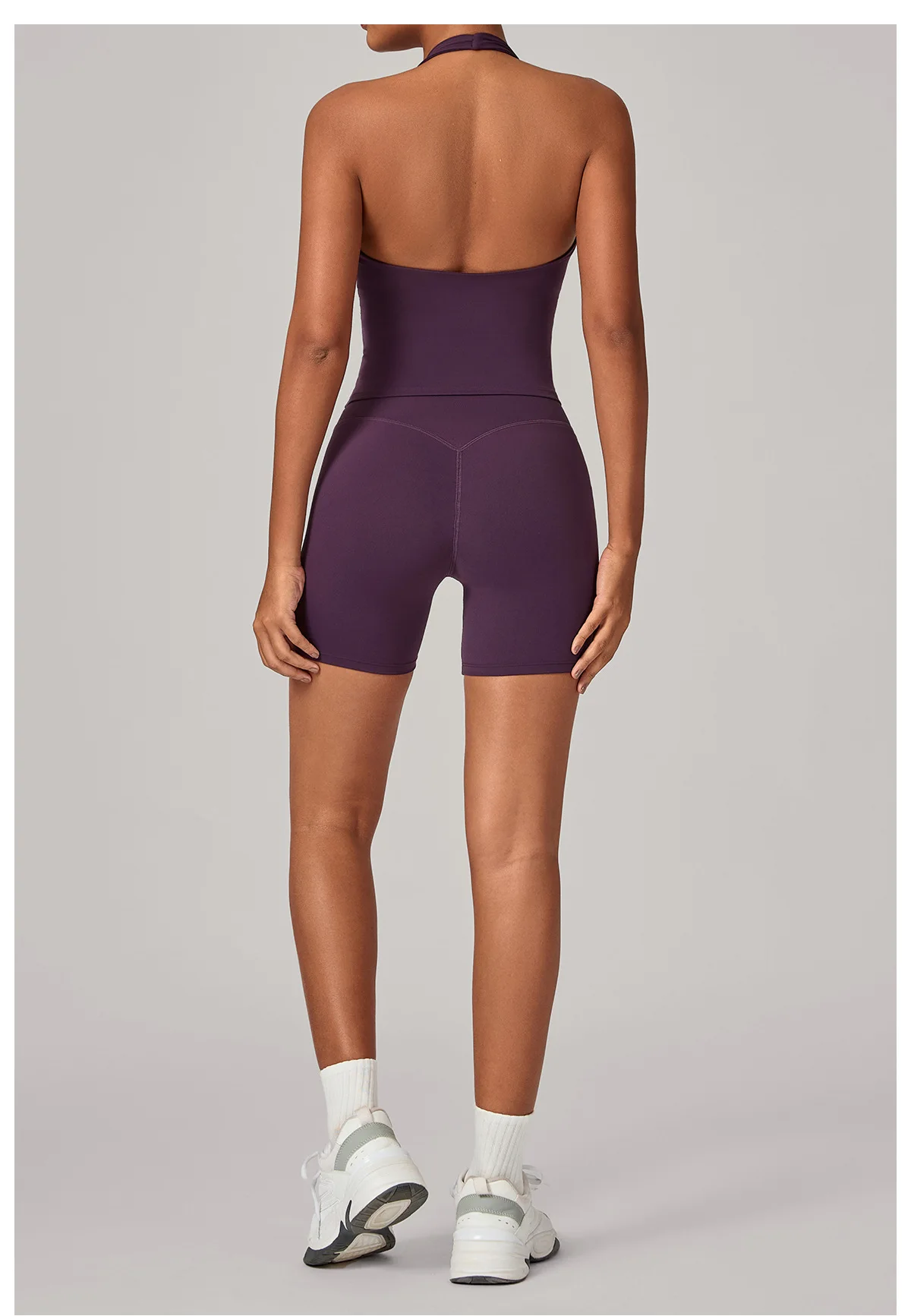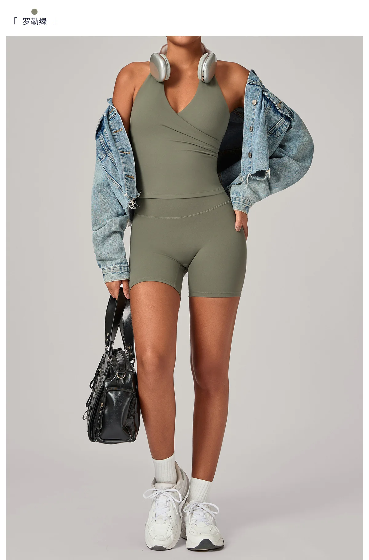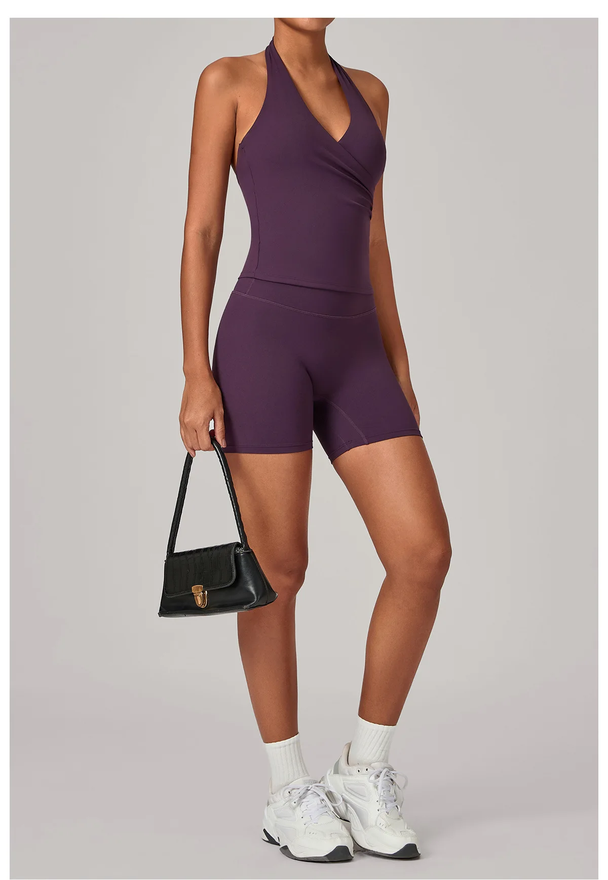 2 Pieces Yoga Suit Women Fitness Gym Clothes Outfit Halter Sports Fitness Suit Vest Matching Impact Shorts Workout Sets Gym Sets