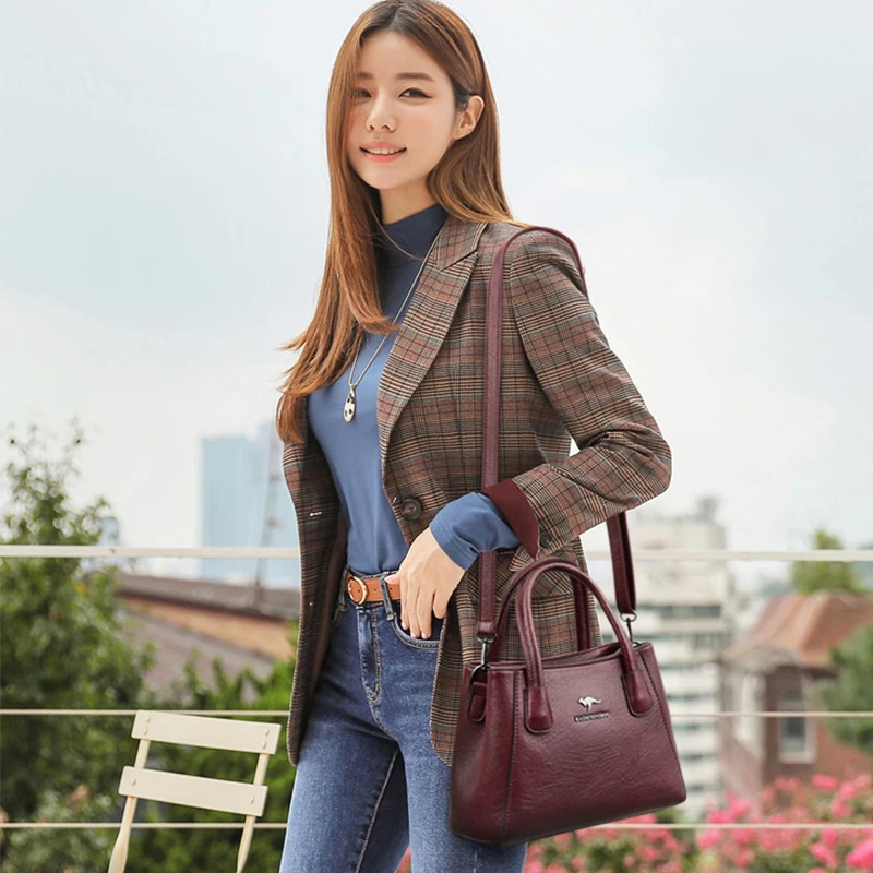 2 Pockets Solid Color Bucket Bag Leather Shoulder Bag for Women 2024 Luxury Handbags Women Bag Designer Elegant Lady Hand Bag