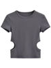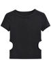 2023 Side Waist Off Short Top Women’s Round Neck Slim Fit Versatile Solid Color Short Sleeve T-shirt Summer