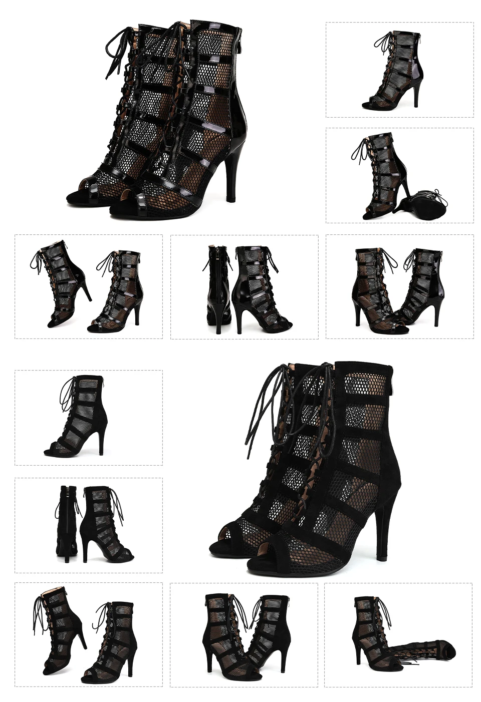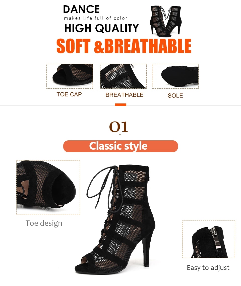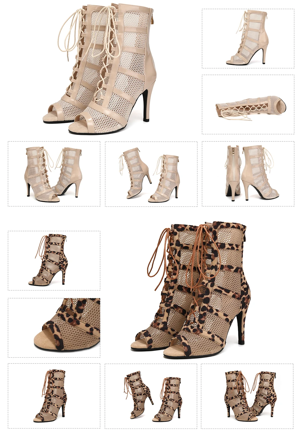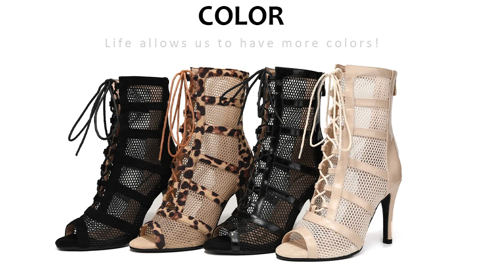 2024 New Fashion Women Black/Leopard High Heels Dance Shoes Peep Toe Boot Stilettos Female Latin Dancing Booties Big Size