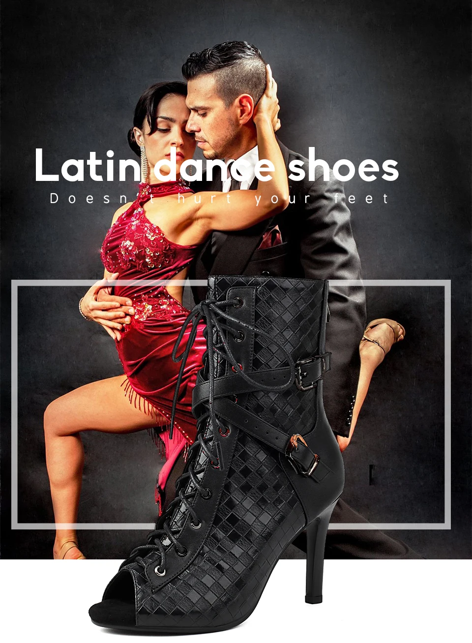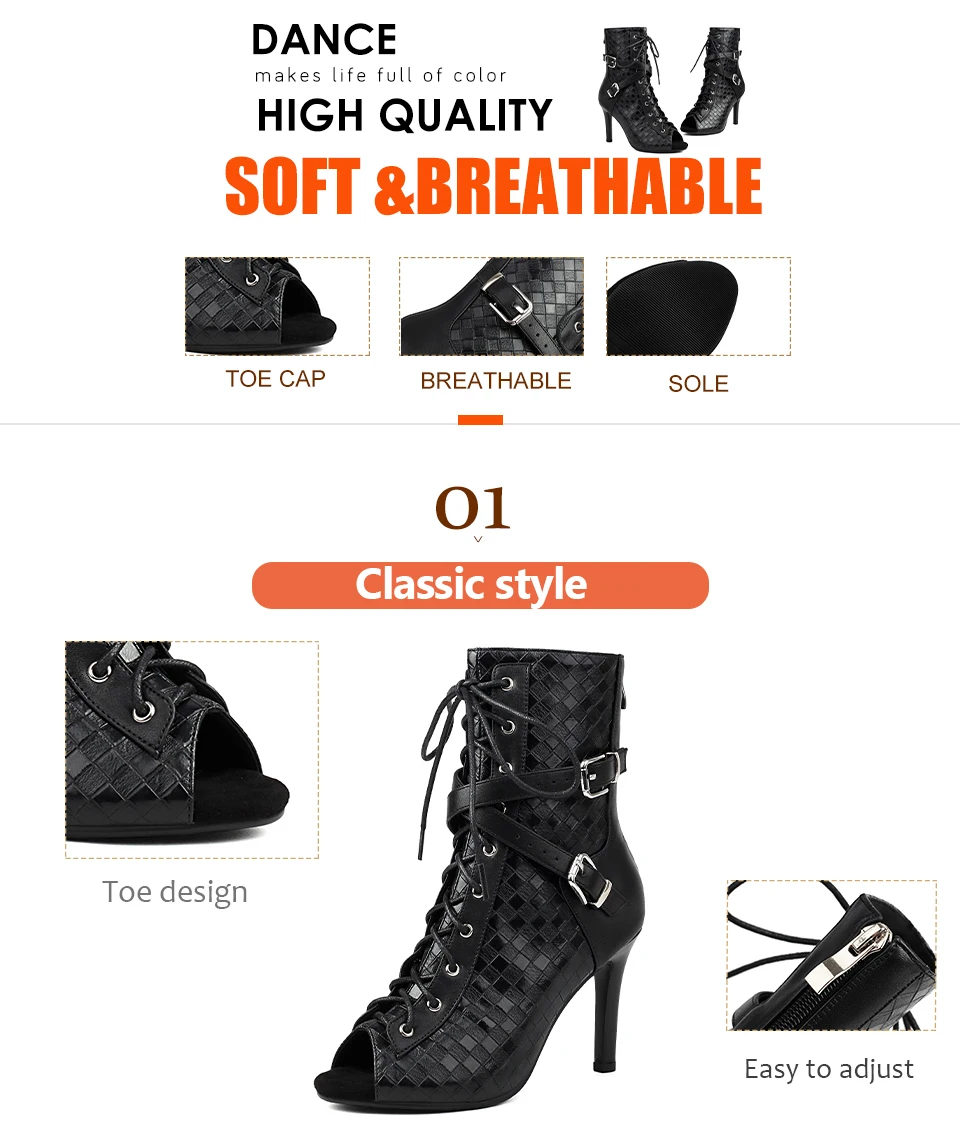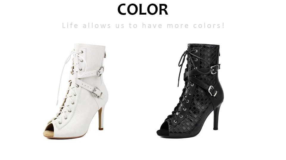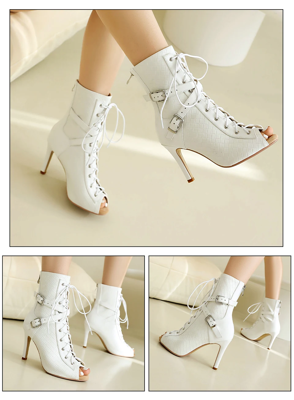 2024 New Sexy Women Dance Heels Black/White High Heels Shoes Peep Toe Boot Stilettos Female Latin Dancing Booties Big Size
