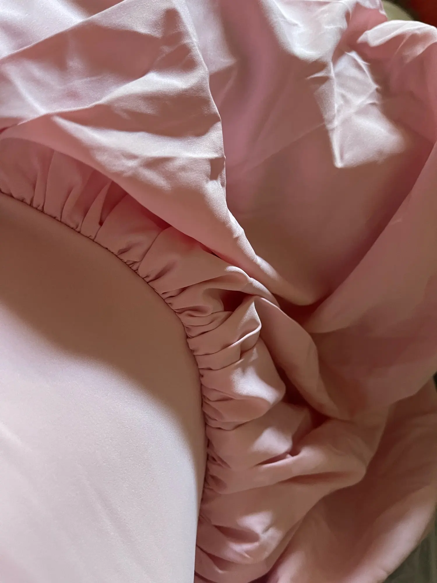 Excellent set, the color is pink as I wanted, not peach. fits true to size