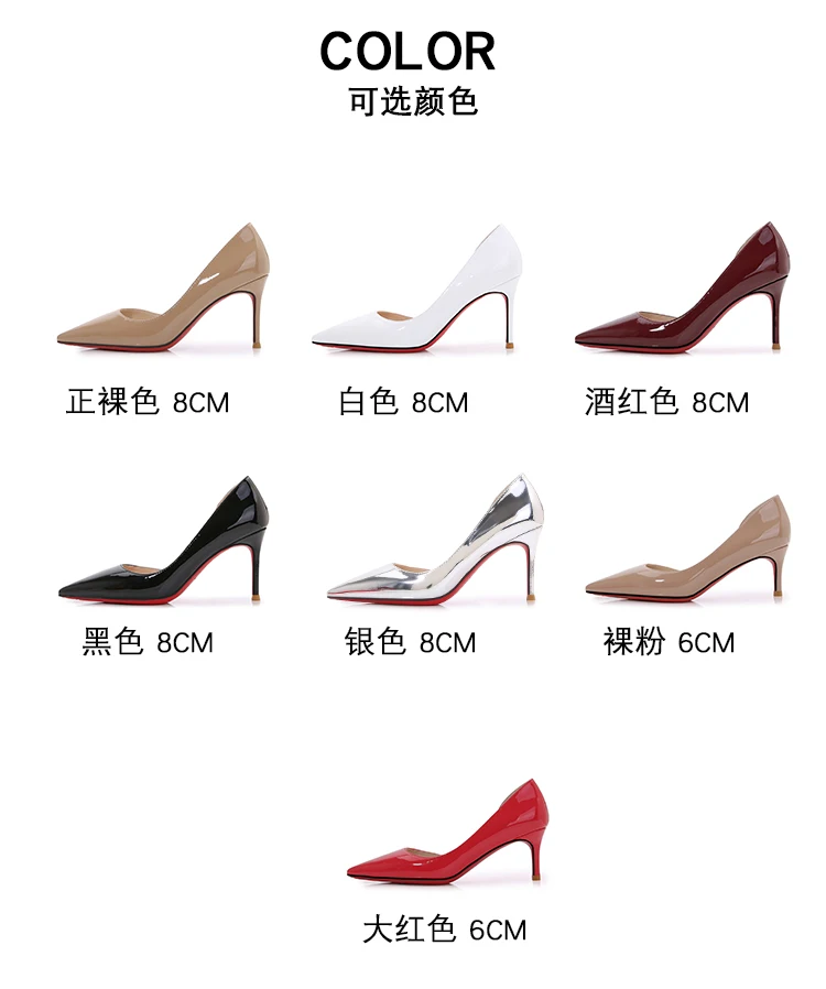 2024 Woman shoes luxury women’s shoes Brand Classics Pumps Red Bottoms Shiny High Heels Shoes Patent Leather Pointed Toe 10/12cm