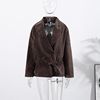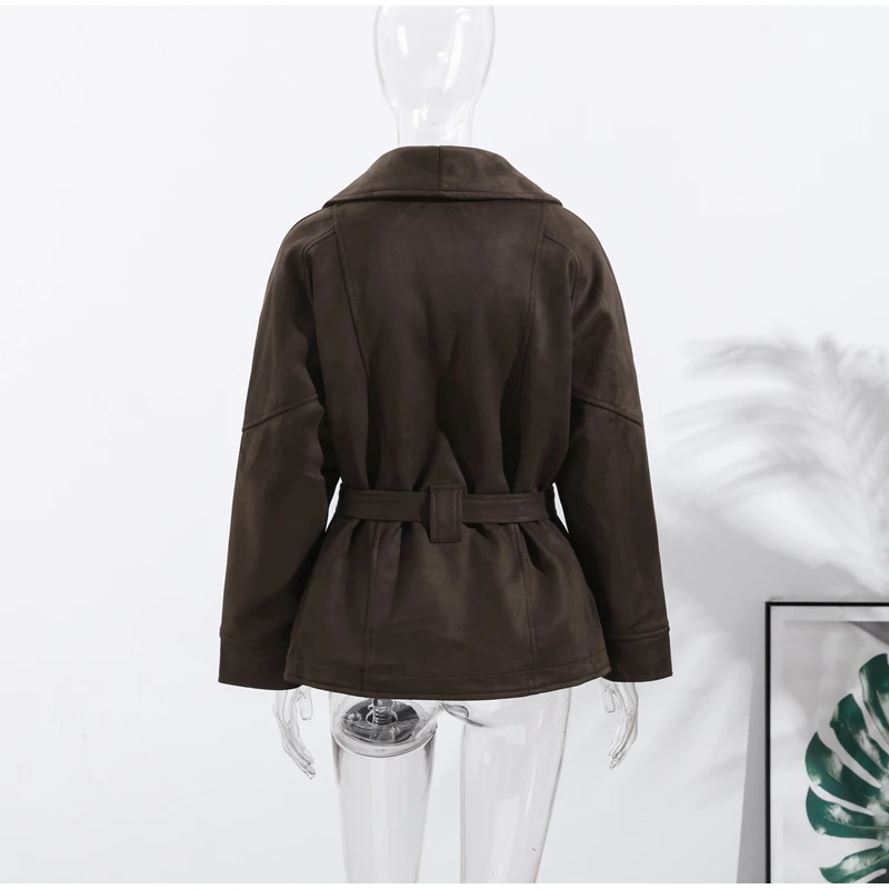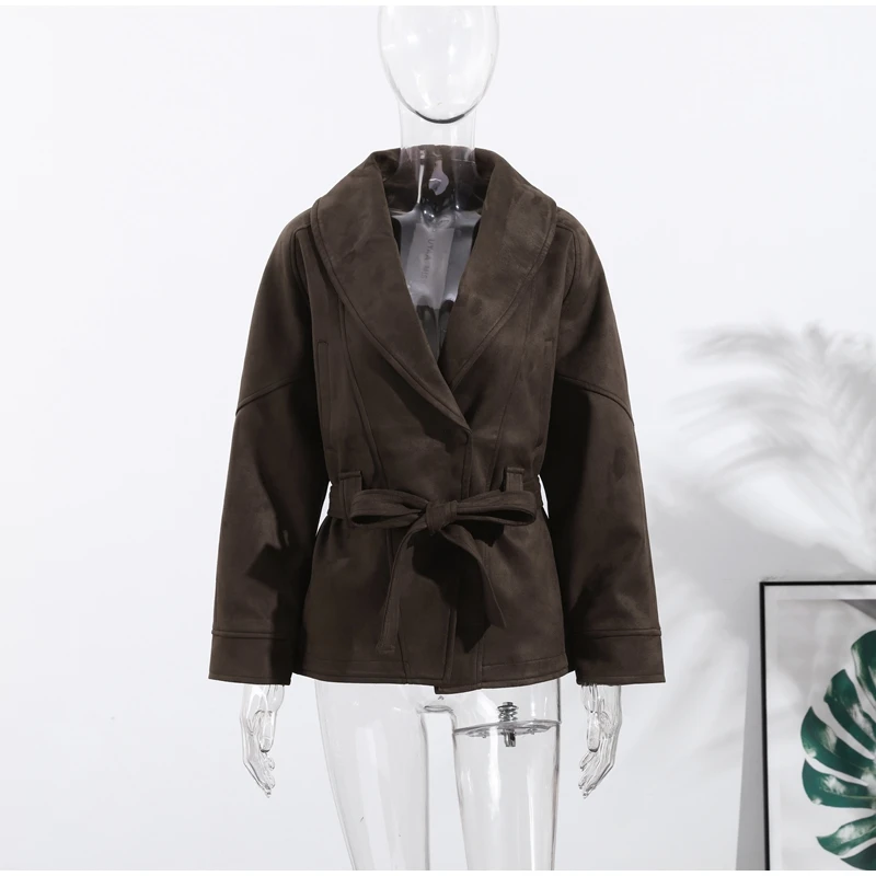 I like this brown jacket very much. It is very fashionable and street-like. It also has a belt design, which can modify your body shape. It is of good quality and the size is right. I recommend you to buy it.