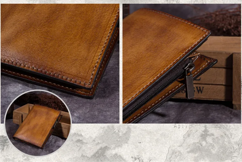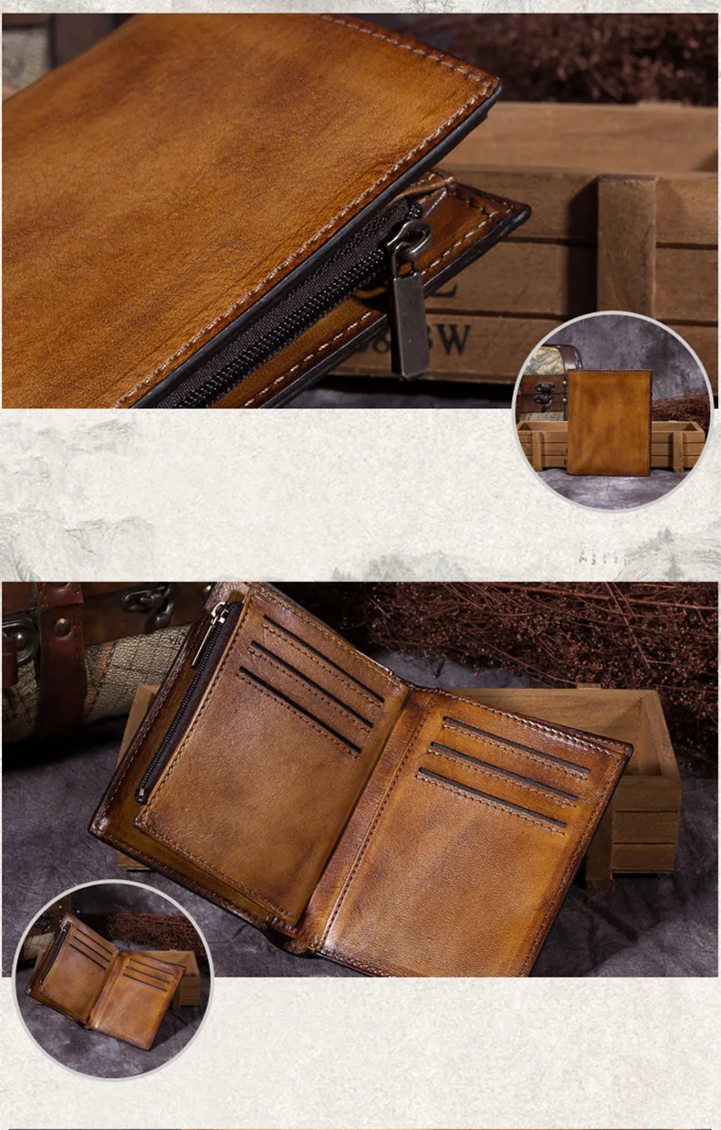 2025 Genuine Leather Mini Purse Men’s Wallet First Layer Cowhide Male Retro Card Holder Short Korean Version Zipper Thin Wallets