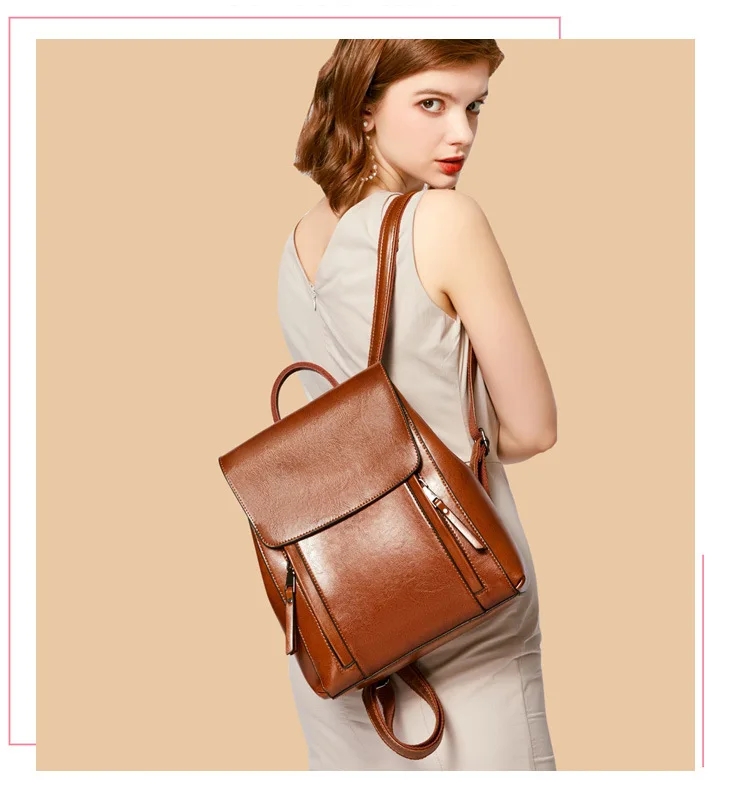 2025 Genuine Leather Women’s backpack Fashion Cowhide Shoulder Bag Female College style high quality ladies backpacks
