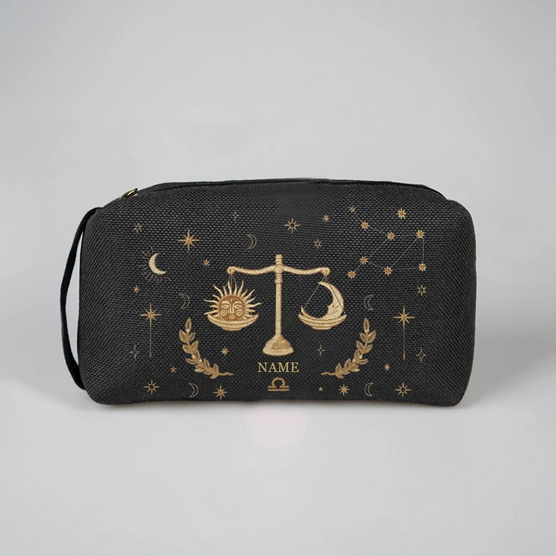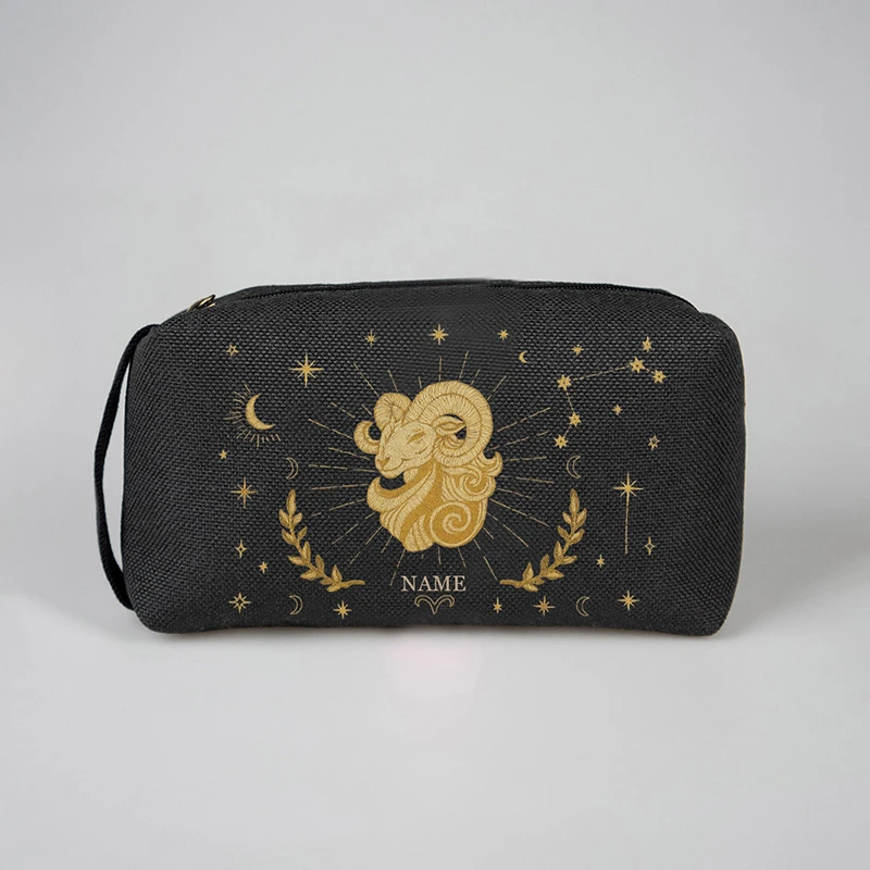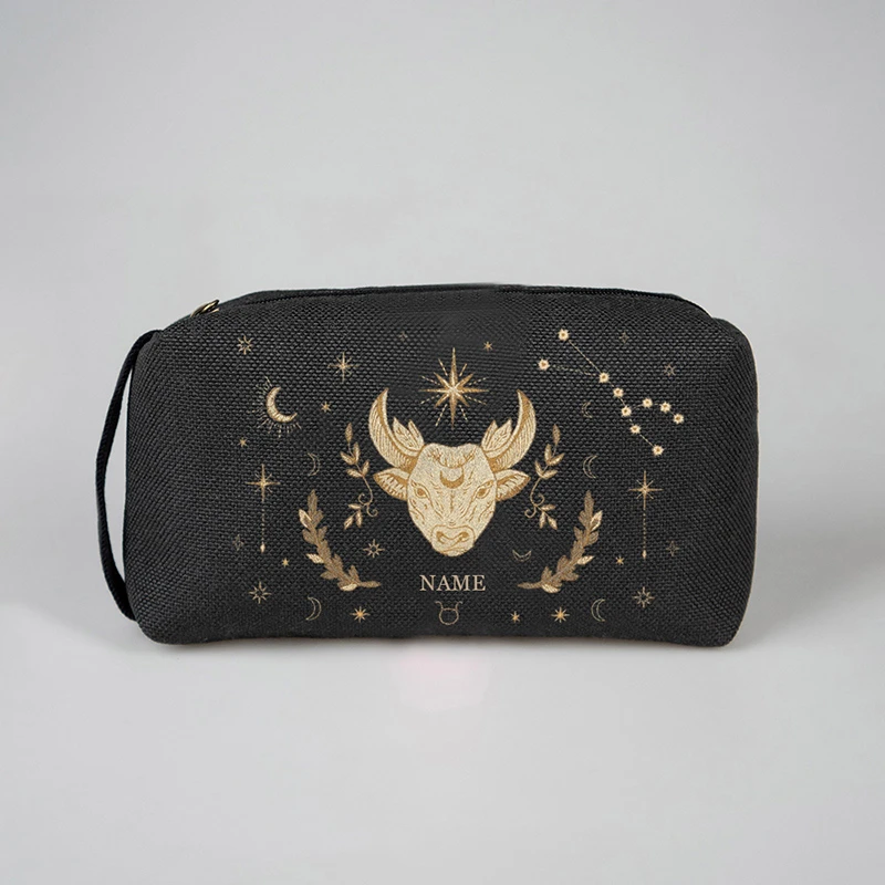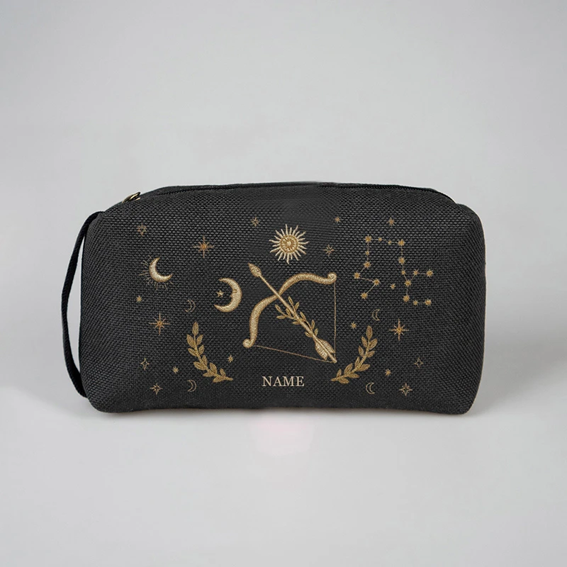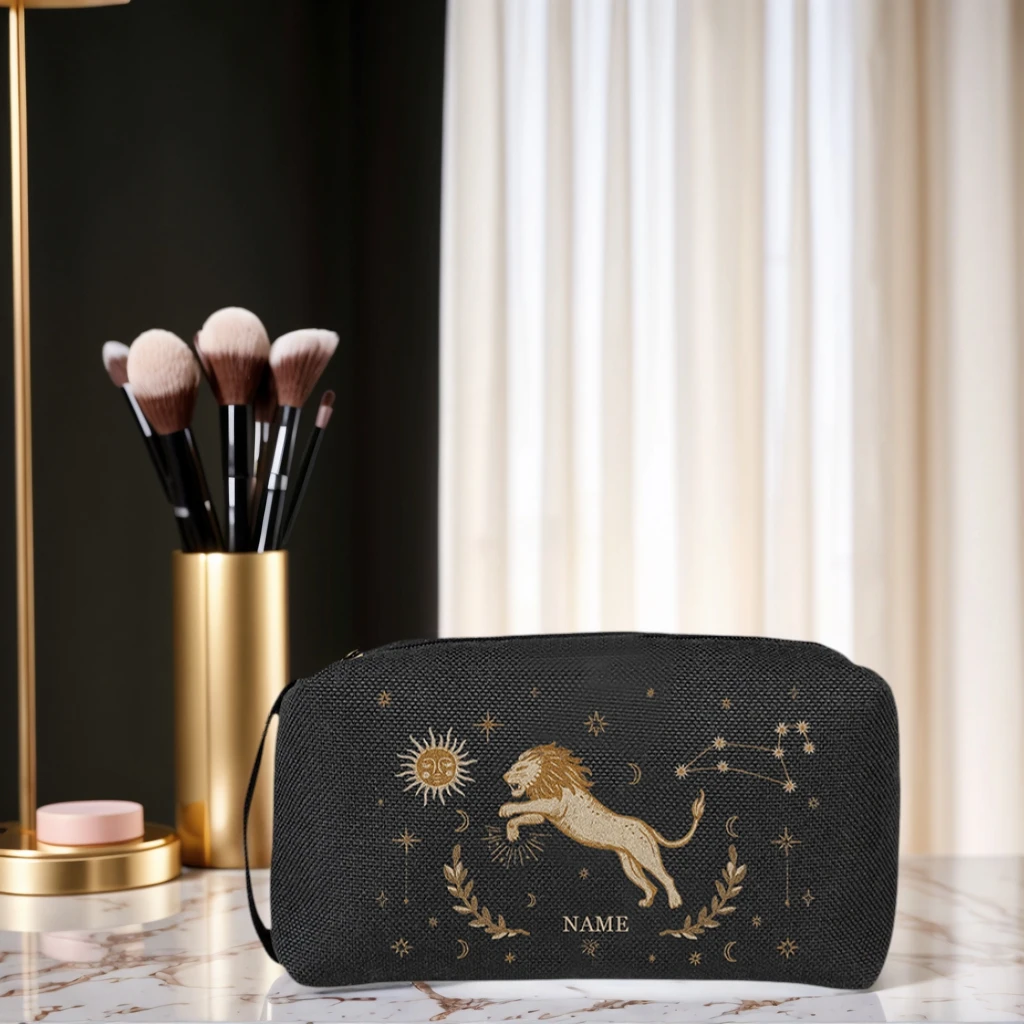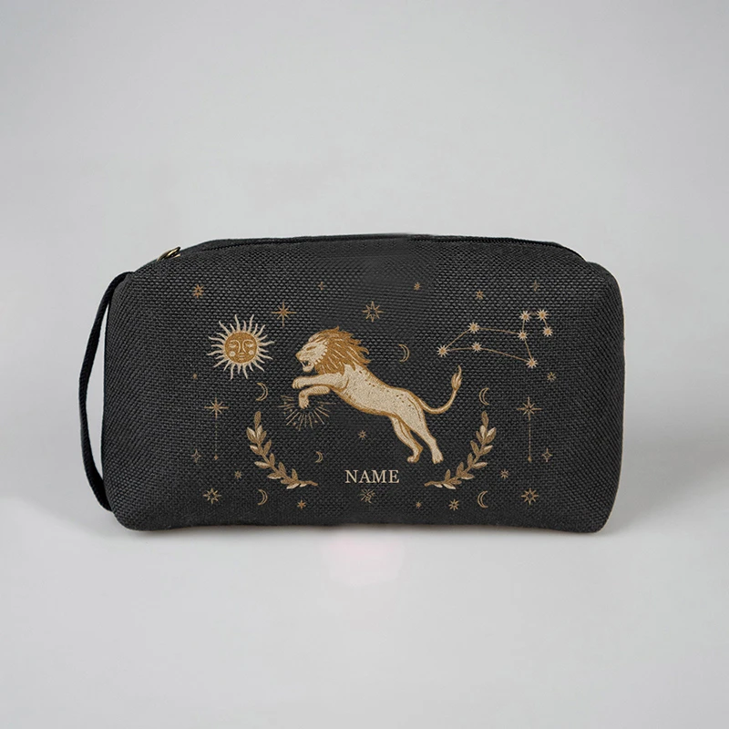2025 Linen Fabric Large Capacity Customizable Letter Storage Bag Leo Constellation Printed Pattern,girl Makeup Bag Birthday Gift