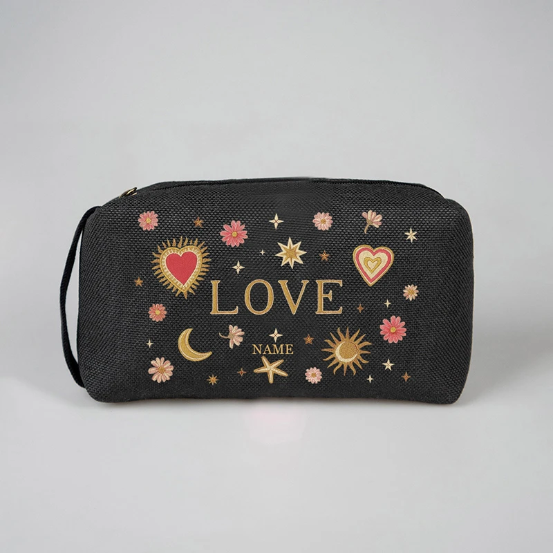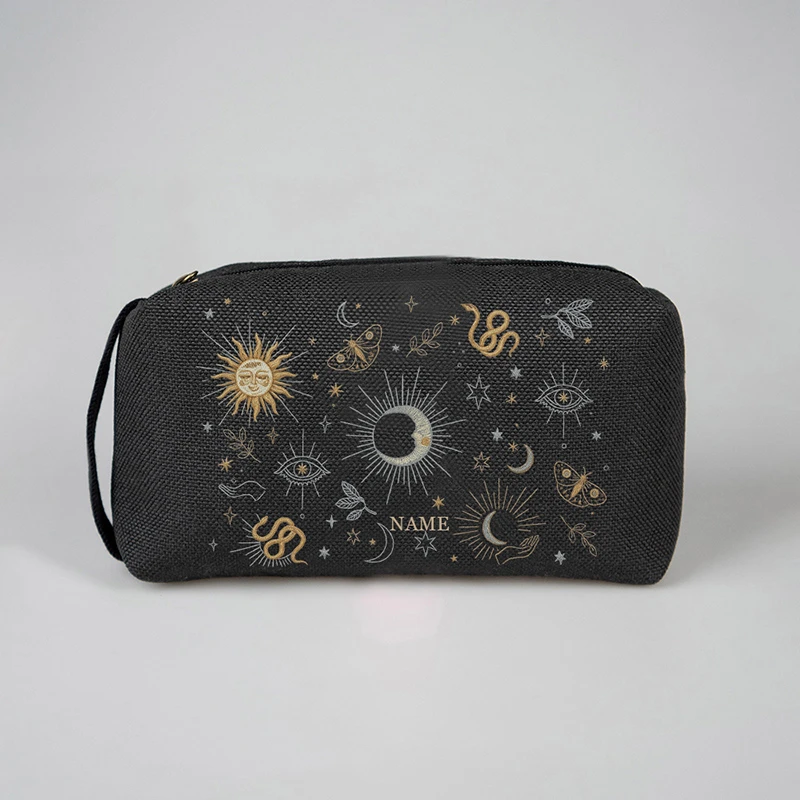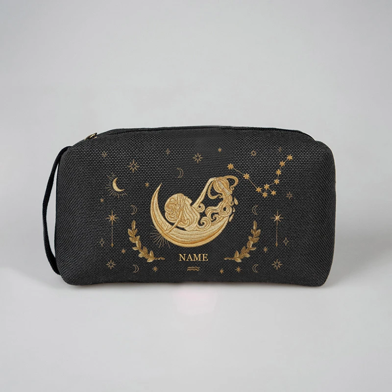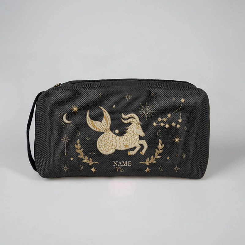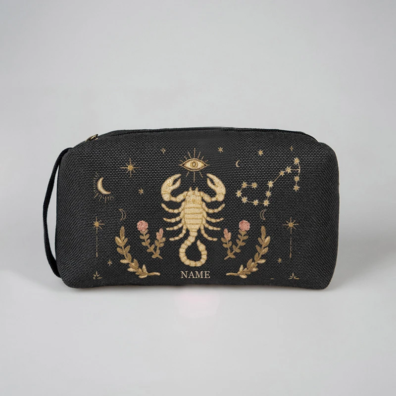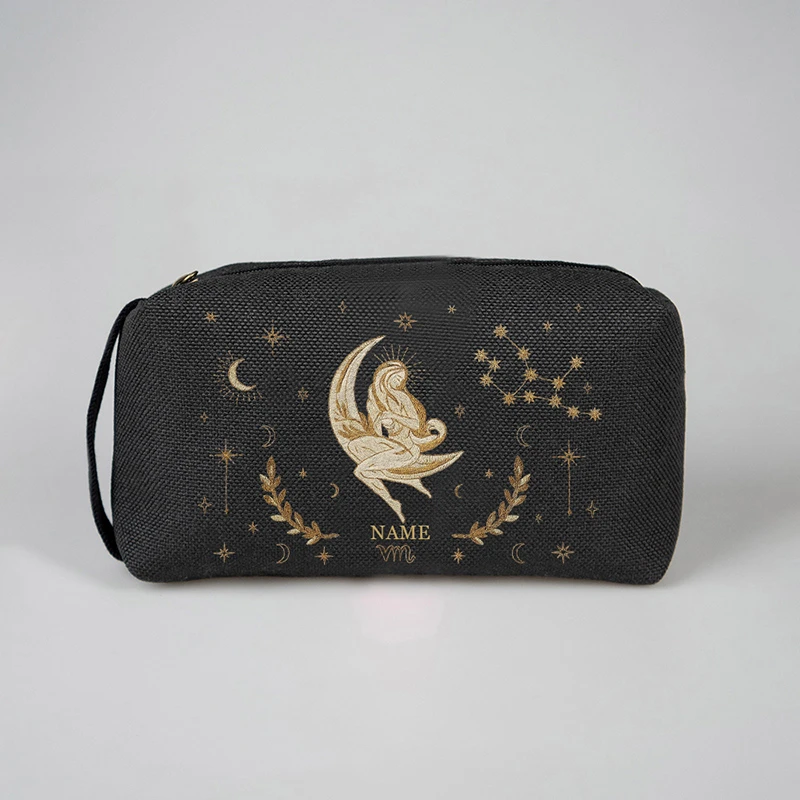 2025 Linen Fabric Large Capacity Customizable Letter Storage Bag Leo Constellation Printed Pattern,girl Makeup Bag Birthday Gift