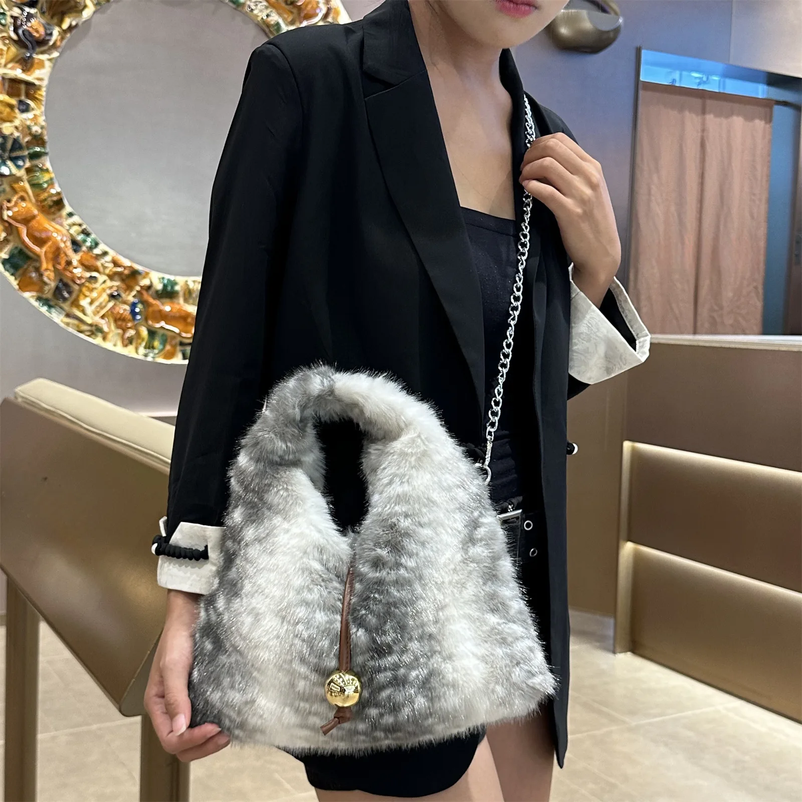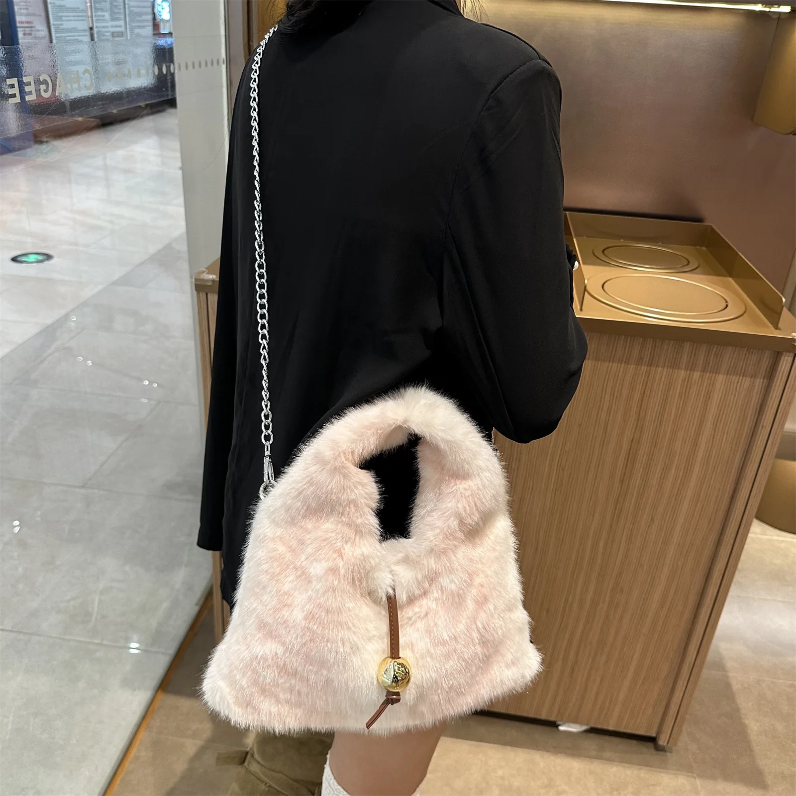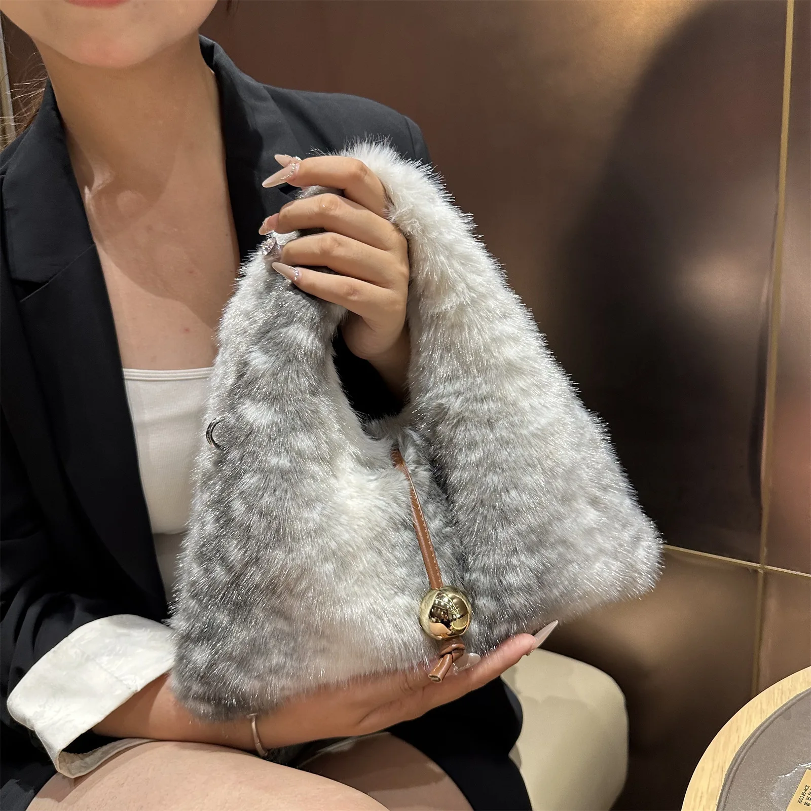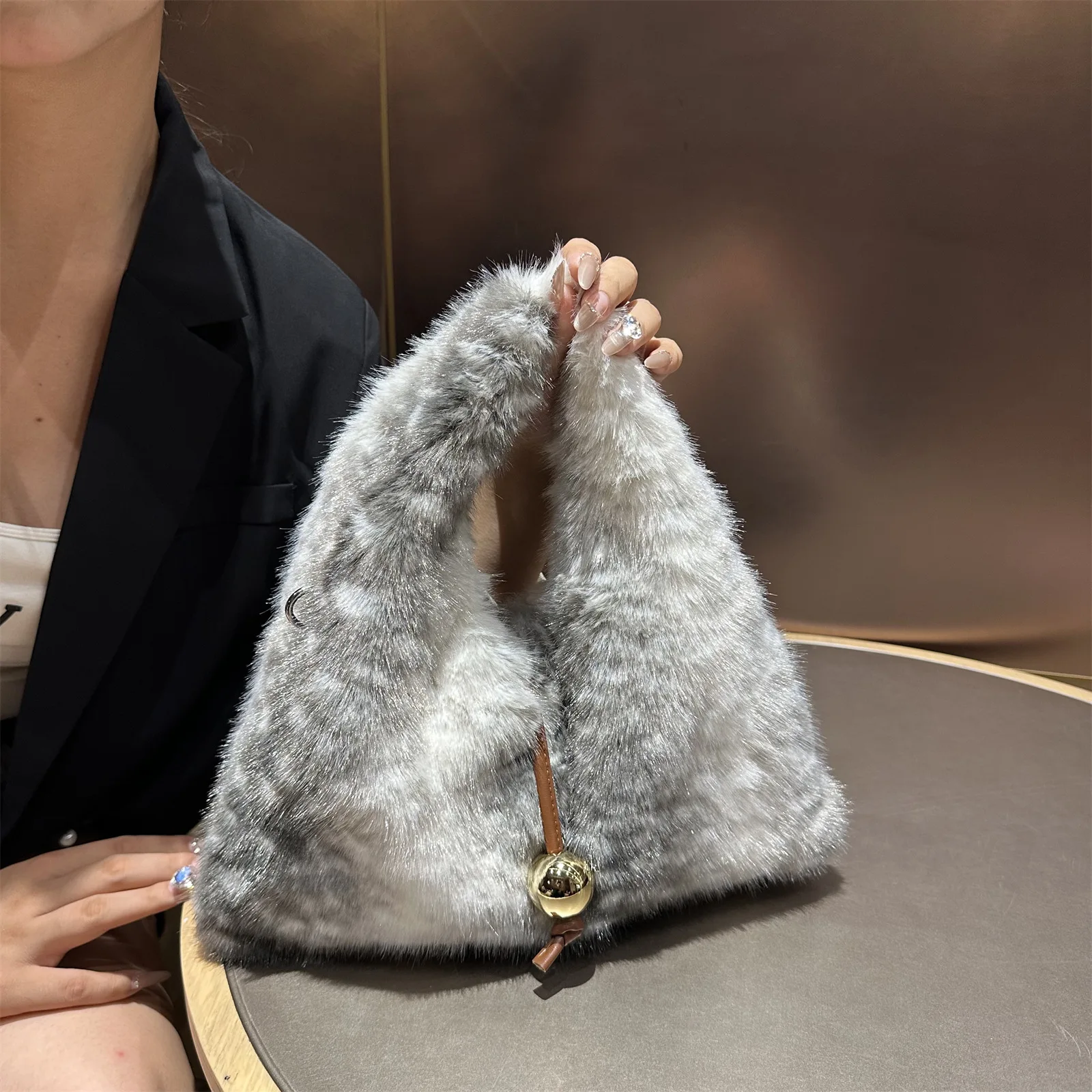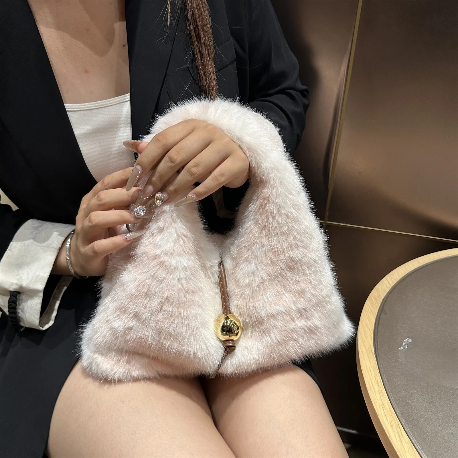 2025 Luxury New Design Women’s Faux Fur Handbag Winter Soft Warm Bag Girls Fluffy Large Capacity Tote Bag High Quality Fur Purse