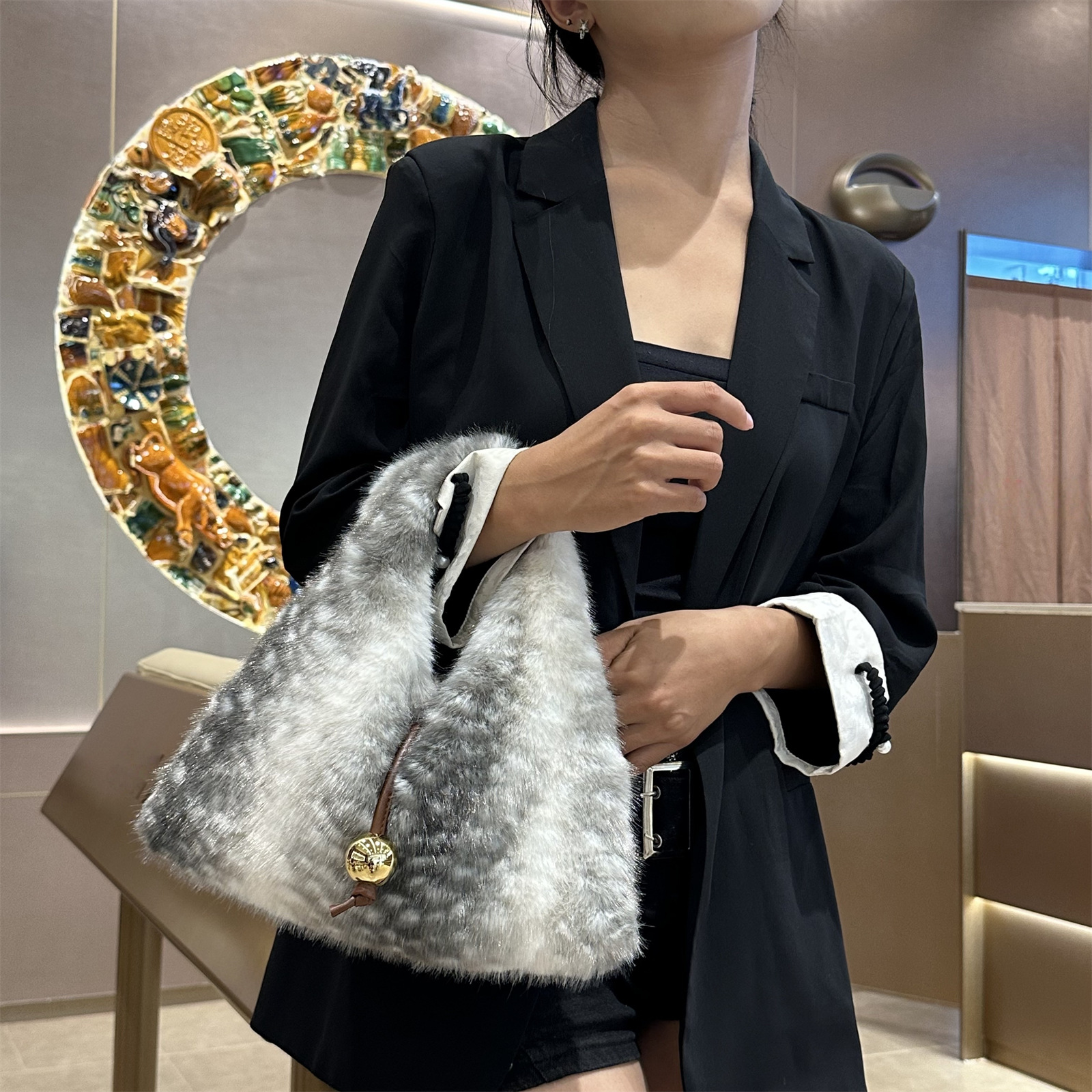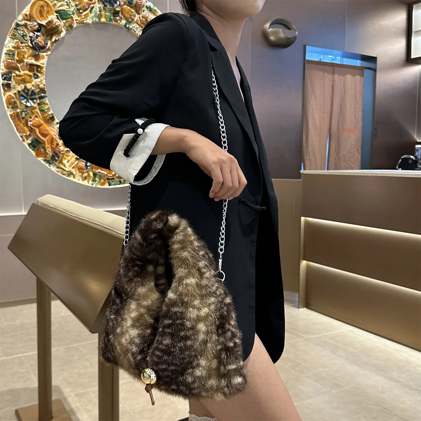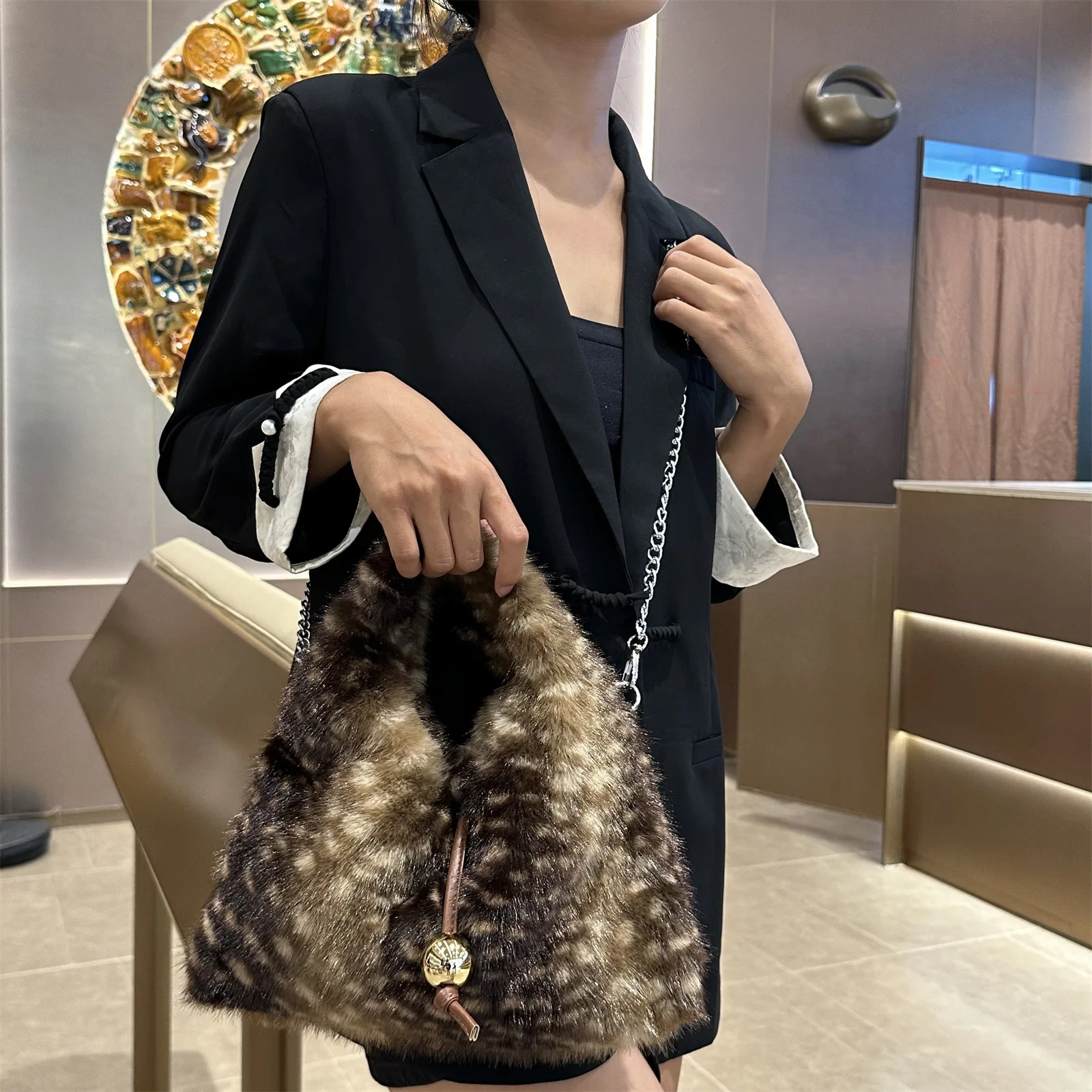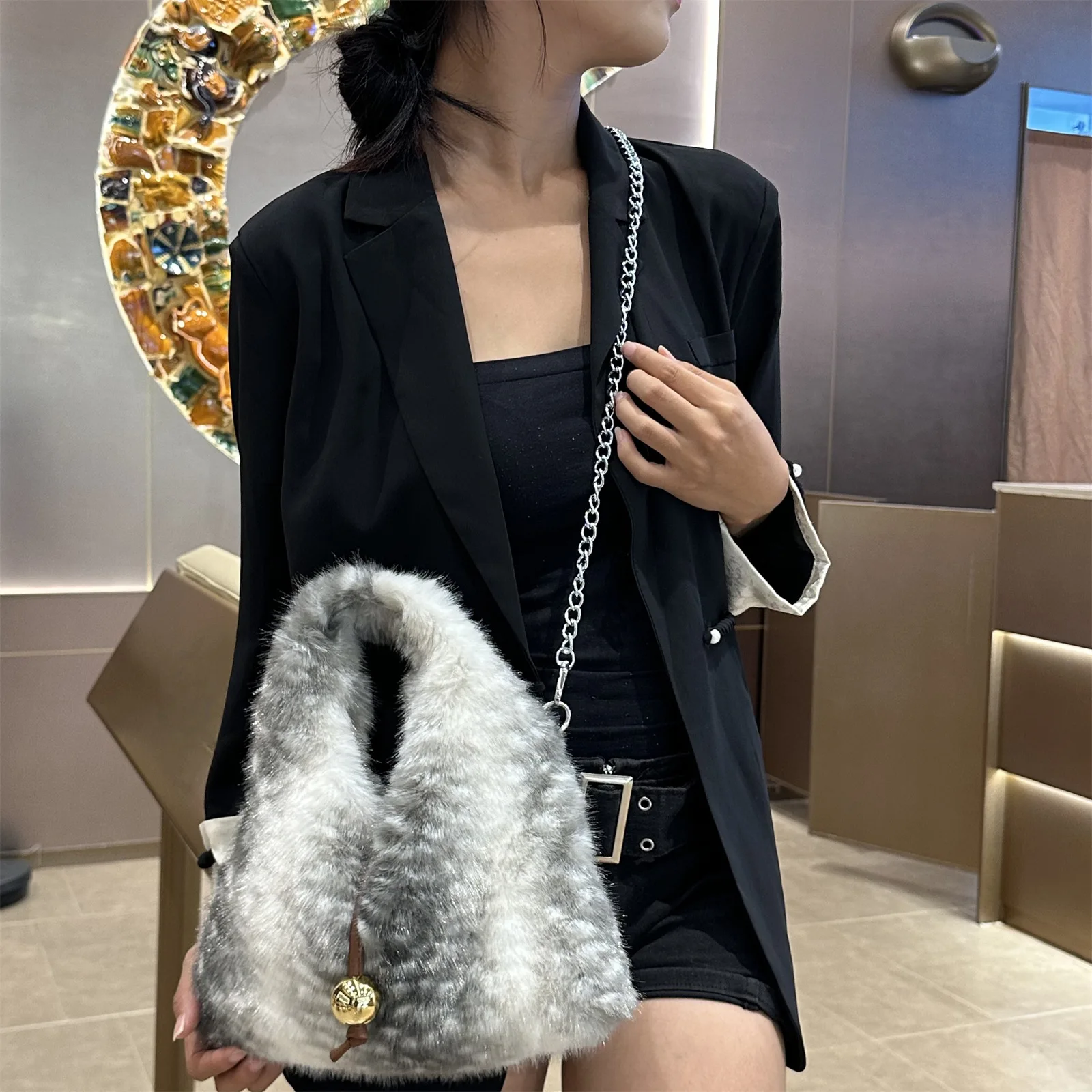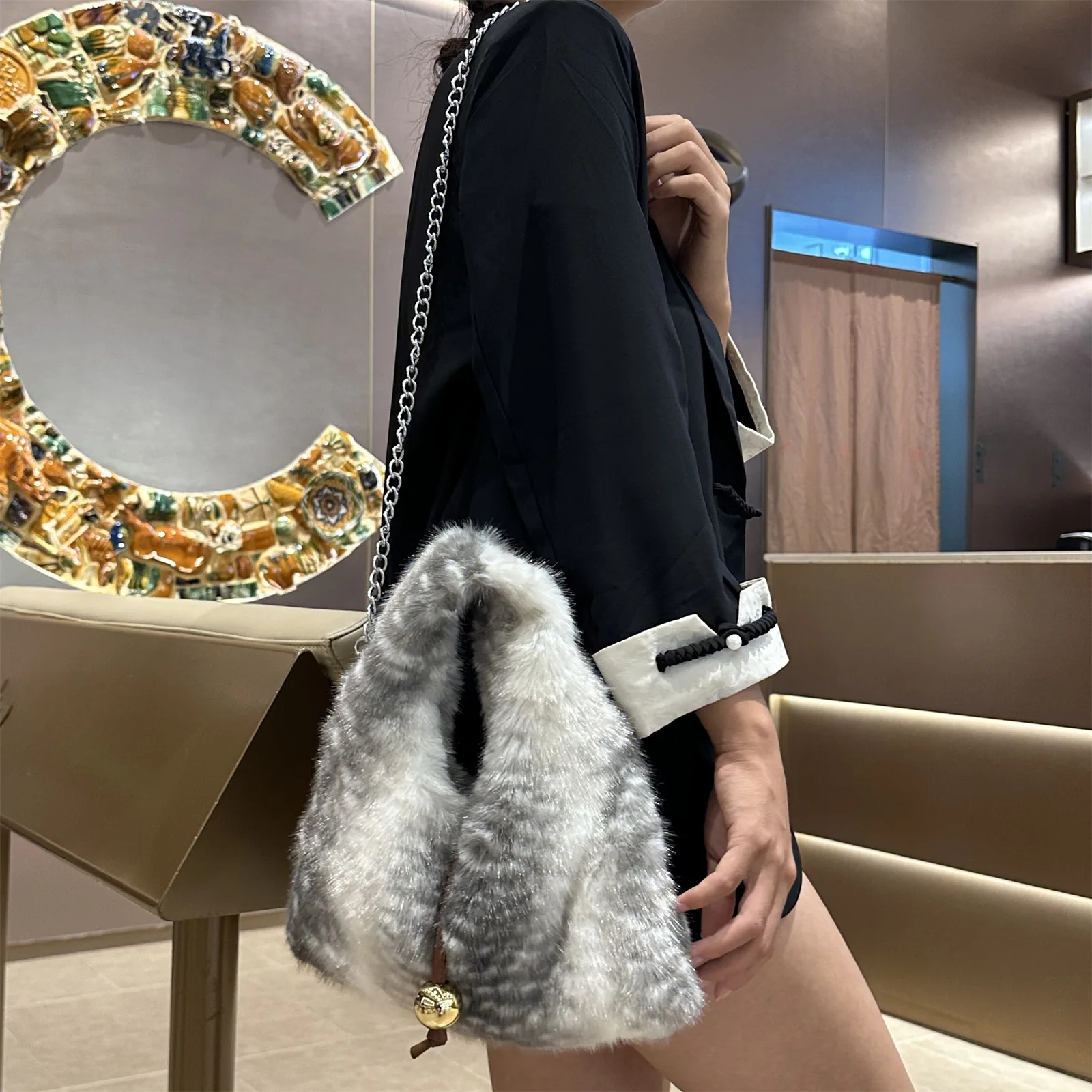 2025 Luxury New Design Women’s Faux Fur Handbag Winter Soft Warm Bag Girls Fluffy Large Capacity Tote Bag High Quality Fur Purse
