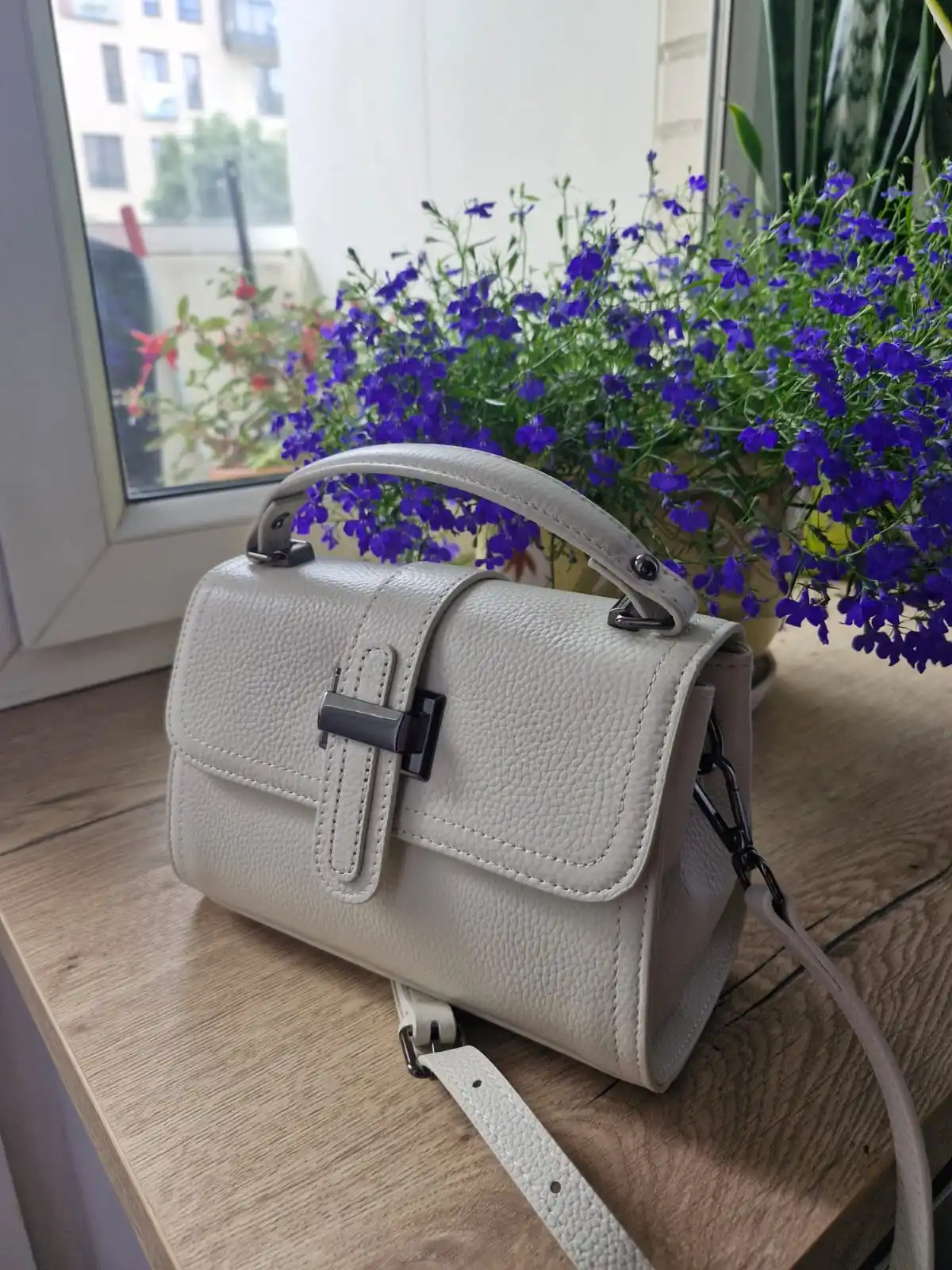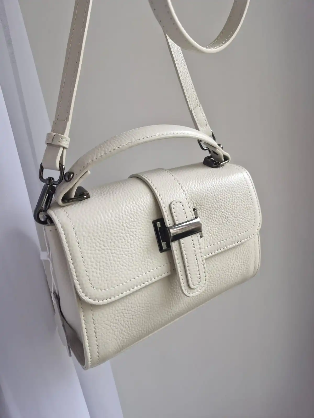 The bag is wonderful! Leather, hardware, everything is excellent. In hands, it feels like a valuable item. The fabric belt is a bit short and simple, but the leather one is excellent. Thanks to the seller