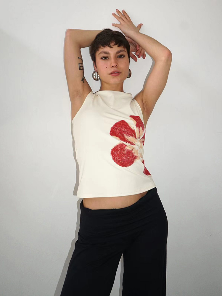 2025 New Fashion Women’s Crop Tank Tops Fitted Flower Print Boat Neck Sleeveless Summer Tops for Party Club