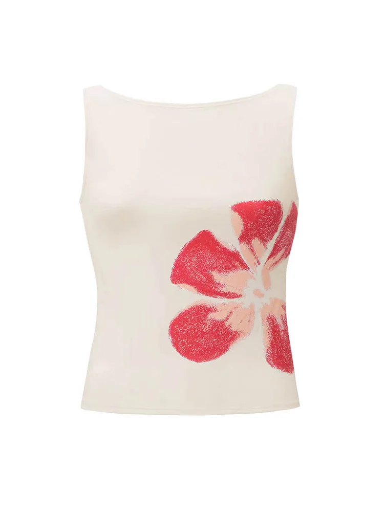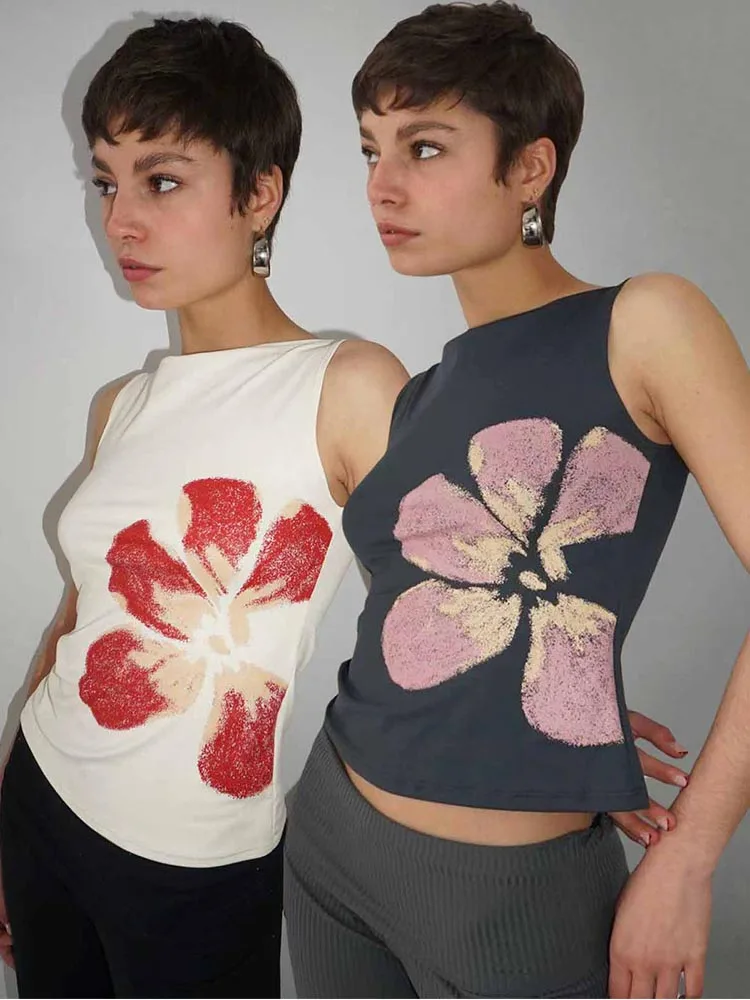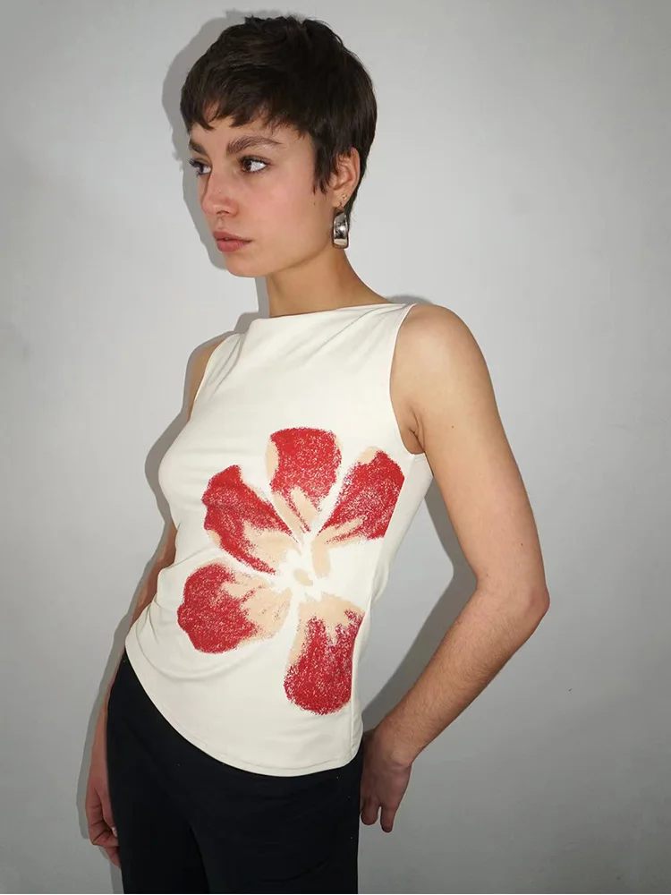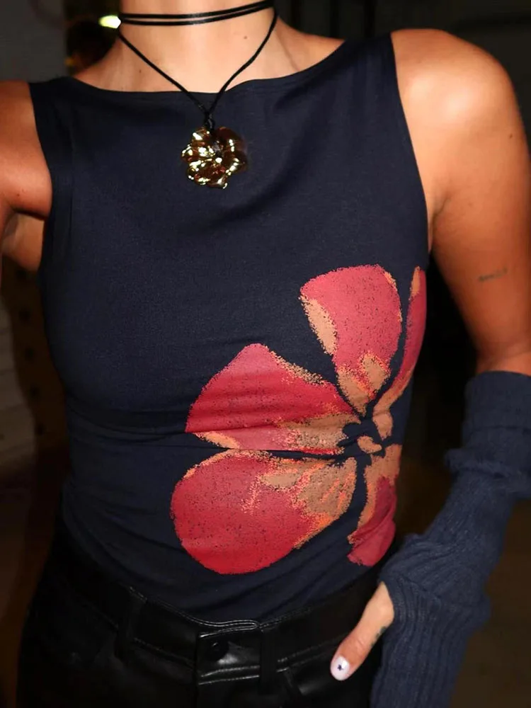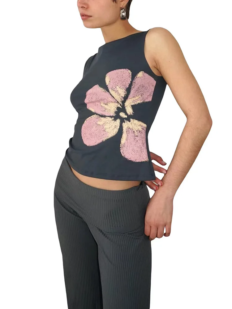 2025 New Fashion Women’s Crop Tank Tops Fitted Flower Print Boat Neck Sleeveless Summer Tops for Party Club