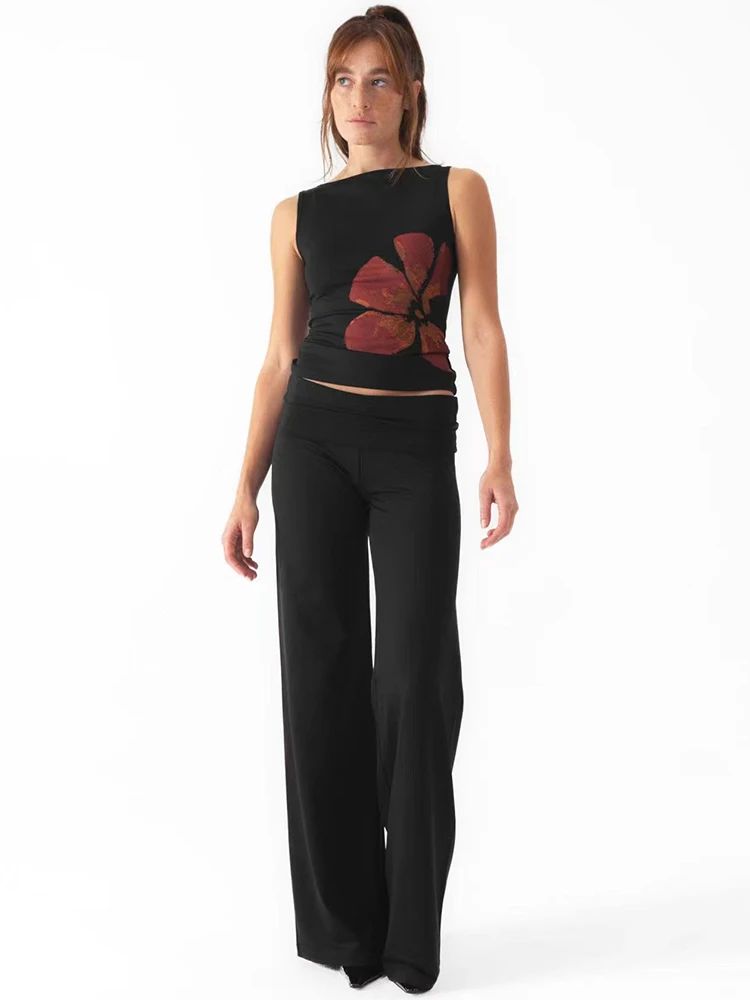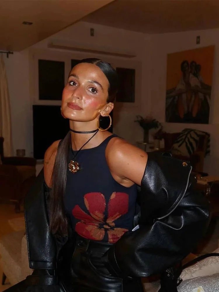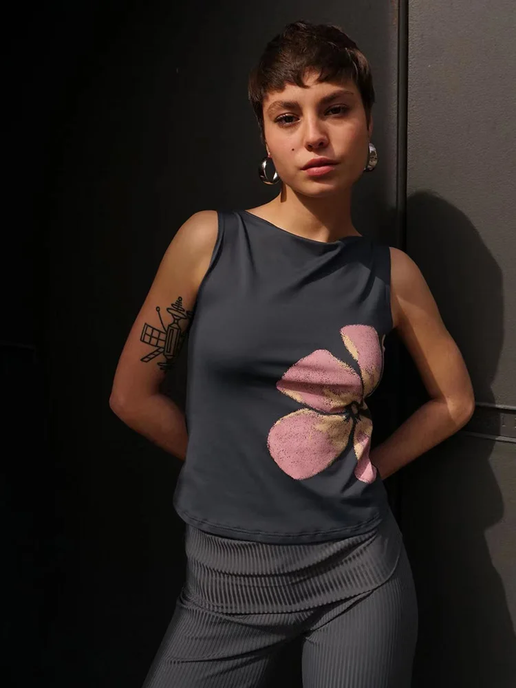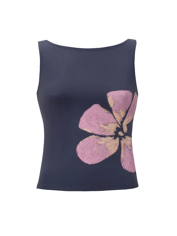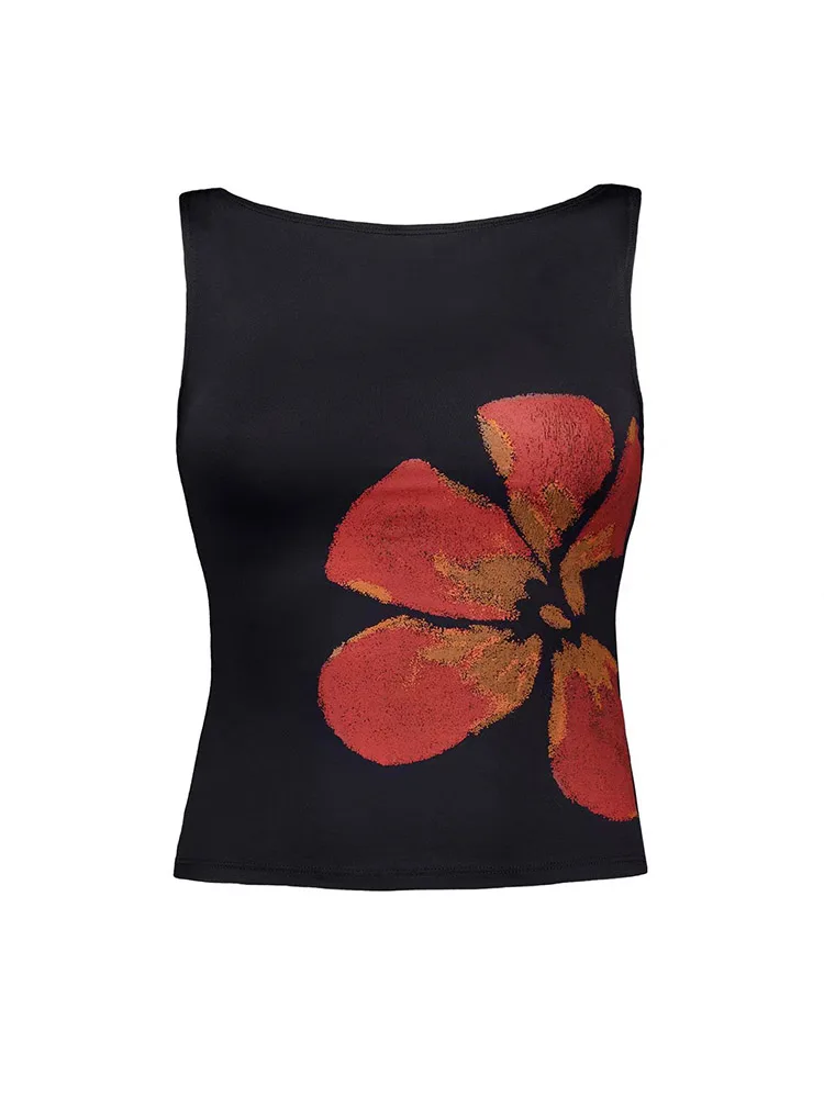 2025 New Fashion Women’s Crop Tank Tops Fitted Flower Print Boat Neck Sleeveless Summer Tops for Party Club