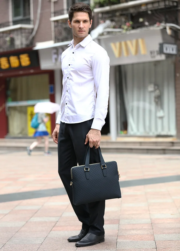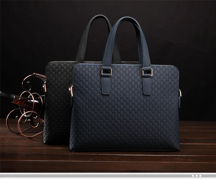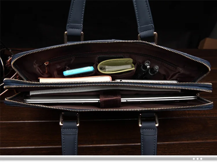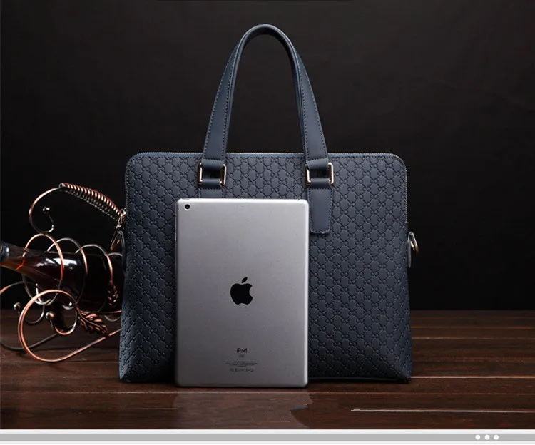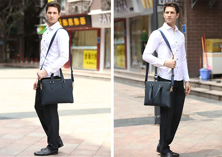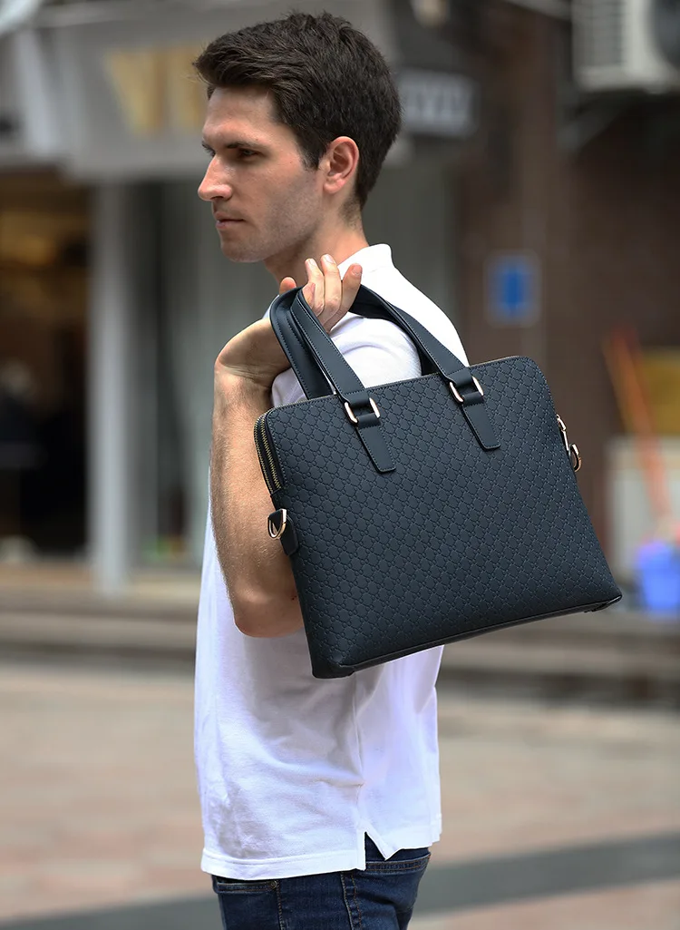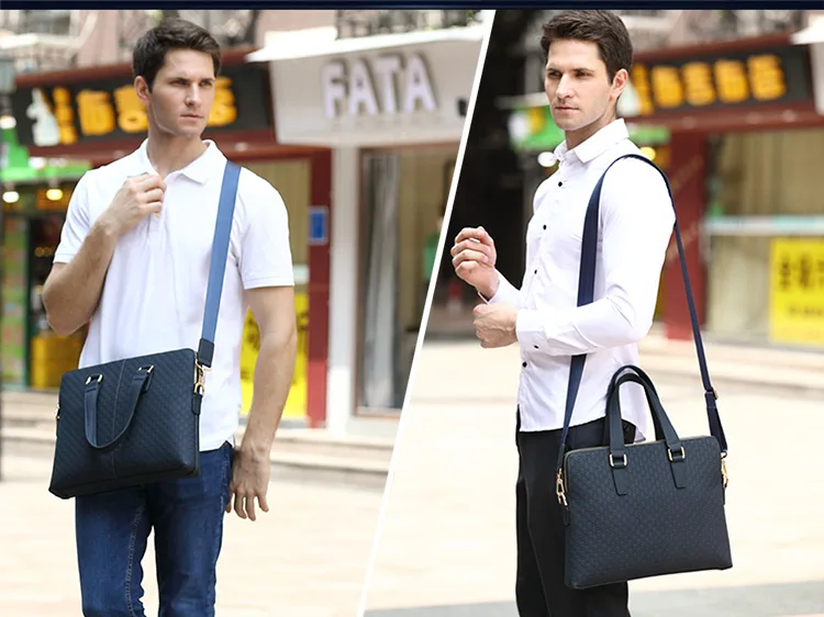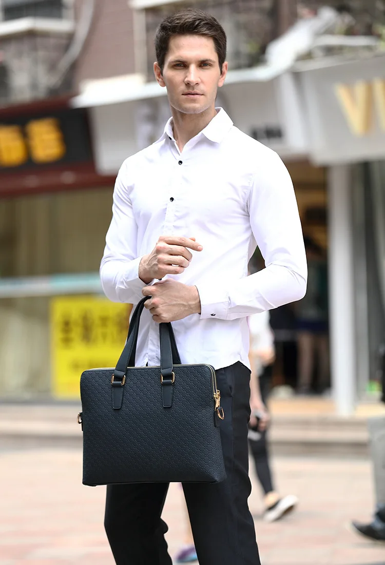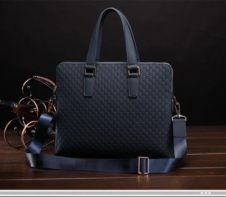 2025 New Genuine Leather Men Women Handbags Business Briefcase Ladies Shoulder Diagonal Blue/Black 14″ Laptop Bag Messenger Bags