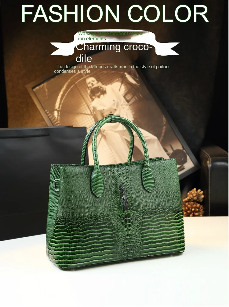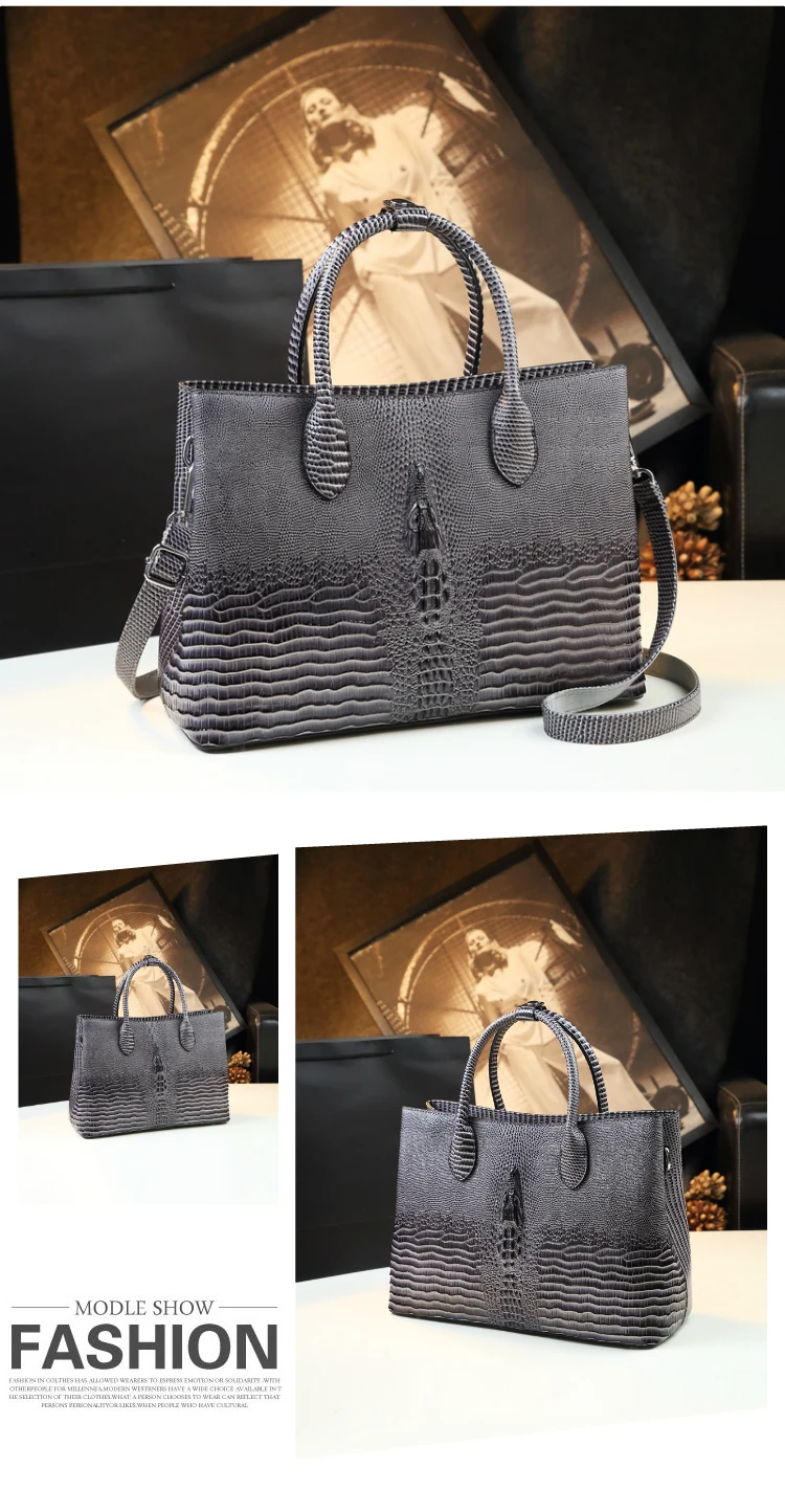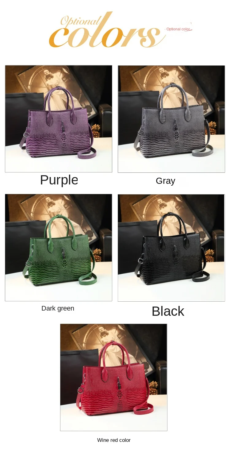 2025 New Genuine Leather Women’s Handbags Fashion Crocodile Pattern Shoulder Messenger Bag Middle-Aged Mother Big Tote Bags