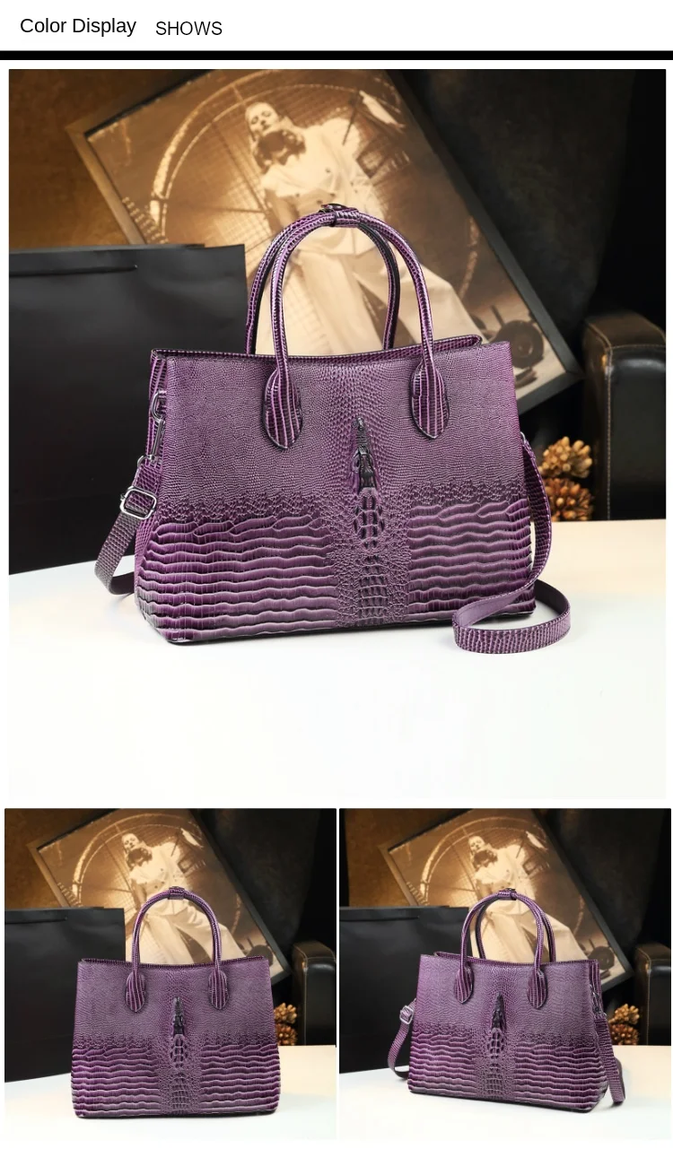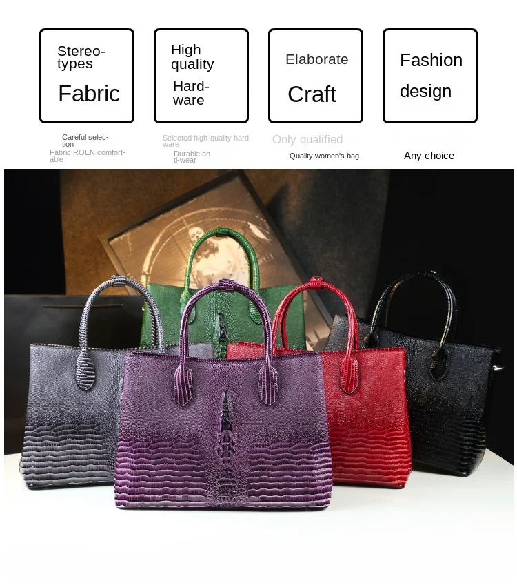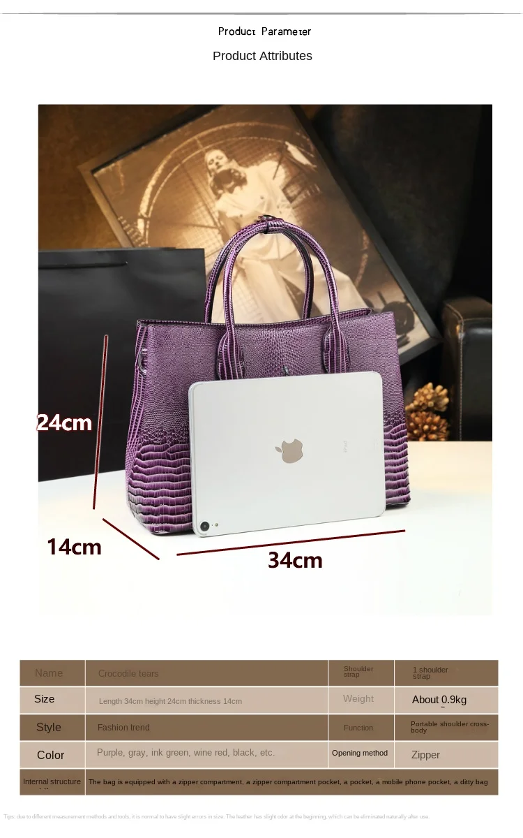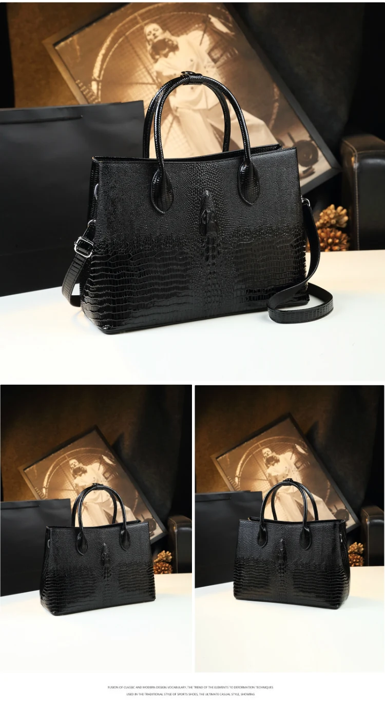 2025 New Genuine Leather Women’s Handbags Fashion Crocodile Pattern Shoulder Messenger Bag Middle-Aged Mother Big Tote Bags