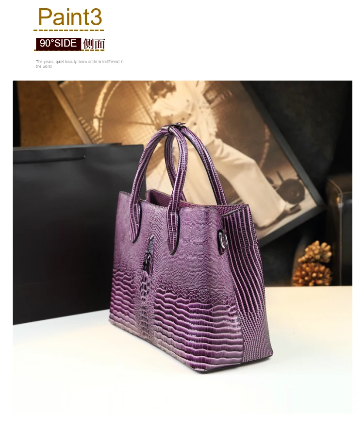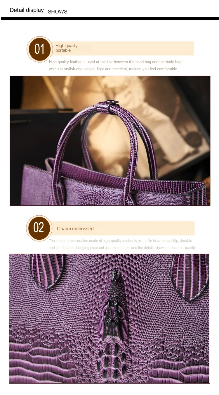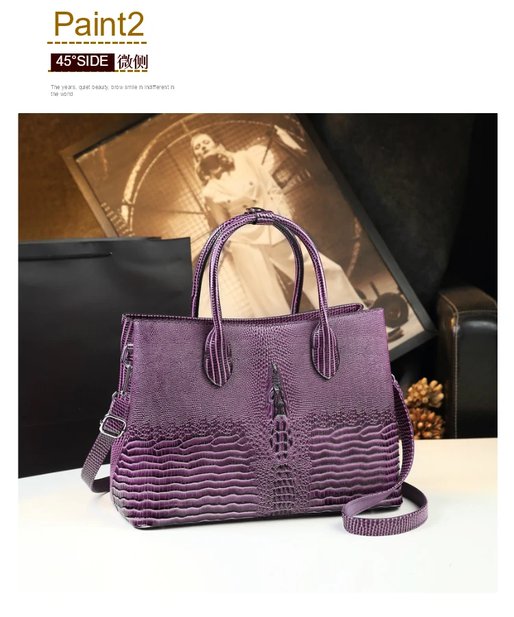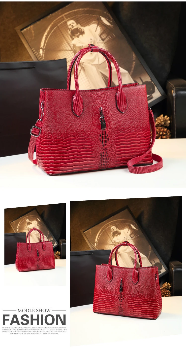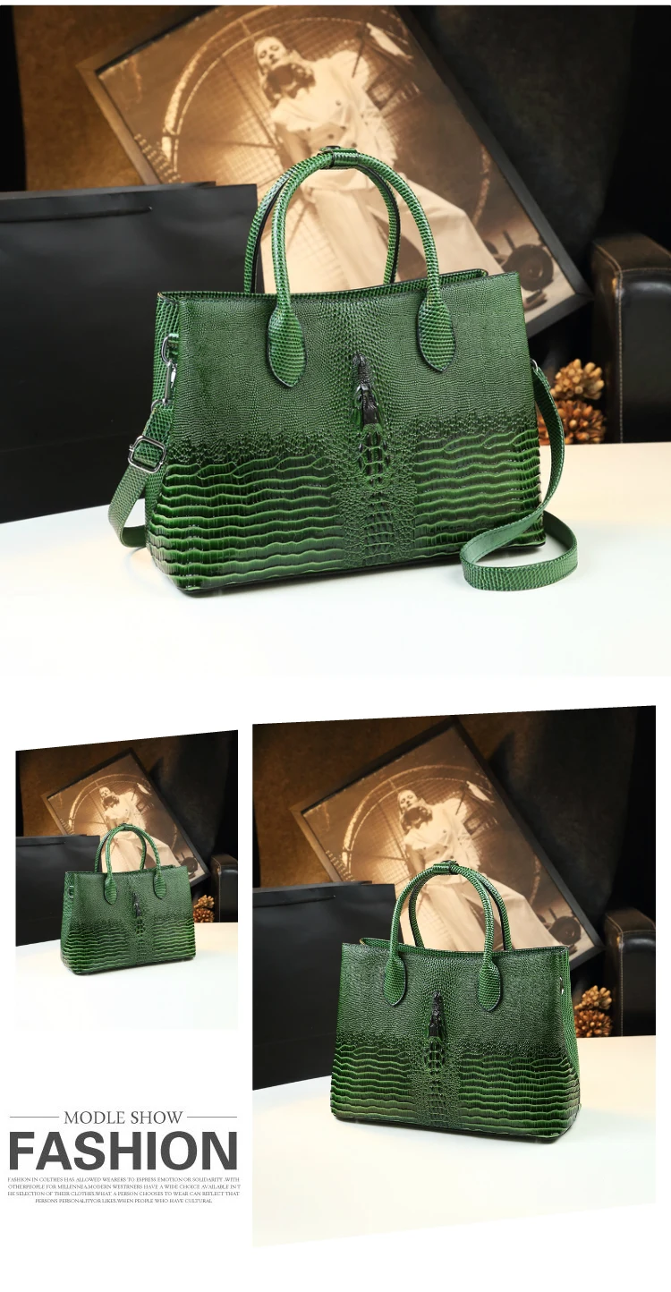 New Genuine Leather Women’s Handbags Fashion Crocodile Pattern Female Shoulder Messenger Bag Middle-Aged Mother Big Tote Bags
