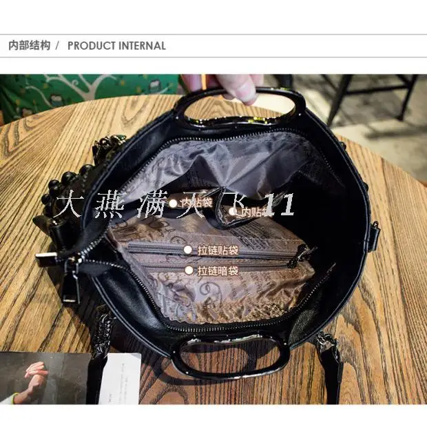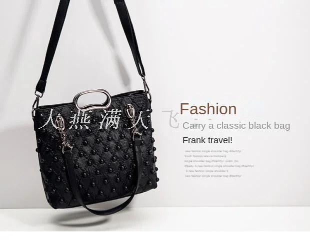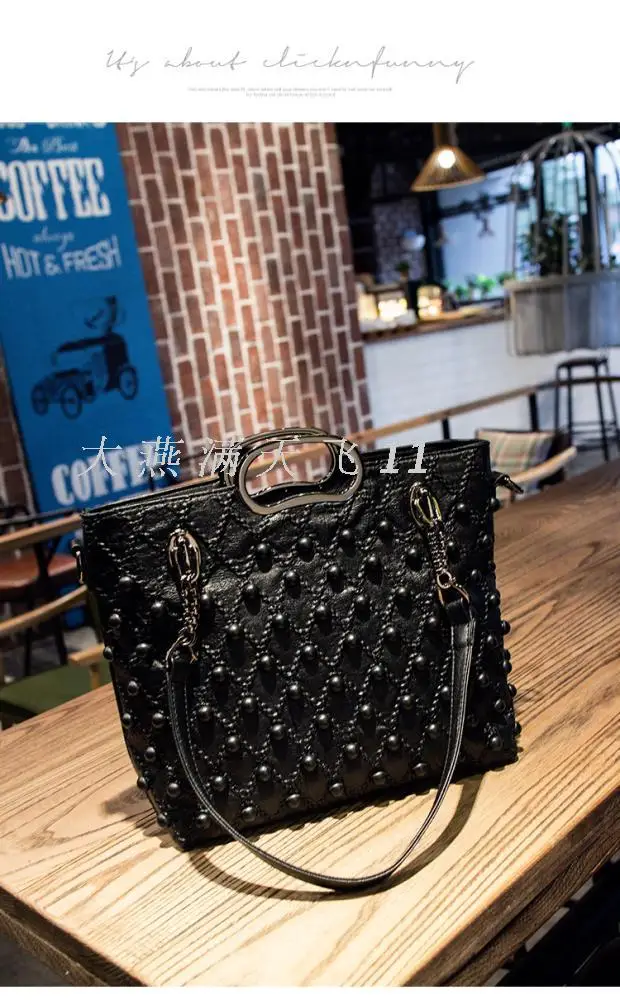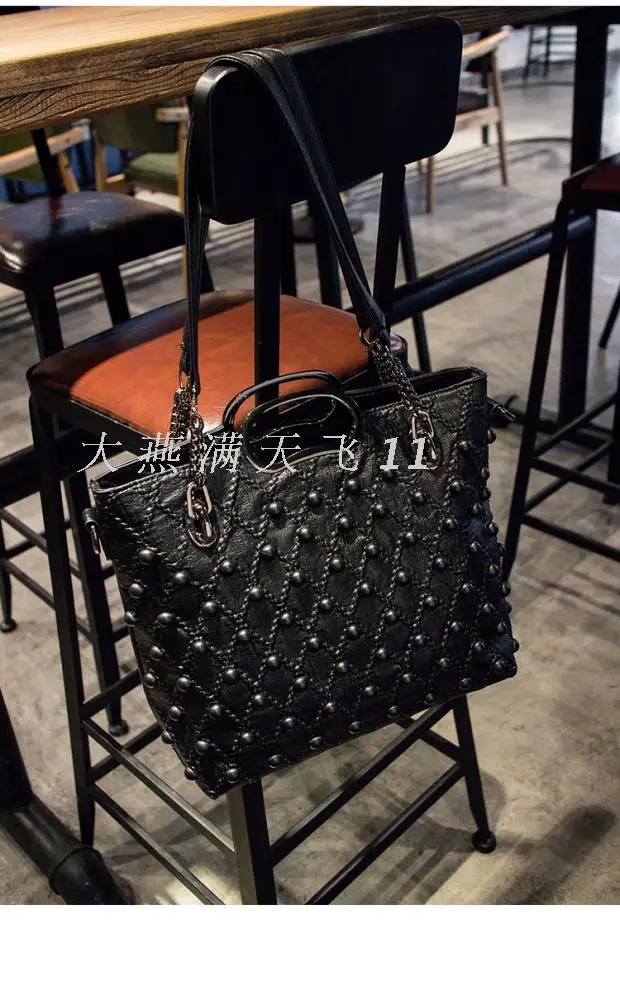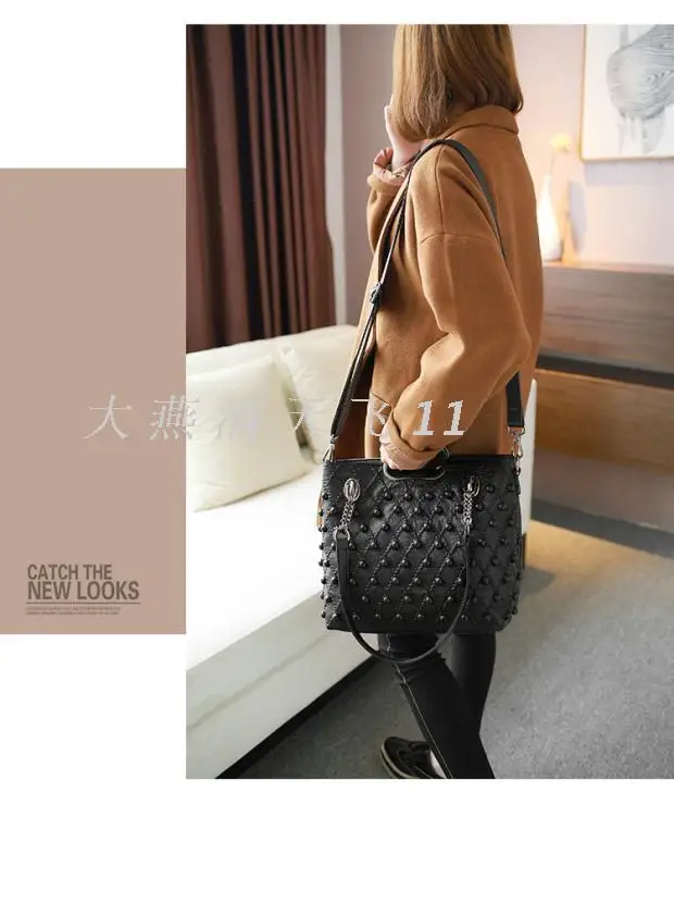 Women’s bag 2017 new Korean style fashion soft leather sheepskin handbag shoulder messenger bag large capacity Women’s rivet bag