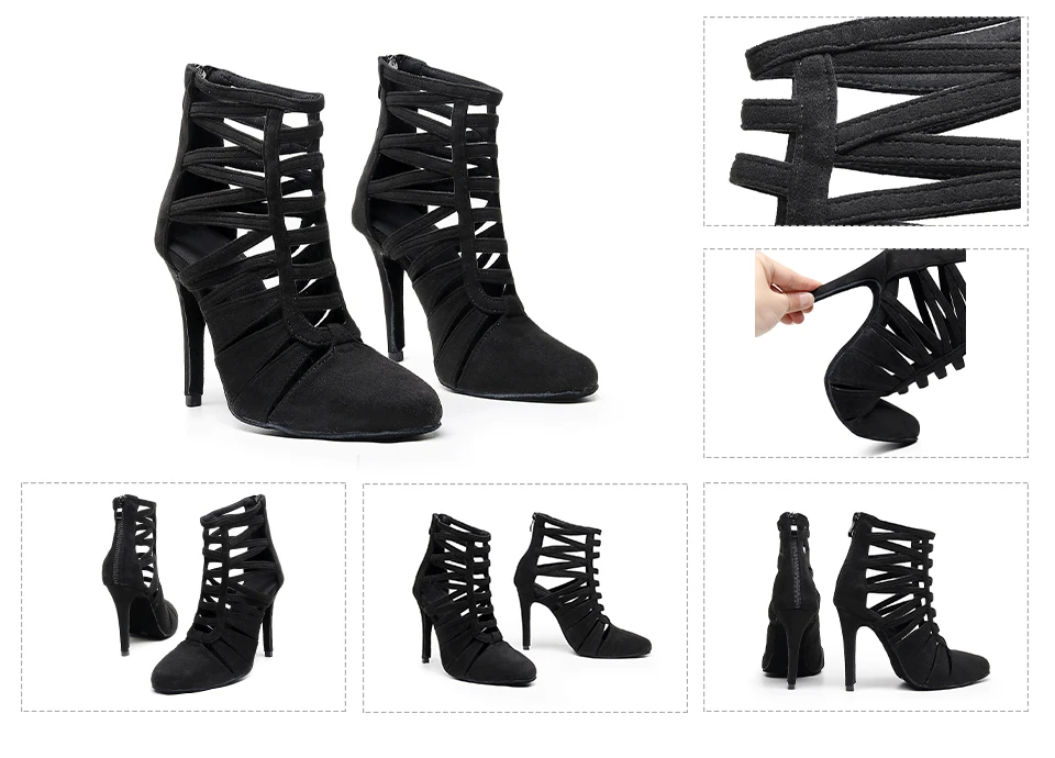 2025 New Sexy Women Black Dance Boots High Heels close toe Boots soft sole Girls Dance hall Women Dancing Shoes Sexy Stilettos