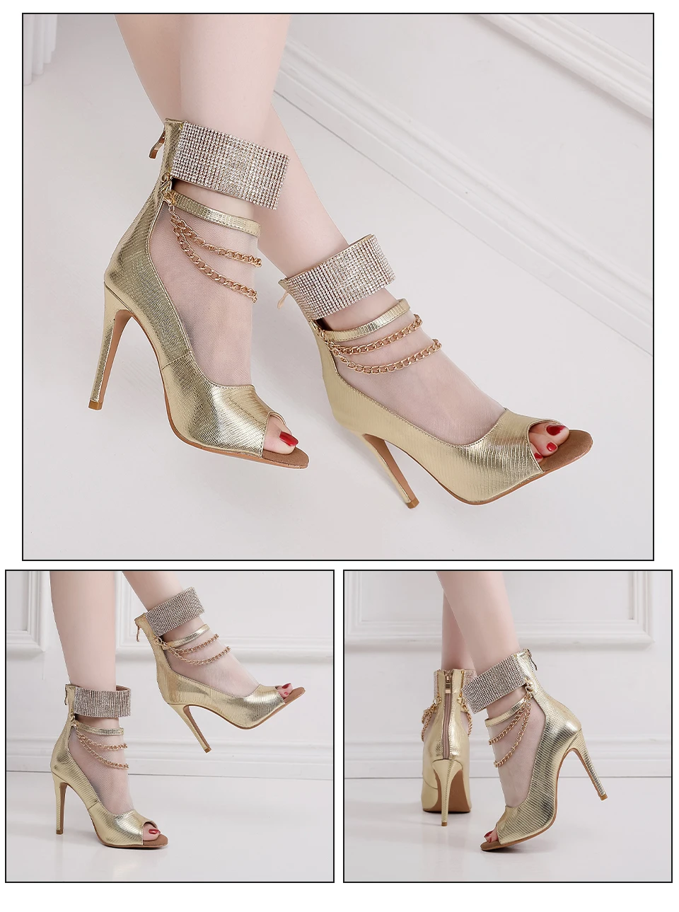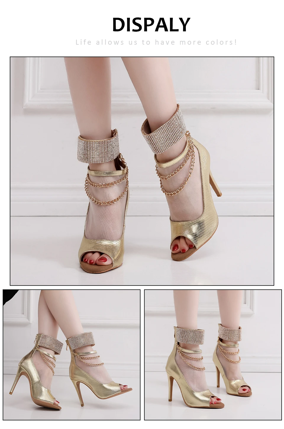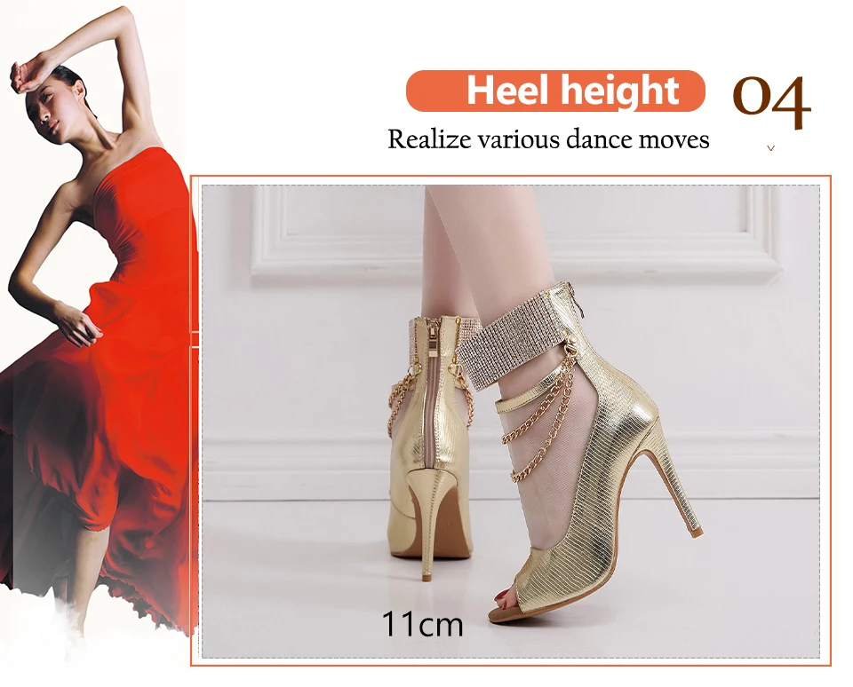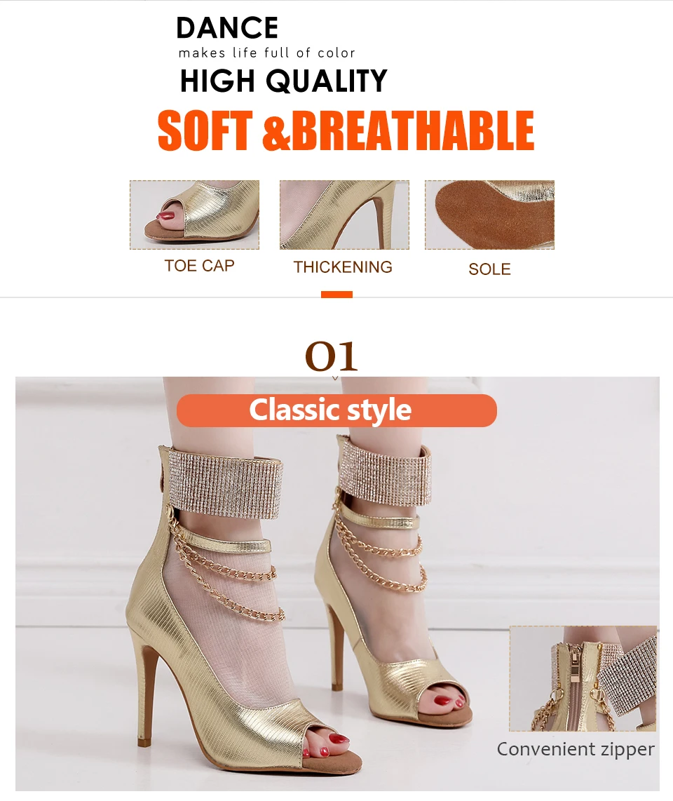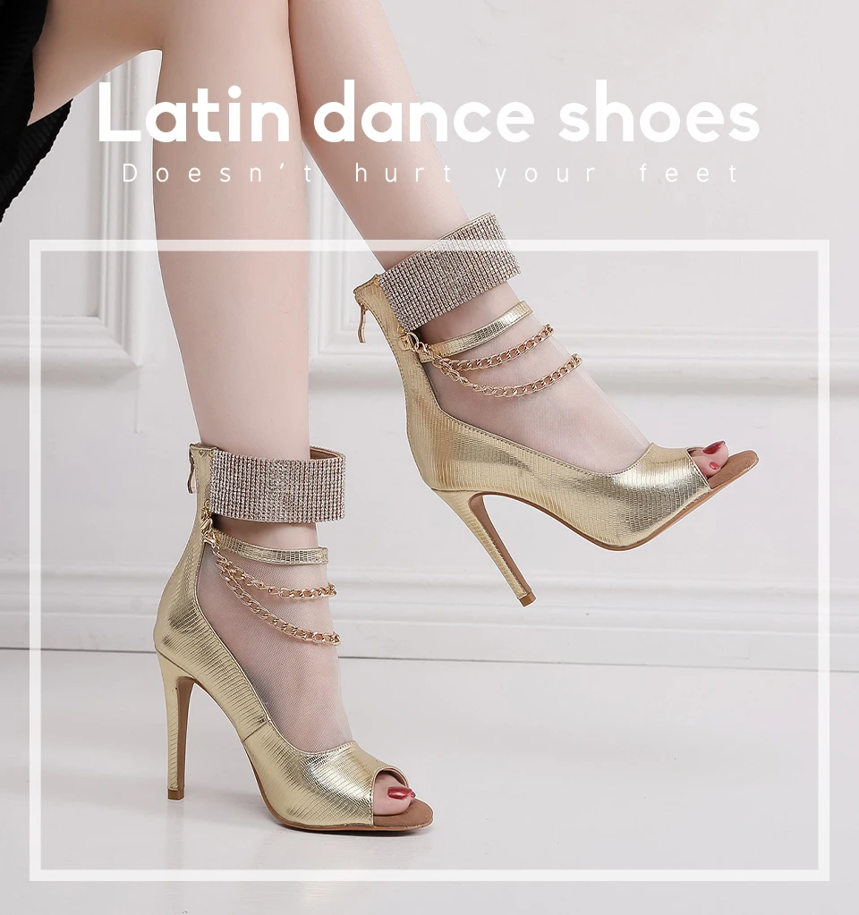2025 New Women’s Dance Shoes Gold Shining Stilettos Dance Boots Ladies Girls Salsa Party Shoes Woman Ballroom Dancing Shoes