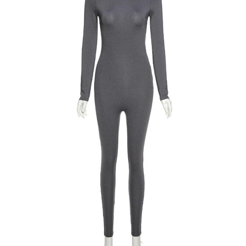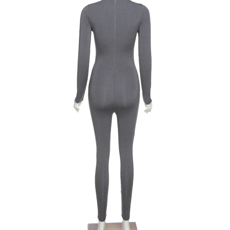 2025 Solid Black/Gray Long Sleeve Skiing Jumpsuit Women Elastic Hight Outfit Fashion Fitness Sportwear Slim Rompers Streetwear